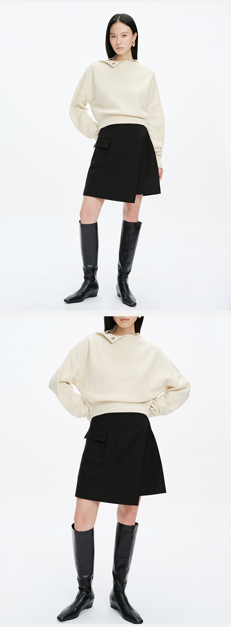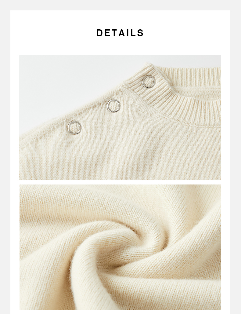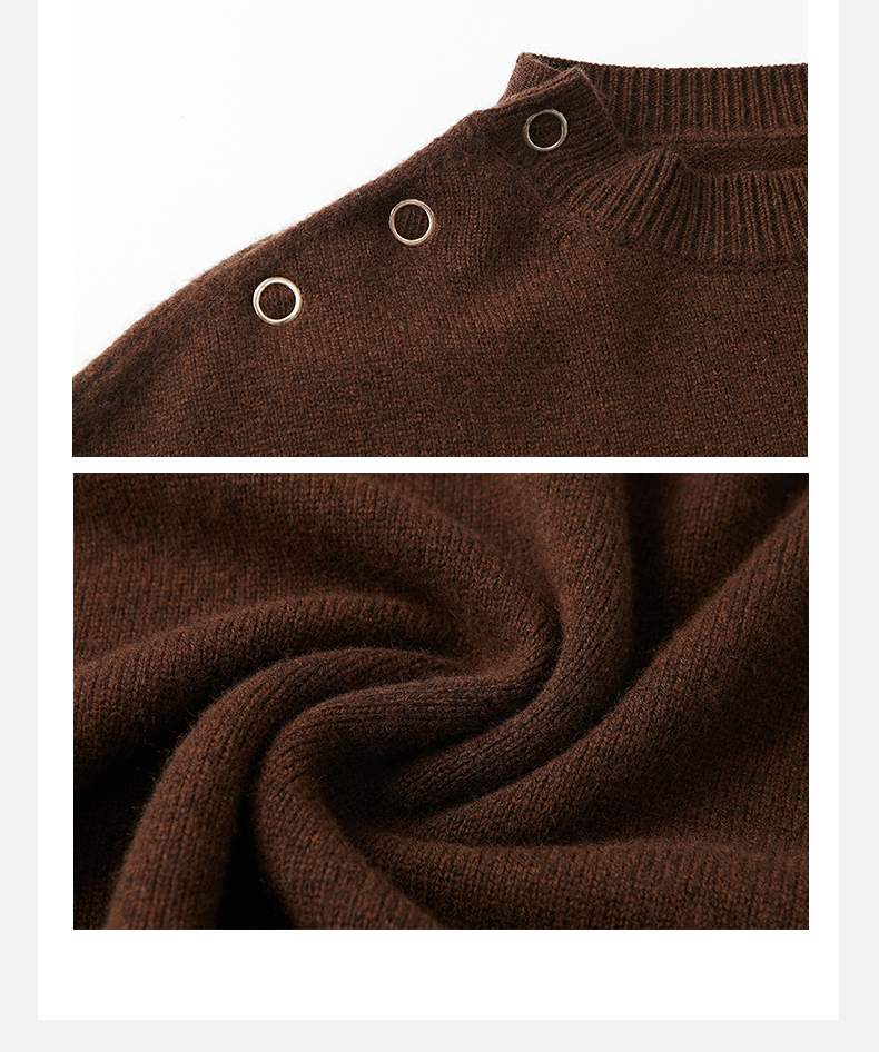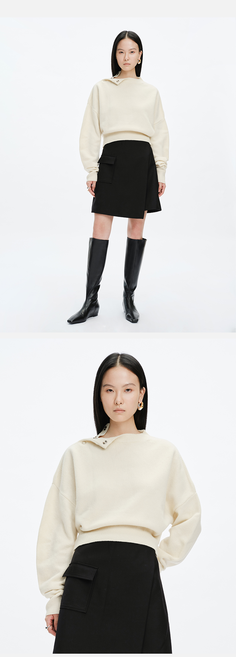 HIDEMI美利奴羊毛纽扣羊腿弧形袖极简毛衣 白色/巧克力色