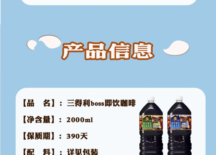 三得利BOSS家庭装黑咖啡 2L/瓶
