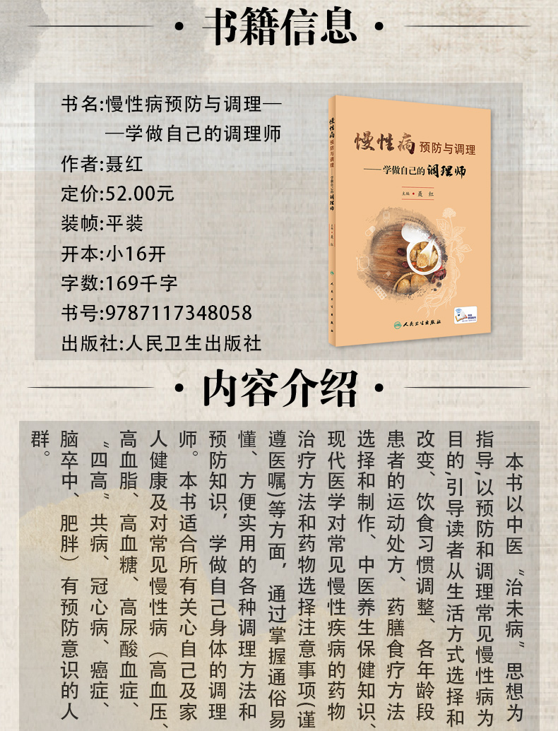 慢性病预防与调理 学做自己的调理师 聂红 高尿酸血症肥胖癌症冠心病等常见慢性病中西医防护调理知识9787117348058人民卫生出版社