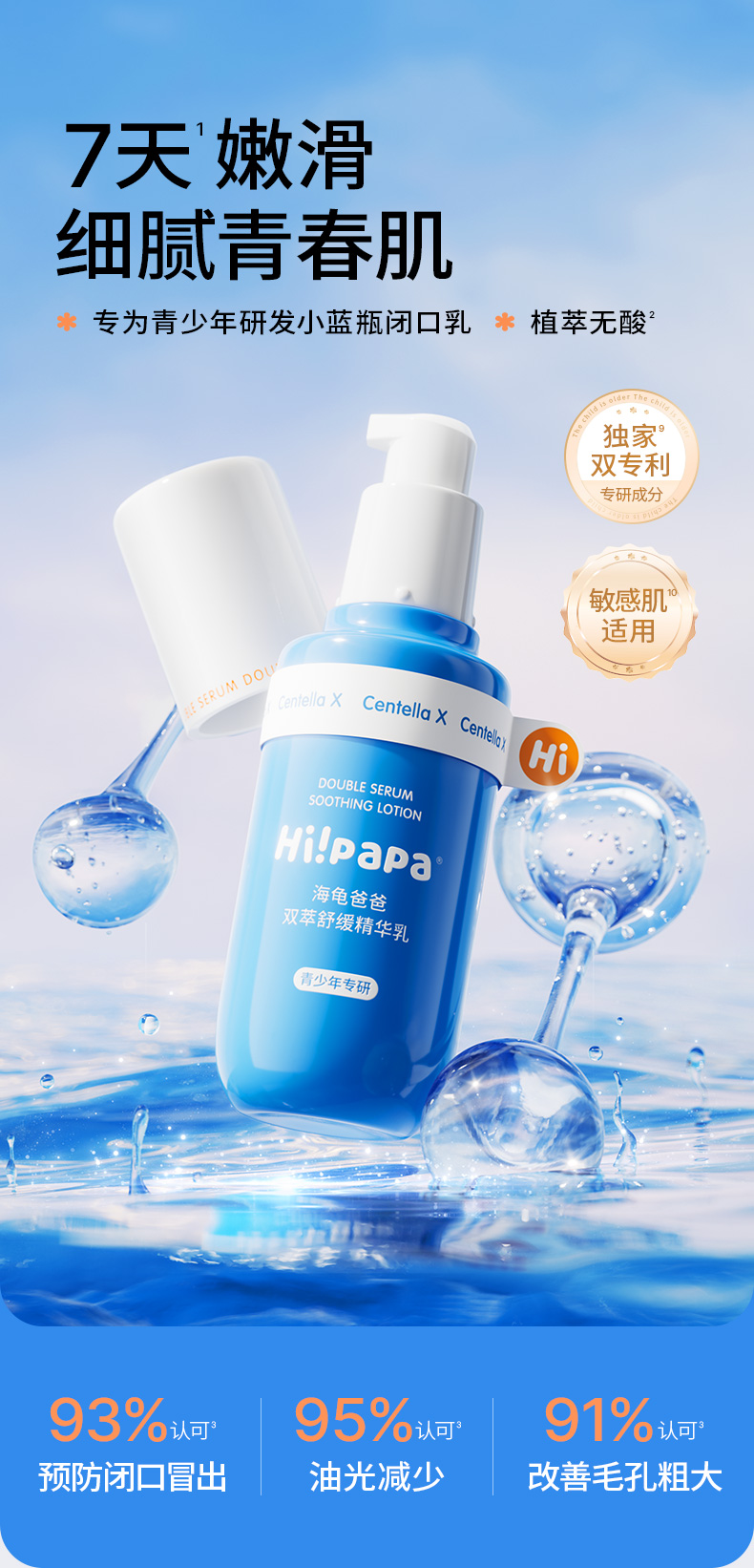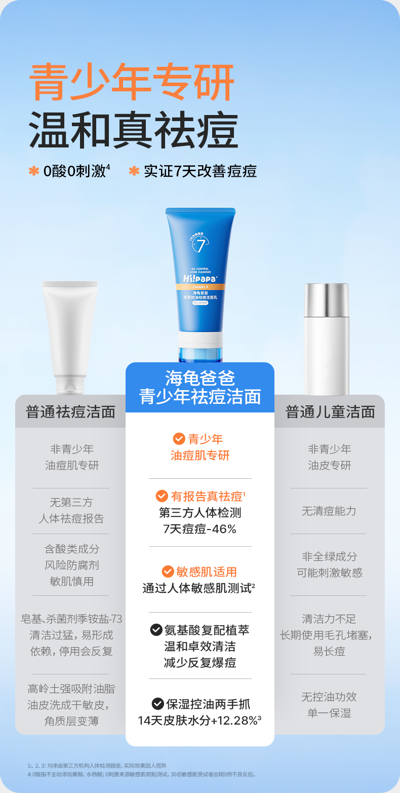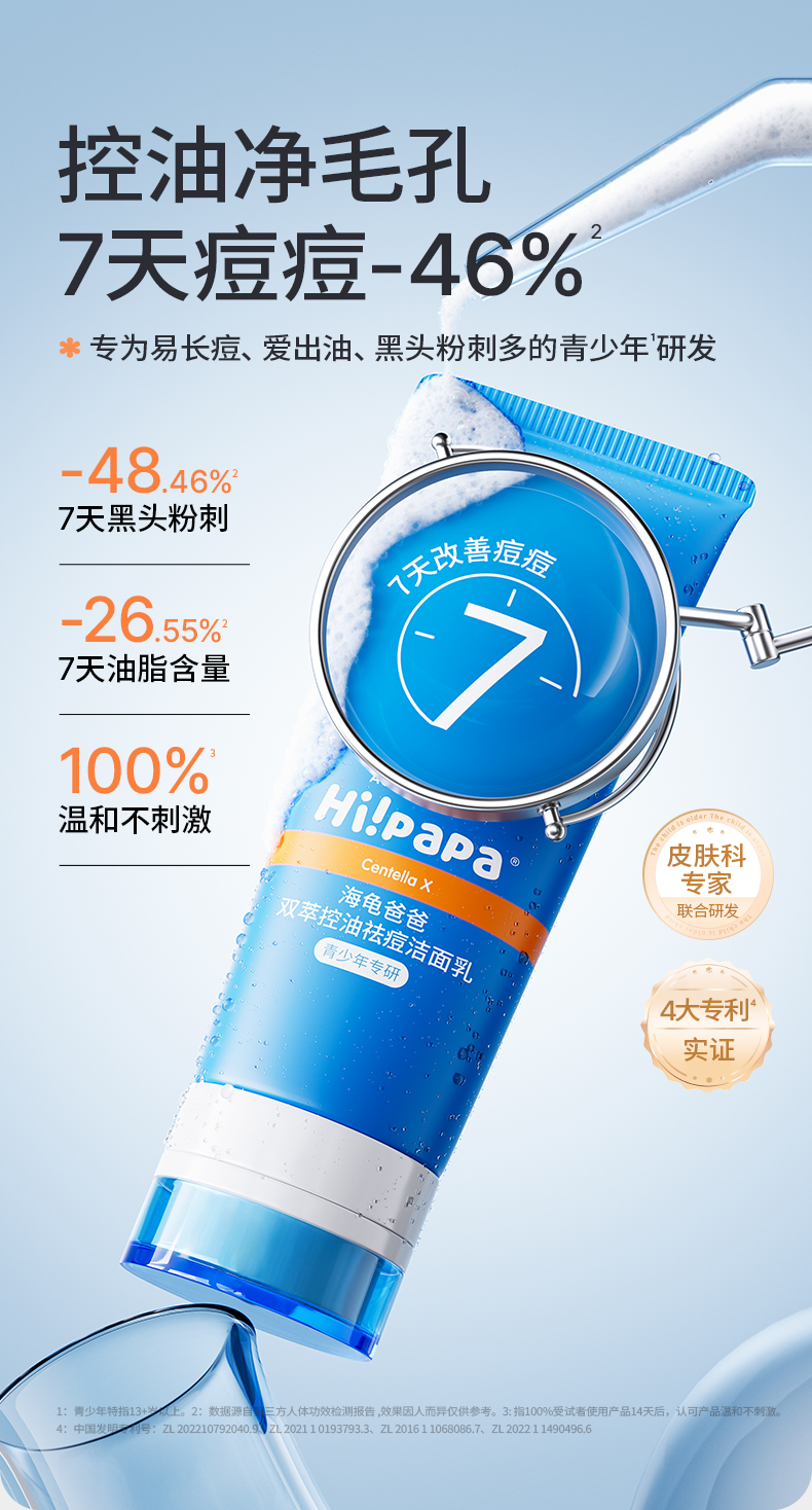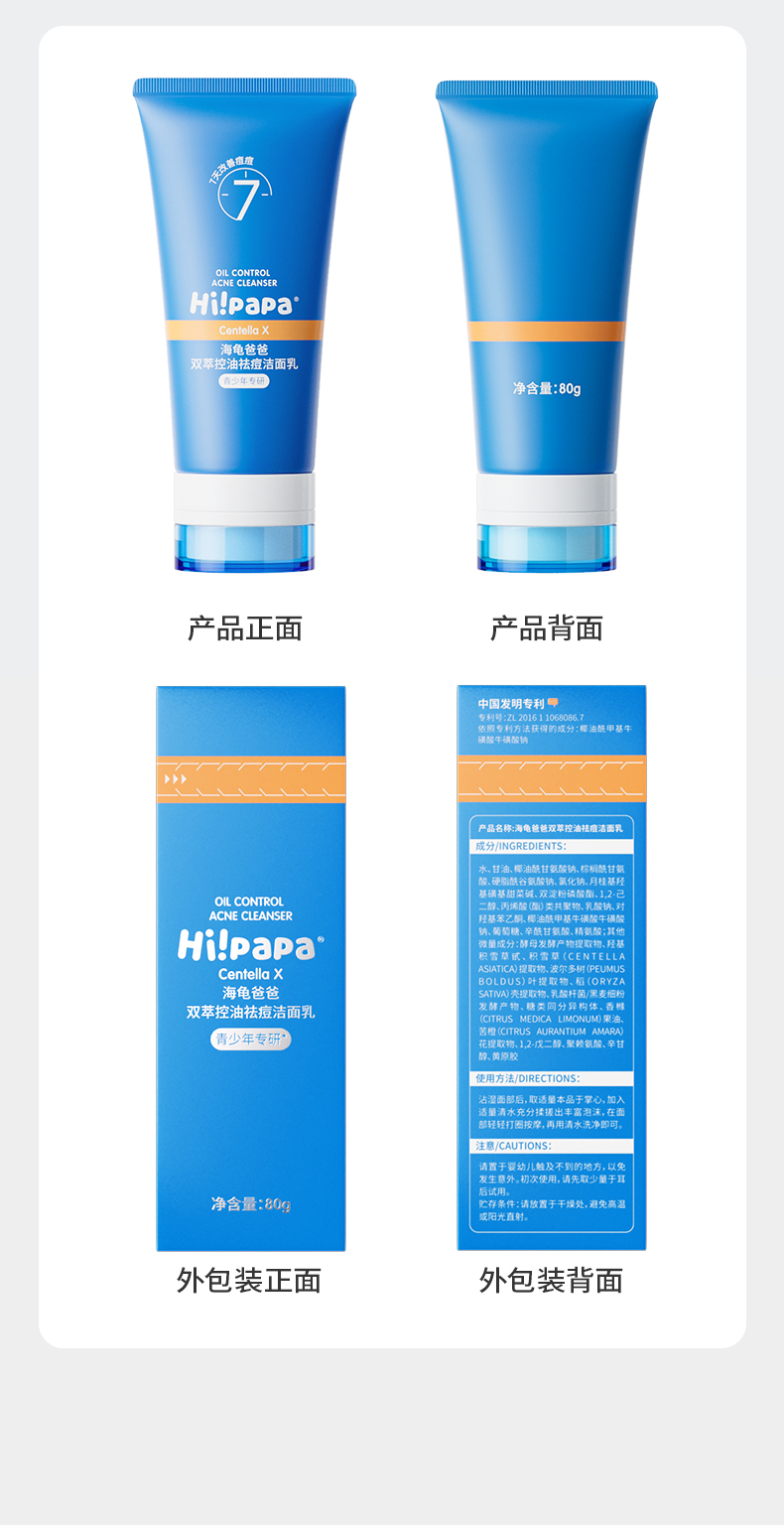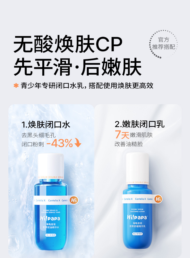海龟爸爸 青少年抗初痘系列双萃控油祛痘洁面乳精华水乳套装