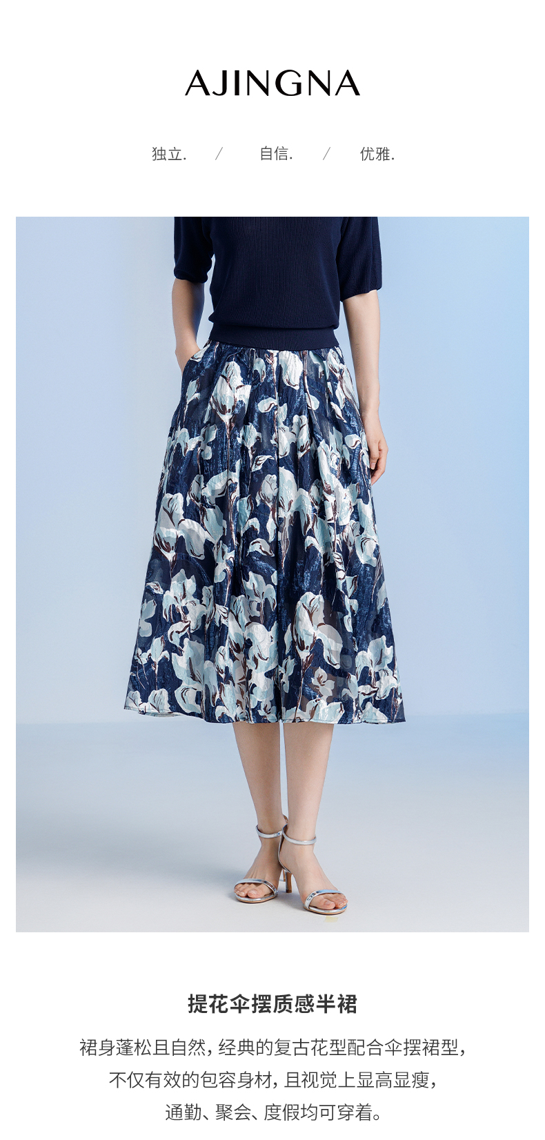 【商场同款】阿菁娜2024秋季新款提花伞摆质感半裙A30Q113009