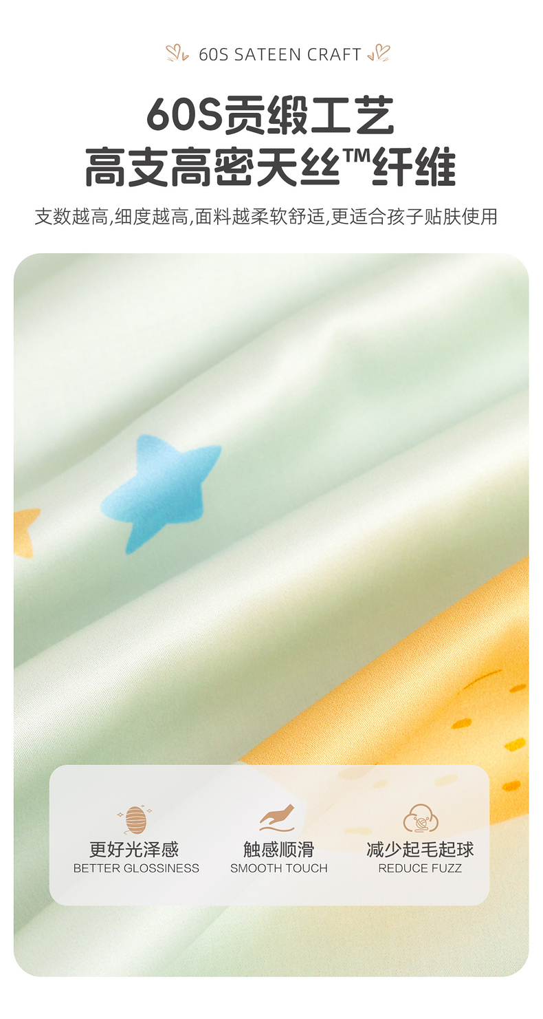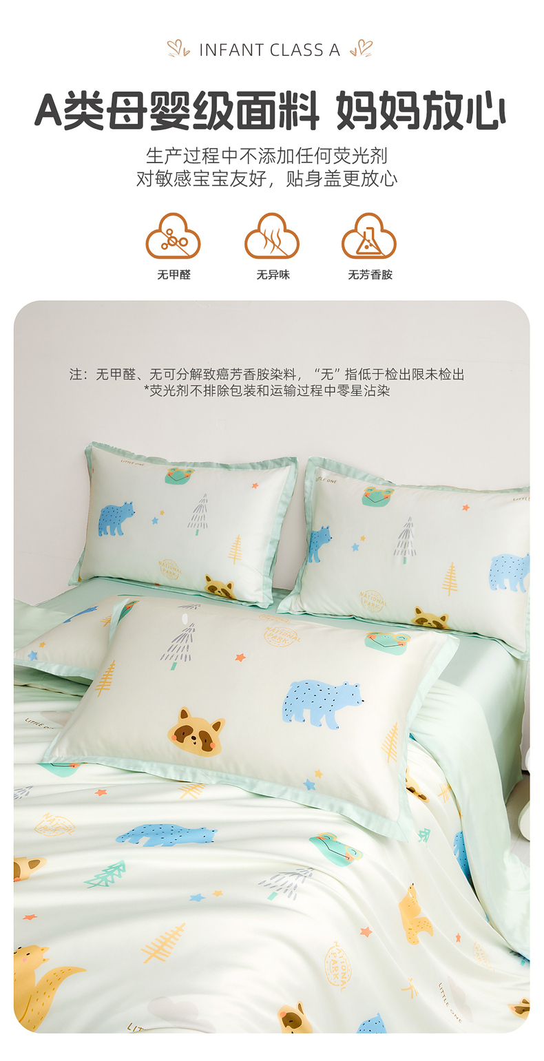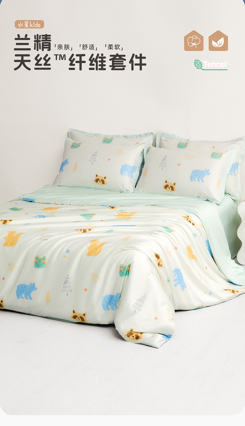水星kids60支兰精天丝套件母婴A类抑菌印花单人学生三/四件套严选