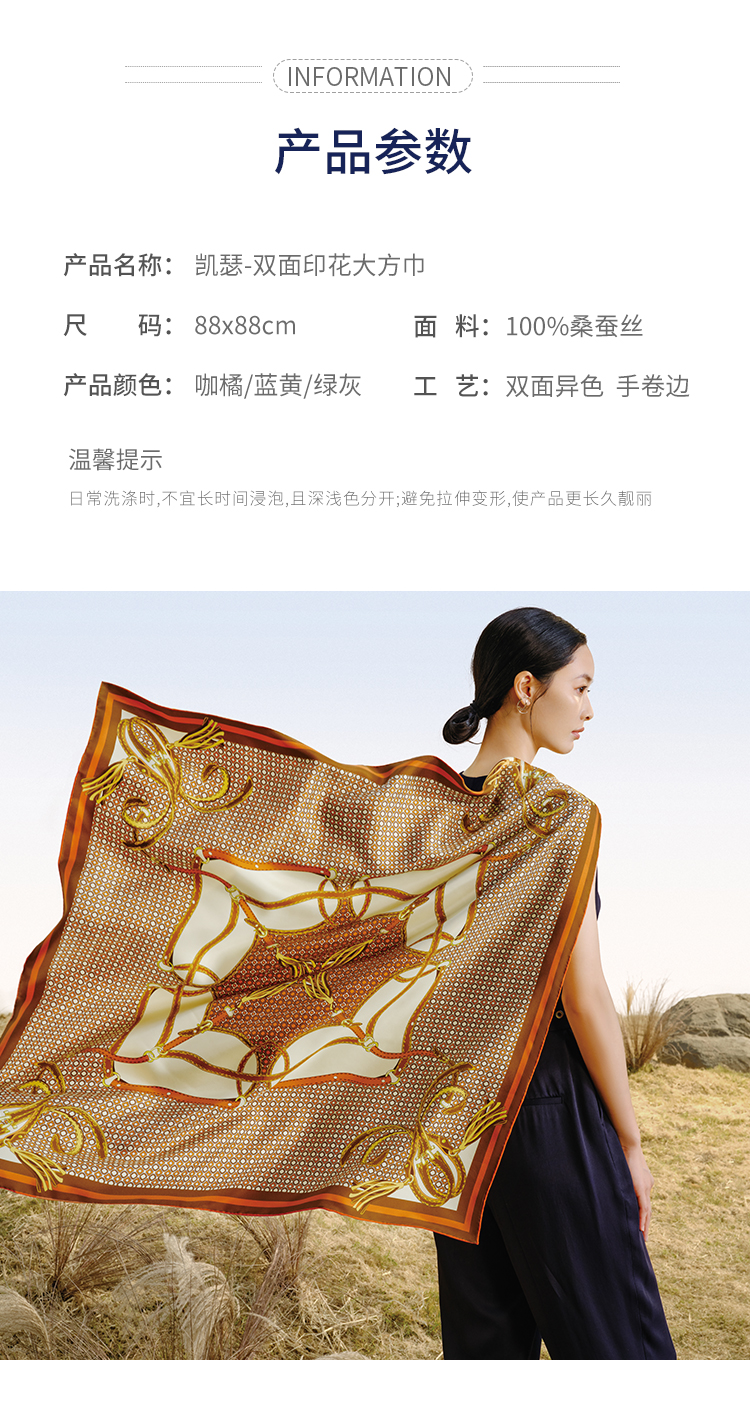 万事利“知韵”88厘米双面印花大方巾