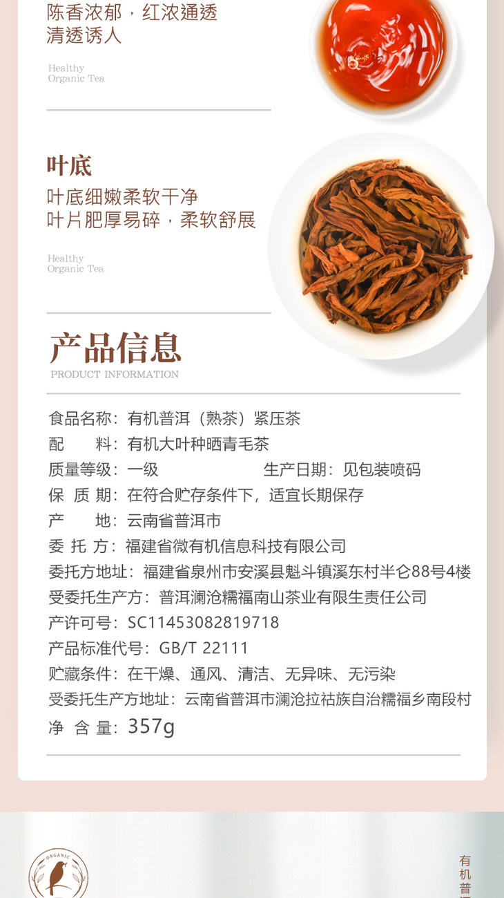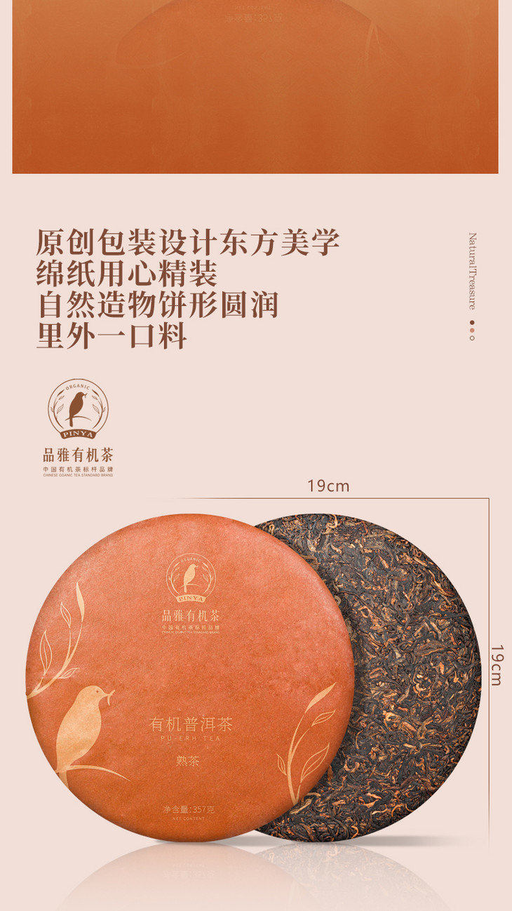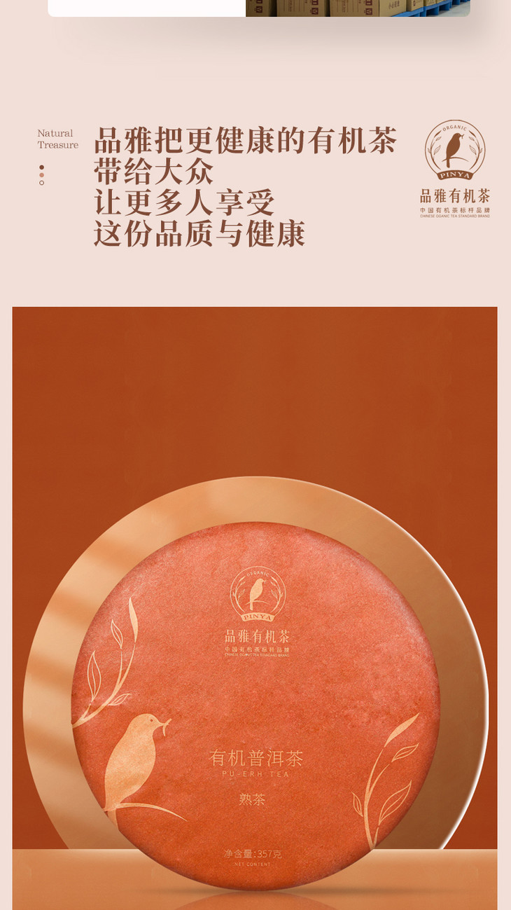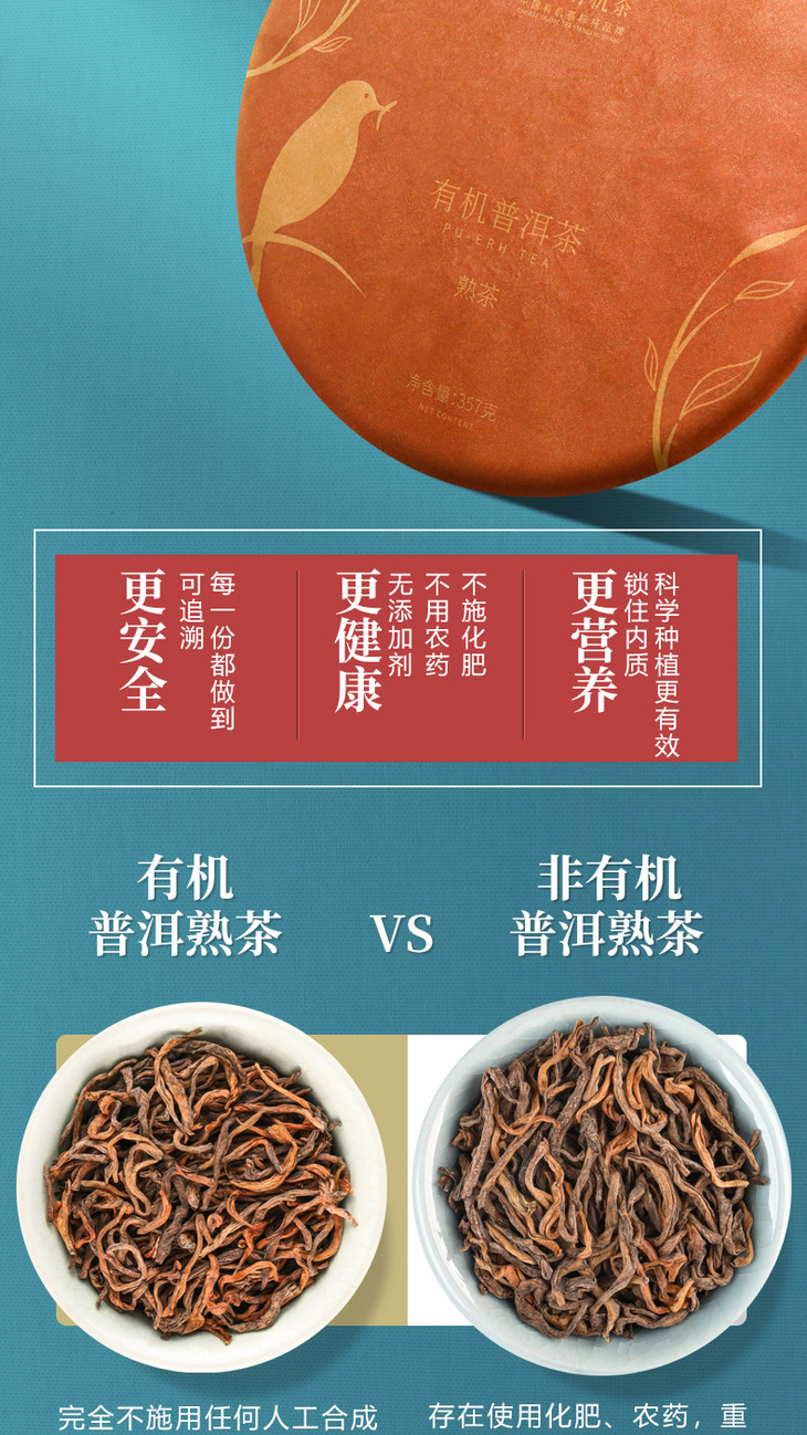 有机茶叶 普洱茶 熟茶 云南古树七子茶饼 黑茶大树茶357g