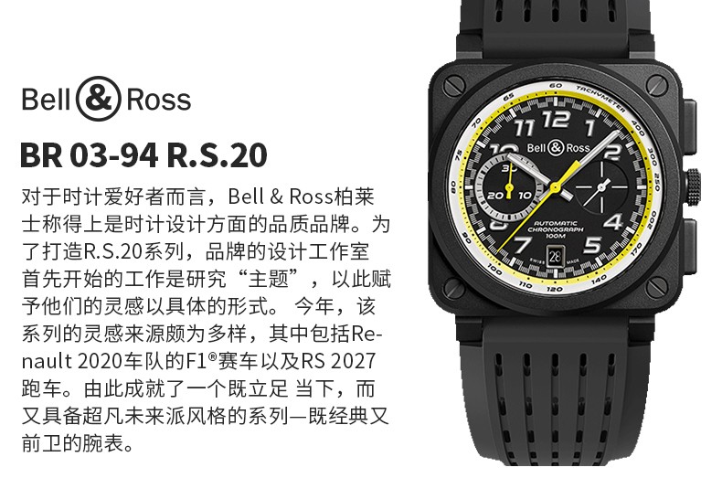 BellRoss 柏莱士 瑞士手表男士方表赛车计时表 R0394 Chrono R20 Ceramic BR0394-RS20/SRB