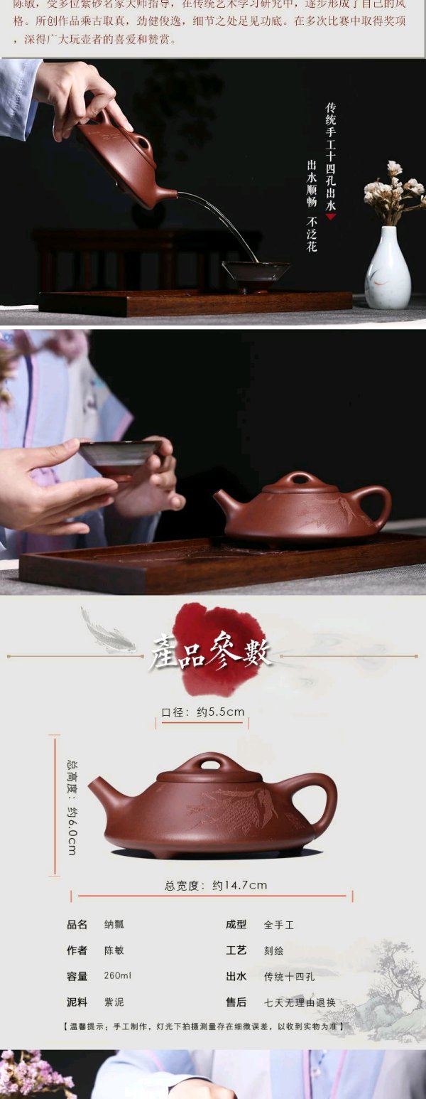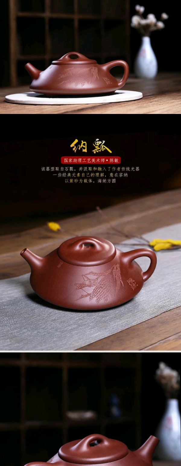 纳瓢壶紫砂壶茶壶纯全手工宜兴原矿紫泥石瓢泡茶壶茶具套装助工陈敏260ml