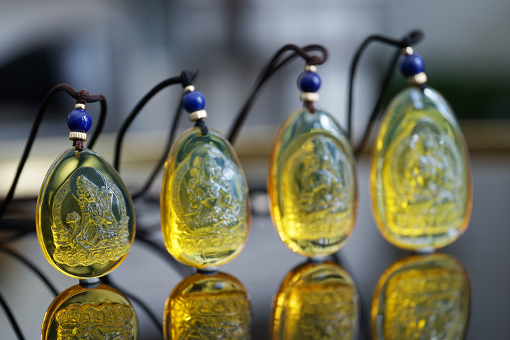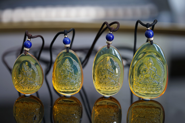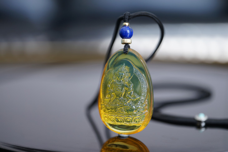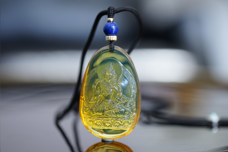 金刚萨埵 ·墨西哥蓝珀水滴形雕件吊坠