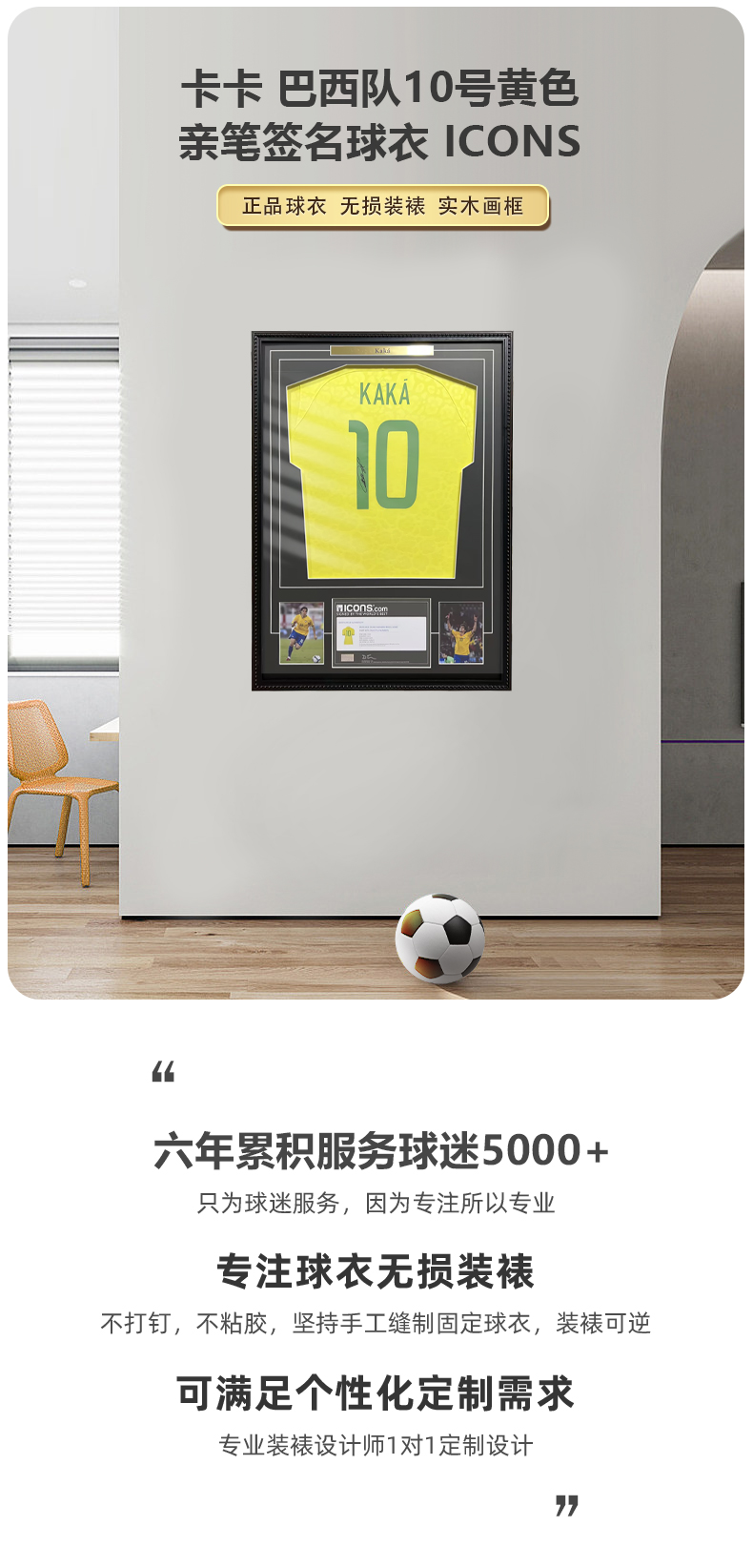 收藏系列 卡卡 巴西队10号黄色 亲笔签名球衣 ICONS