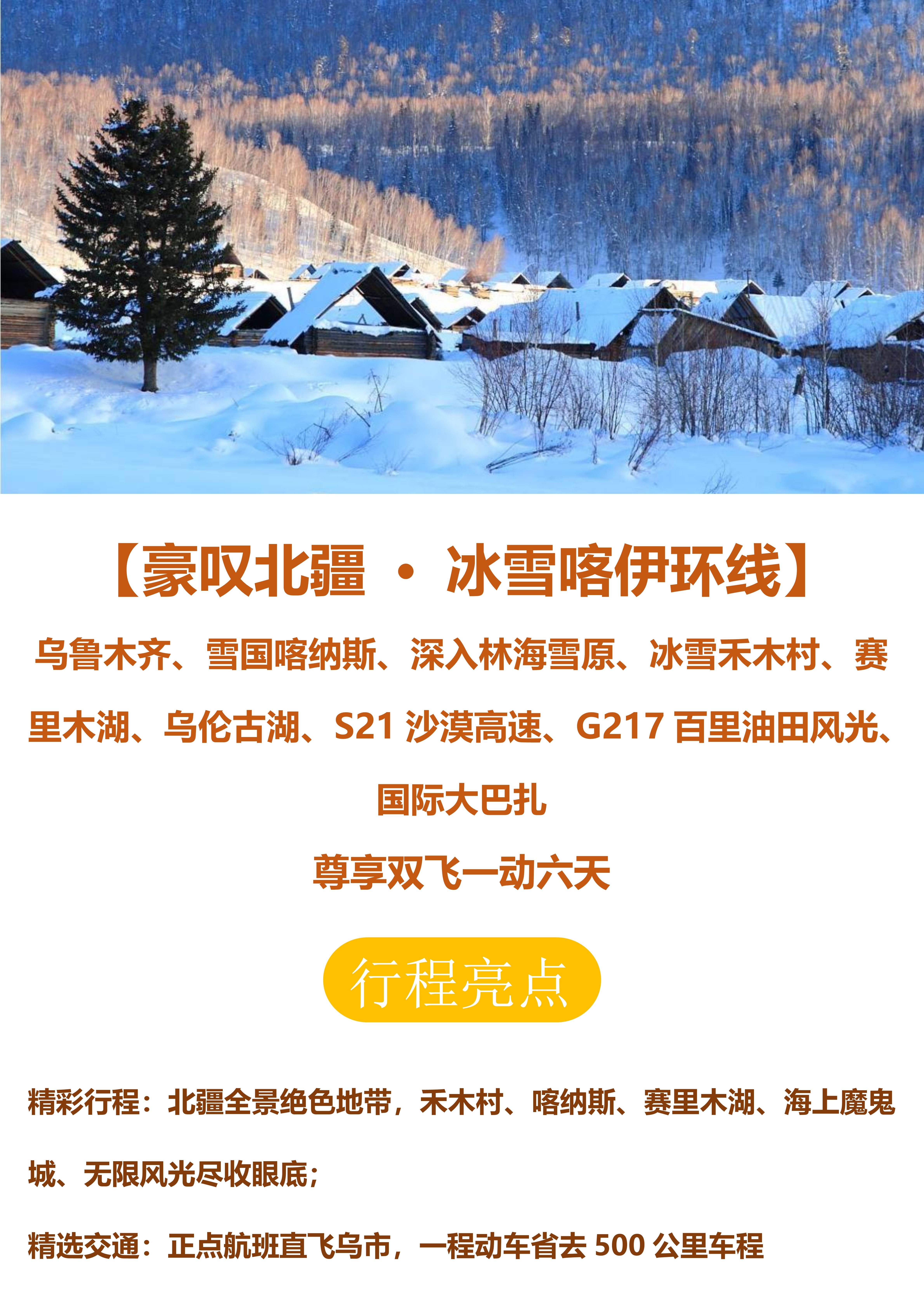 【豪叹北疆 · 冰雪喀伊环线】尊享双飞一动六天