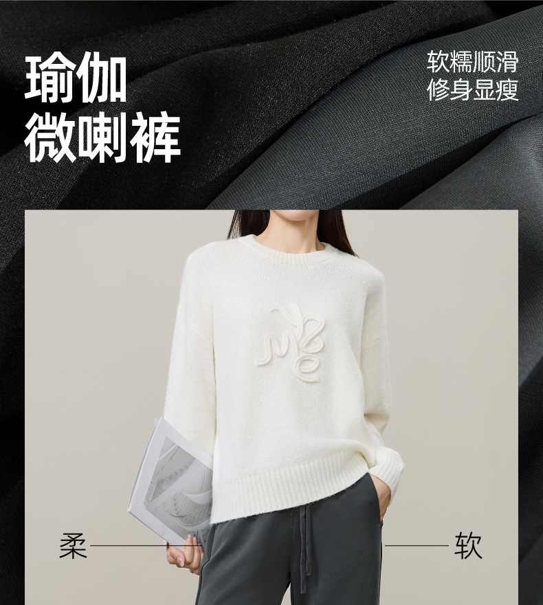 【瑜伽-微喇裤】逸阳秋新品莫代尔弹力松紧腰松弛感微喇裤8051