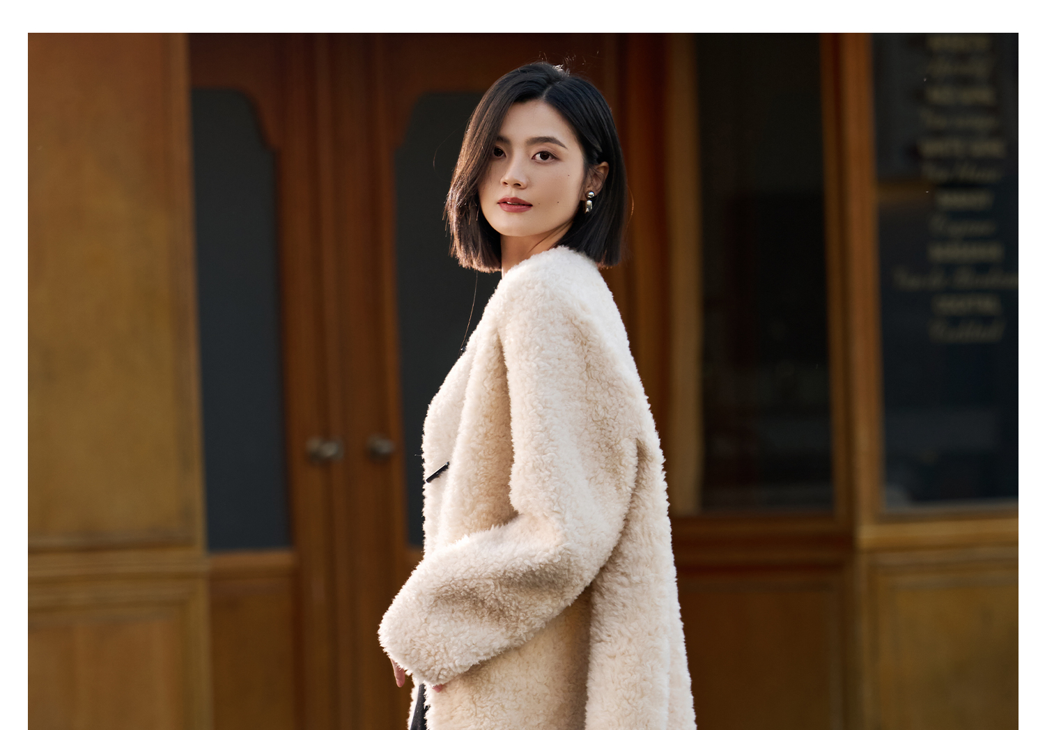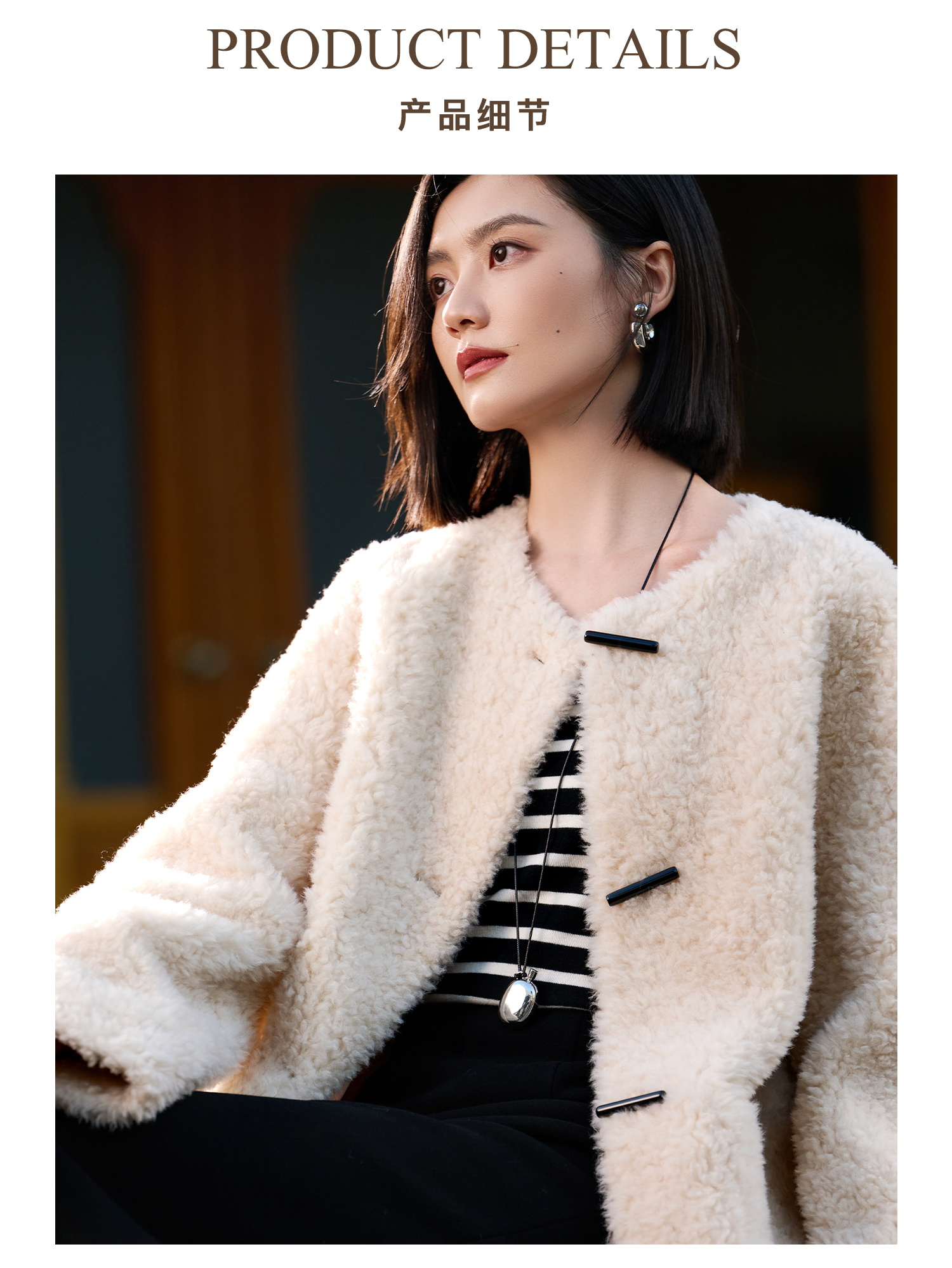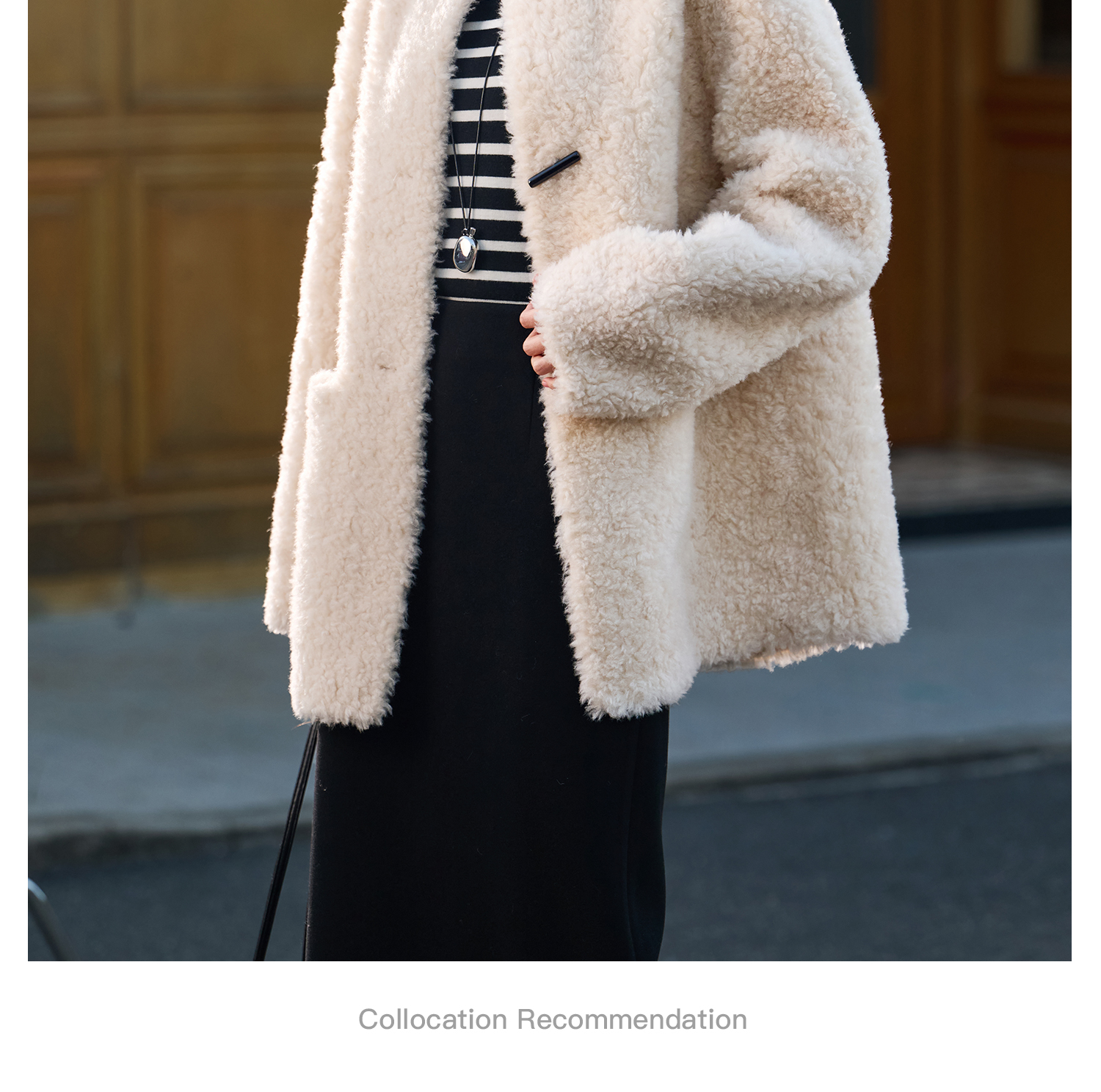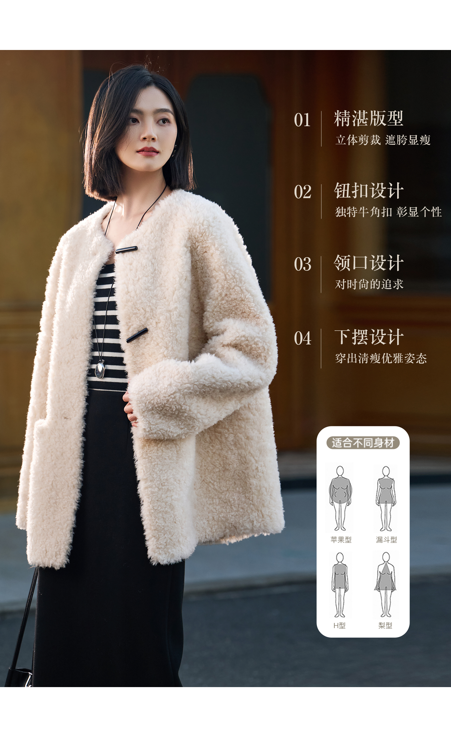 一件过冬 100%纯羊毛颗粒绒大衣 米思阳2025冬季简约气质牛角扣羊毛保暖中长款外套女5745