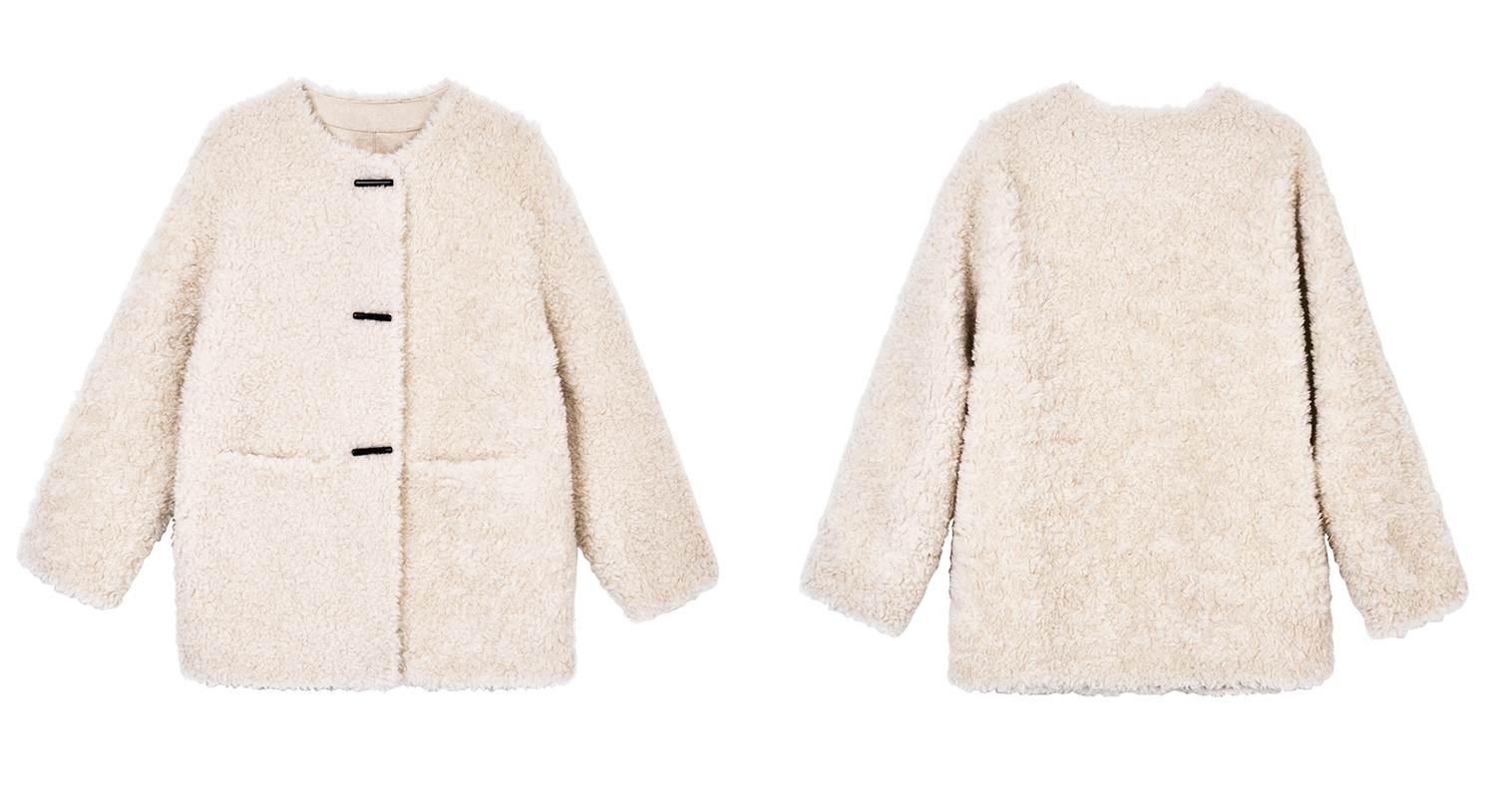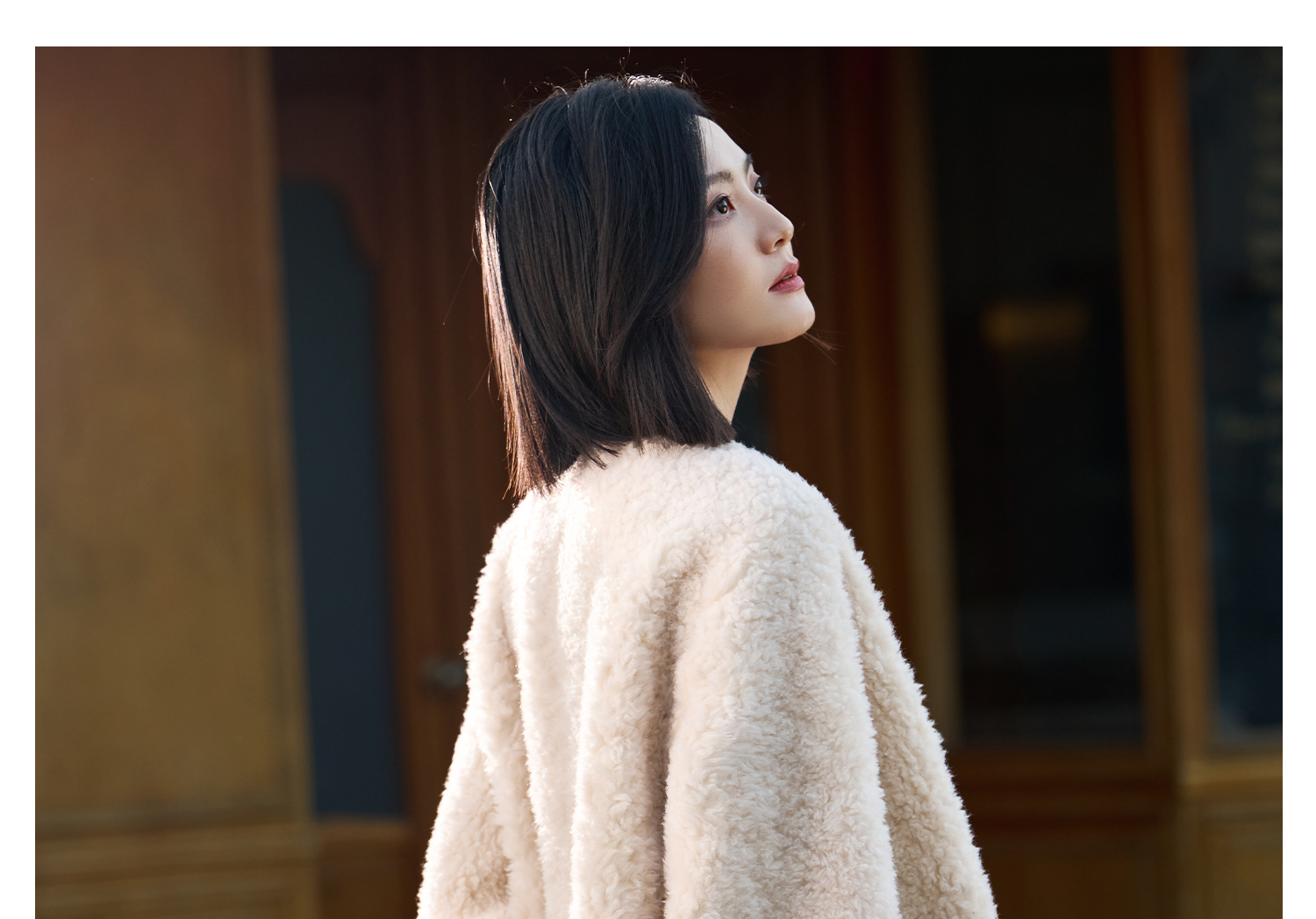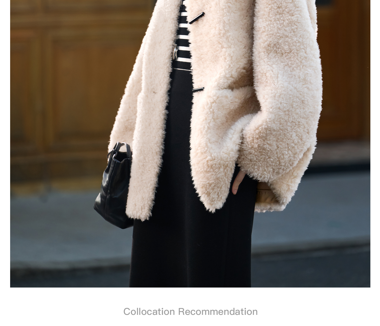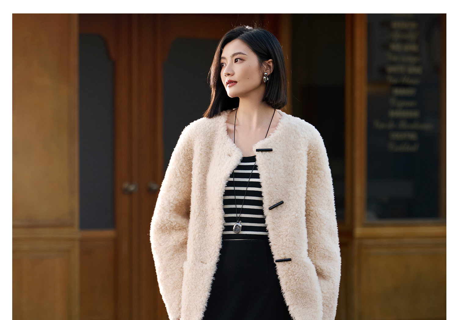一件过冬 100%纯羊毛颗粒绒大衣 米思阳2025冬季简约气质牛角扣羊毛保暖中长款外套女5745