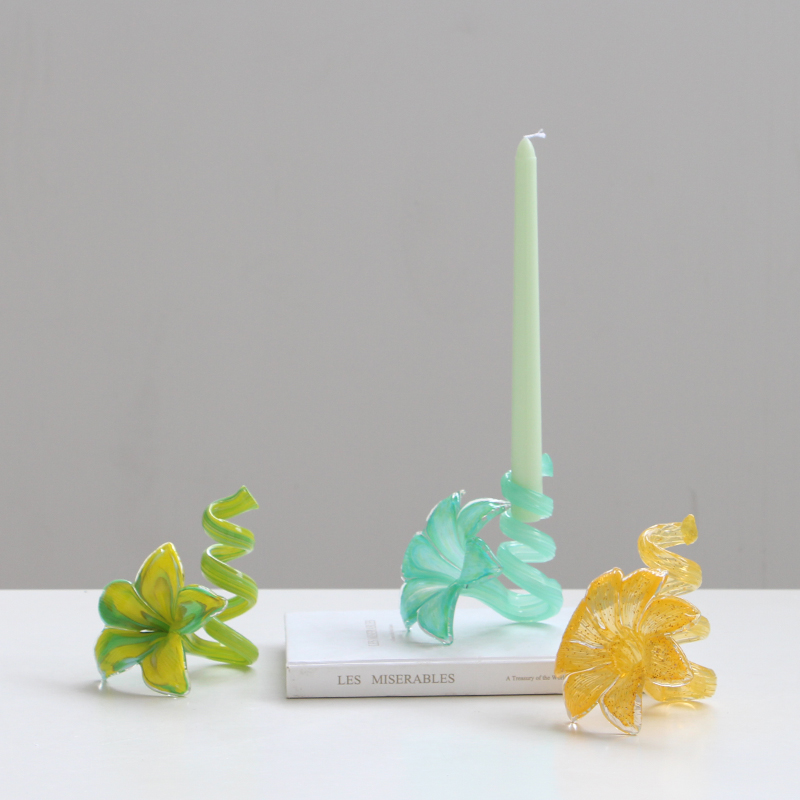 创意花朵玻璃烛台 复中古高脚餐桌氛围蜡烛台家居装饰 ins餐厅