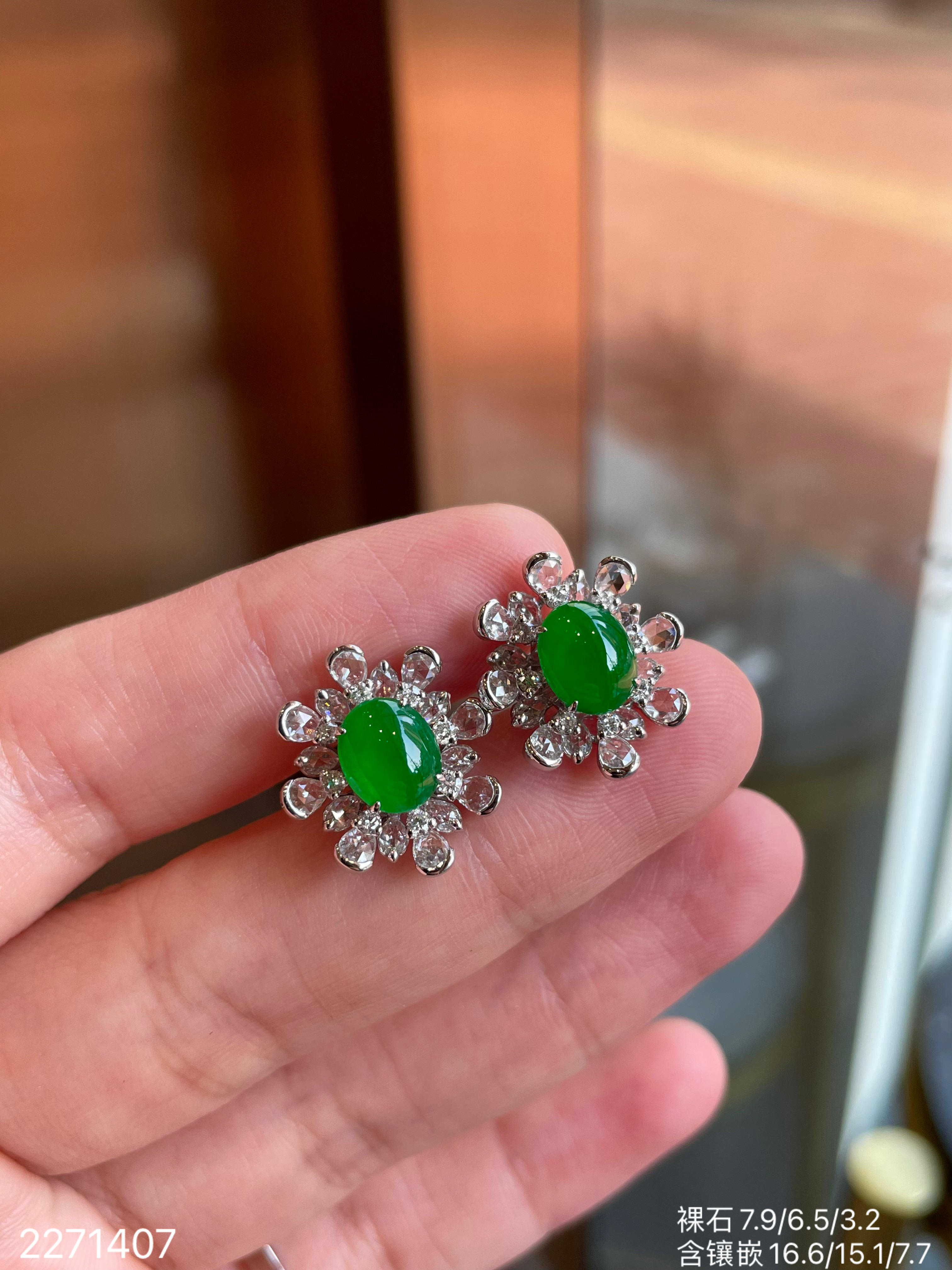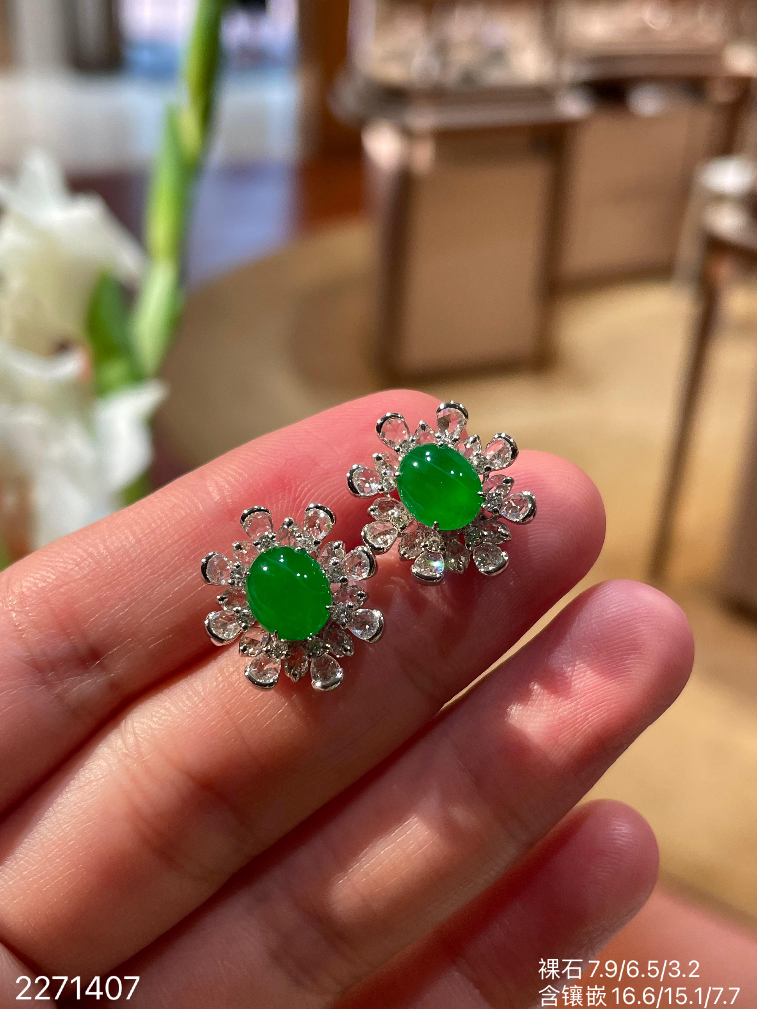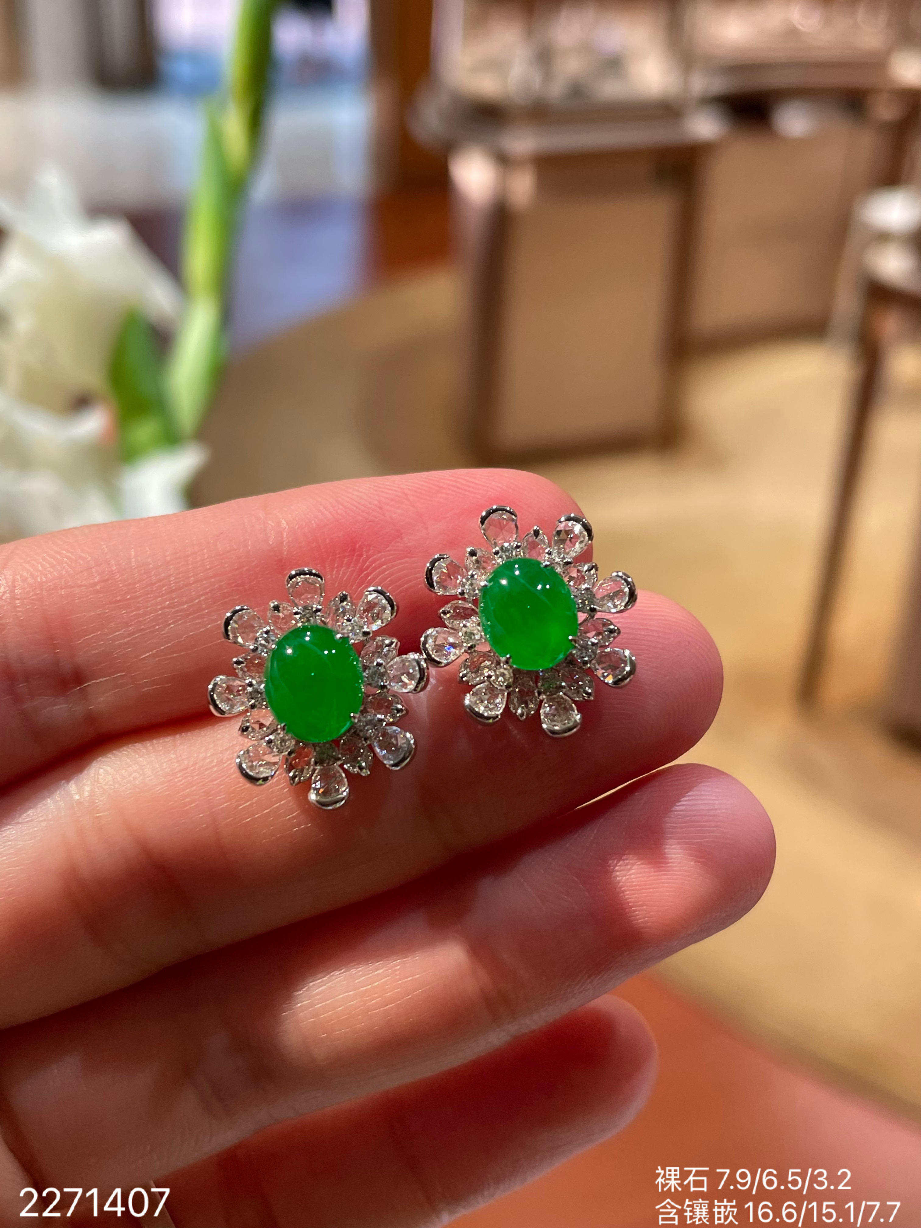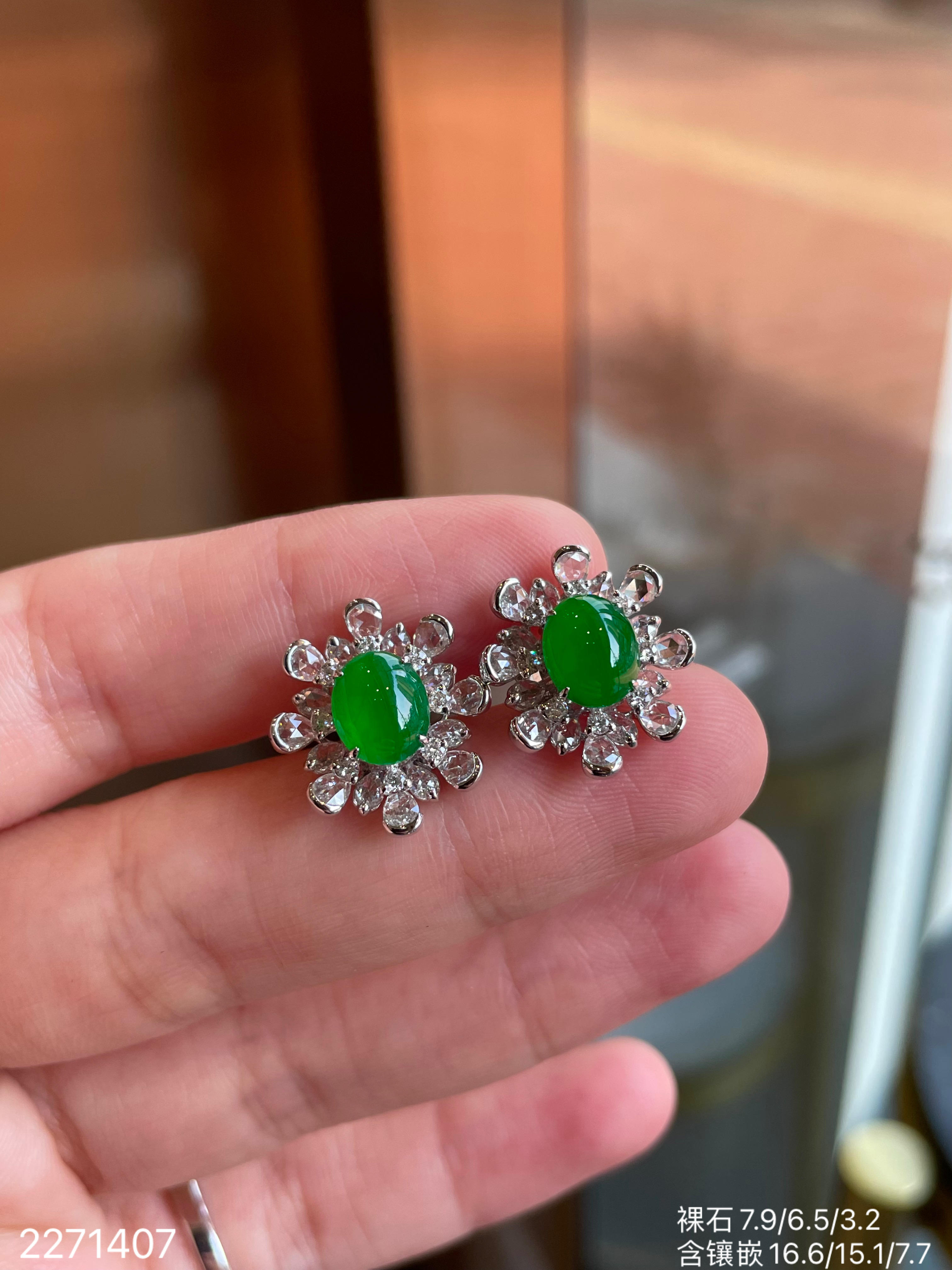 老坑冰艳绿蛋面耳钉 56999【2271407】