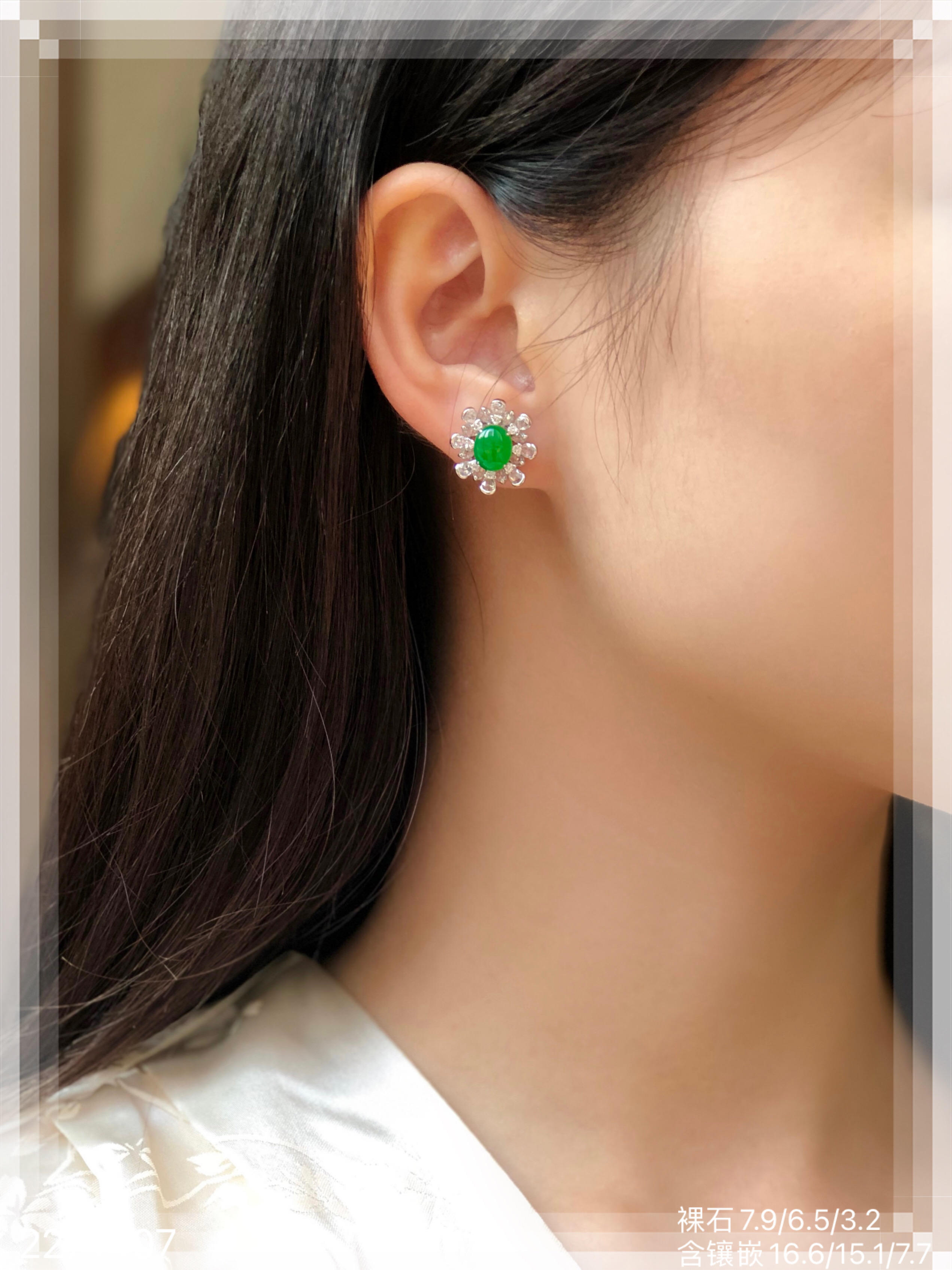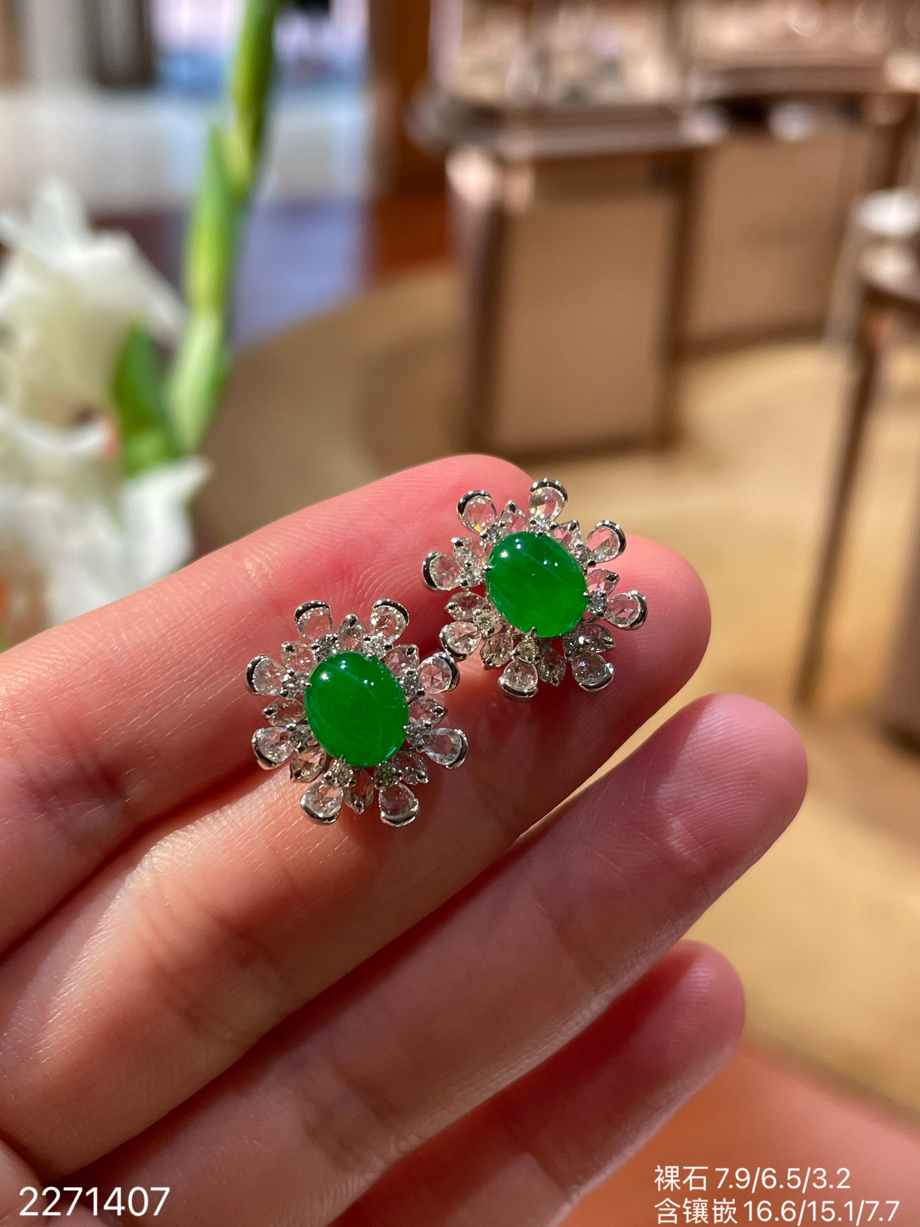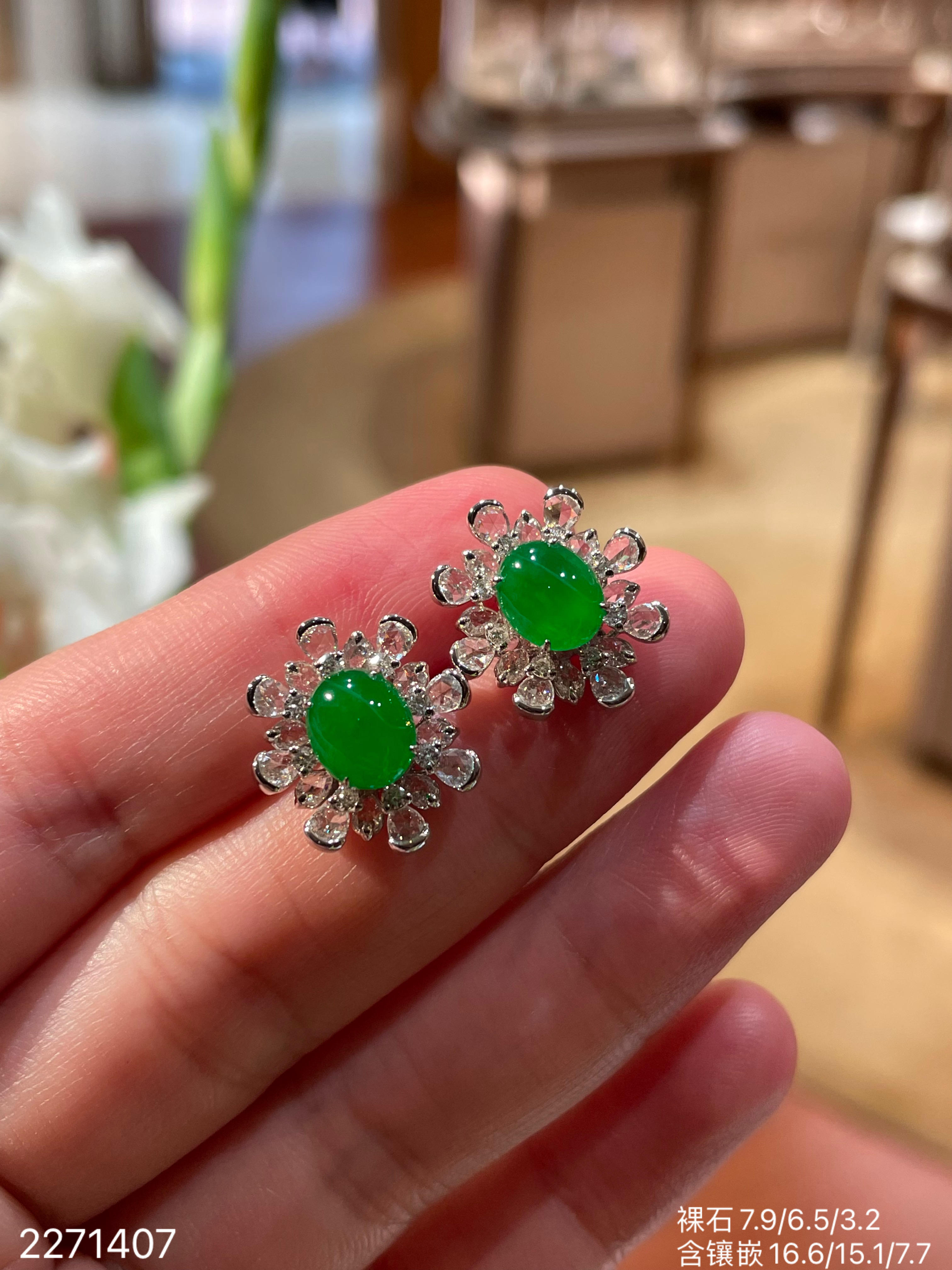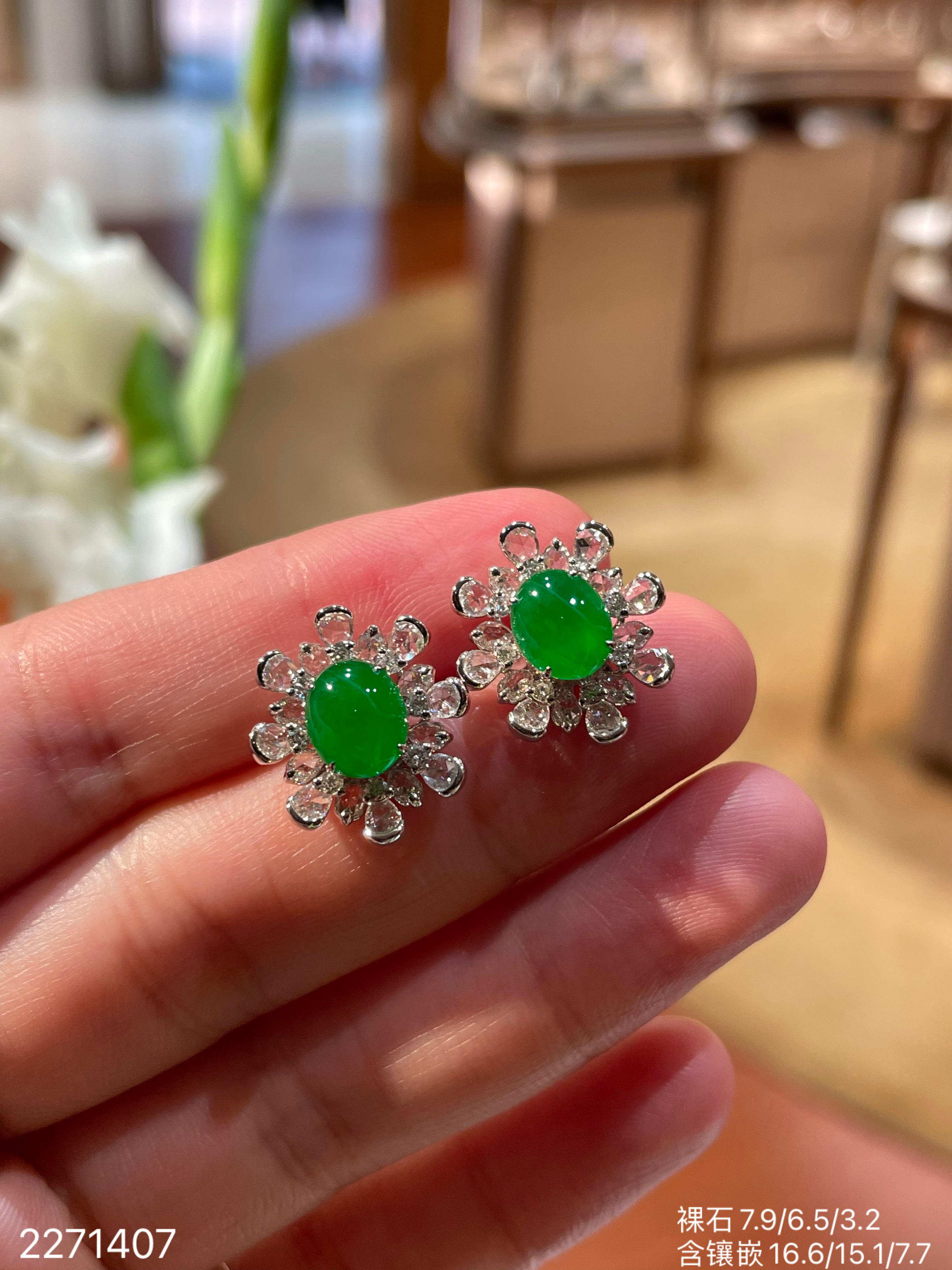 老坑冰艳绿蛋面耳钉 56999【2271407】