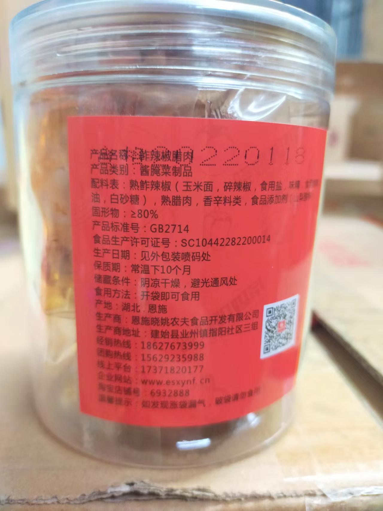恩施 晓姚 榨辣椒腊肉250g/瓶