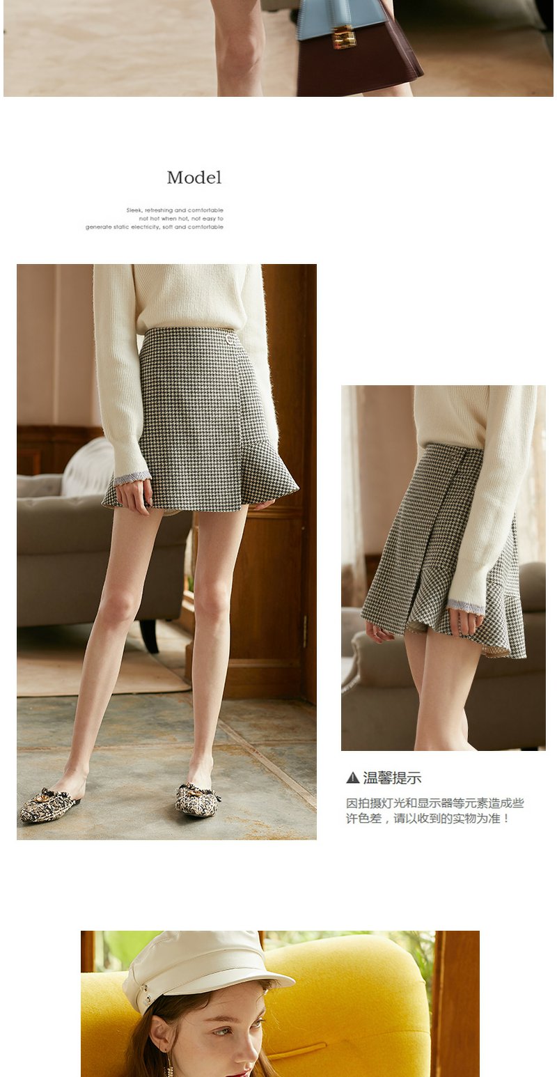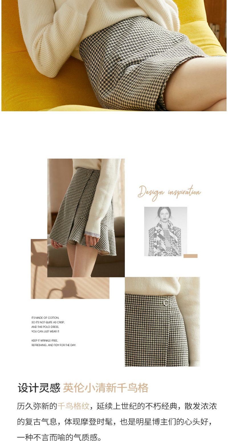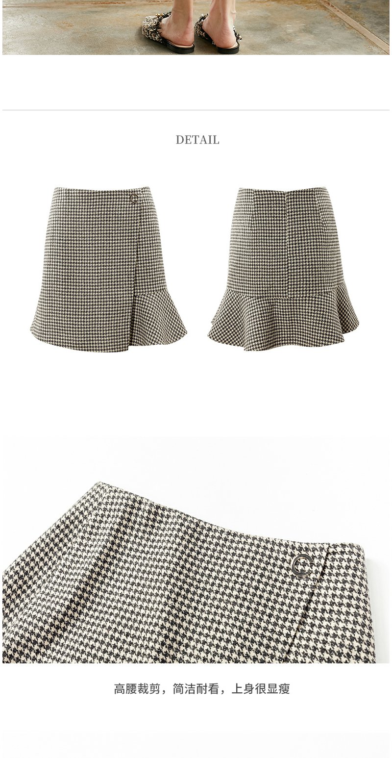 欧芮儿新品千鸟格不规则半身裙女高腰显瘦短裙A字裙鱼尾包臀裙