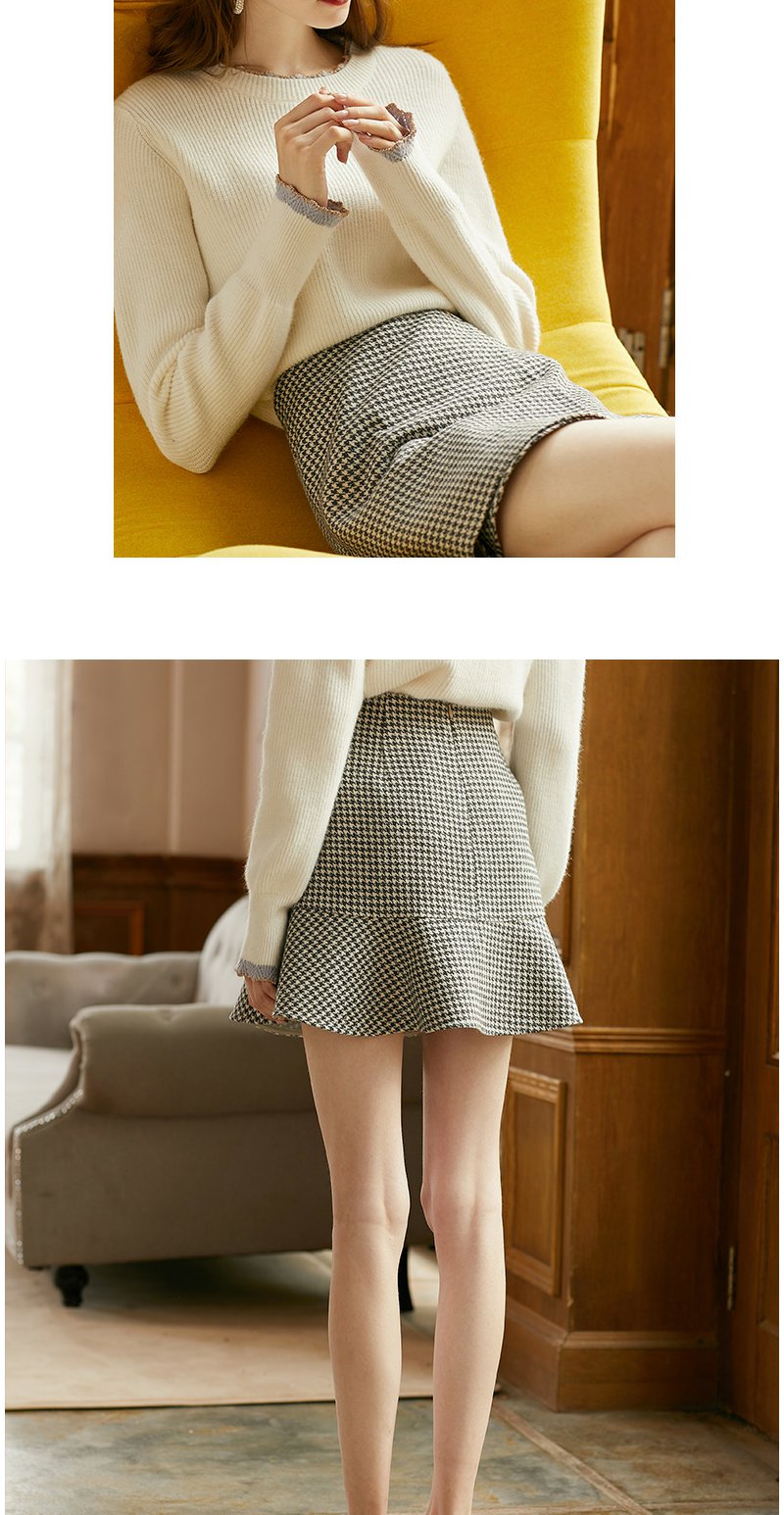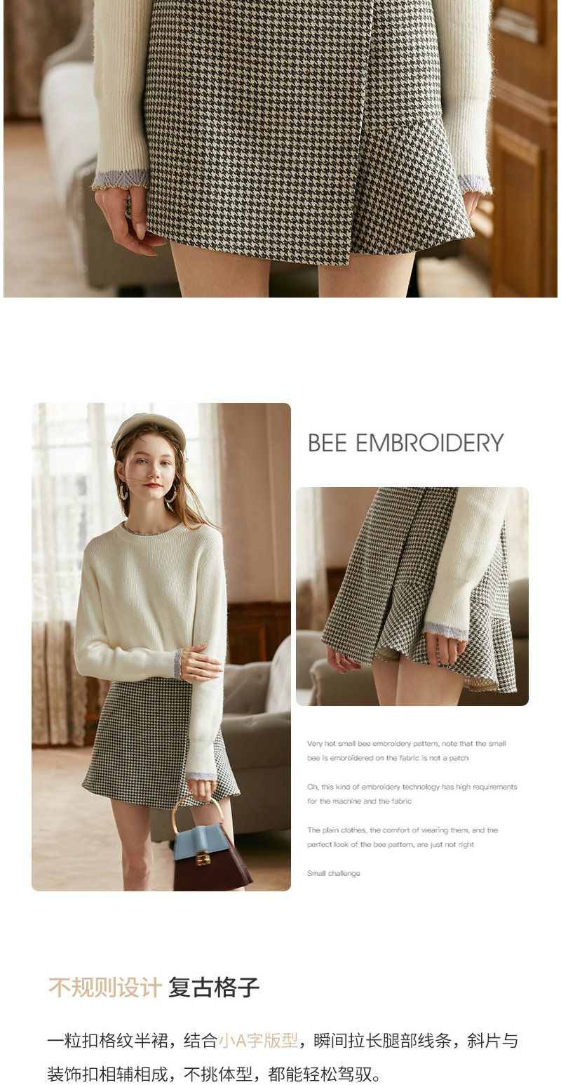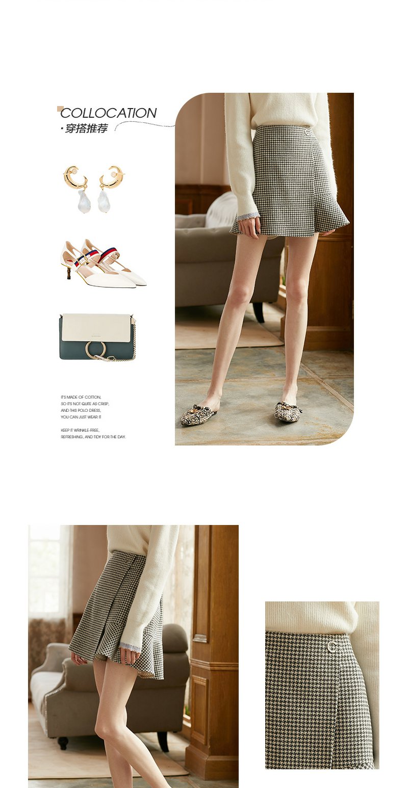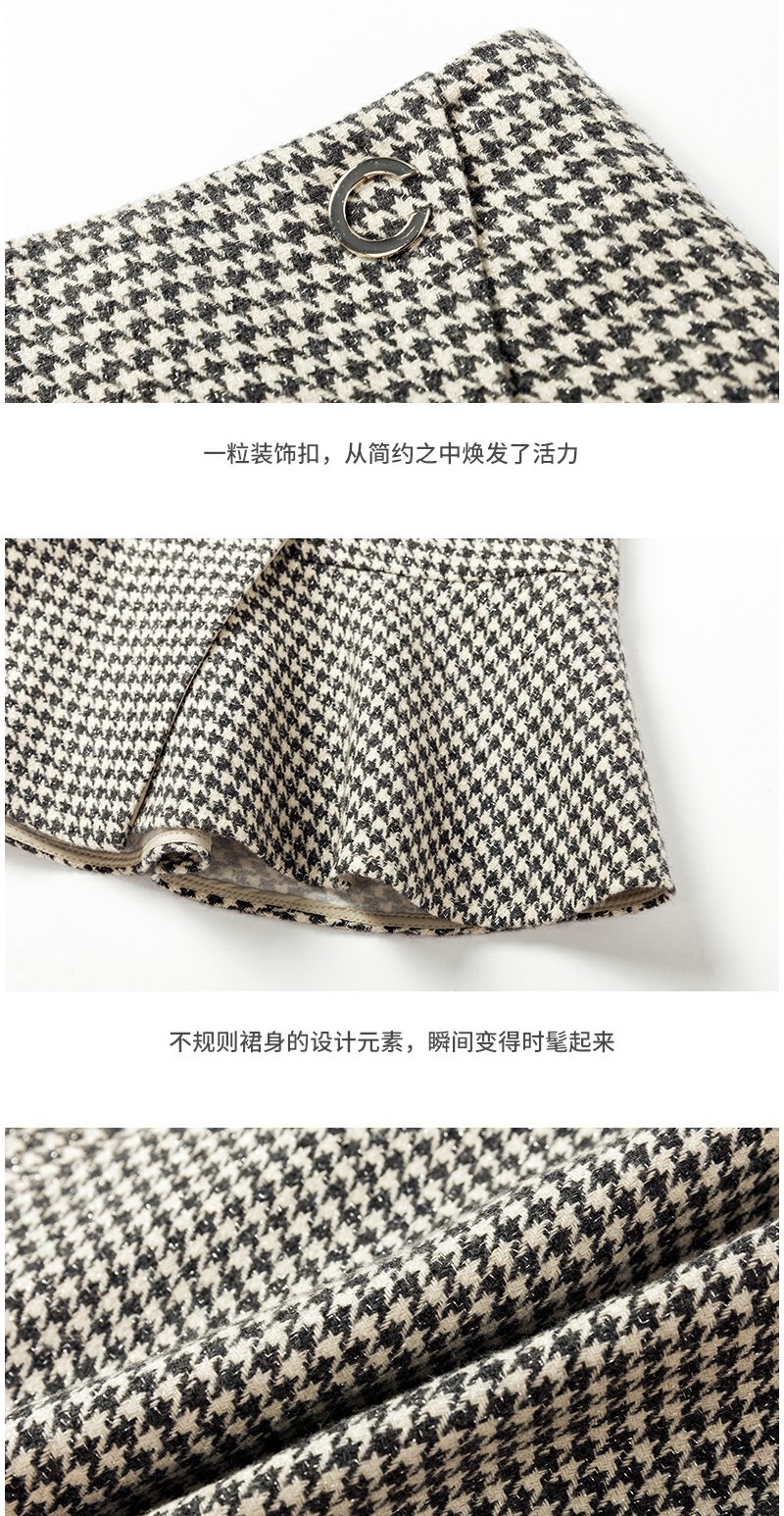 欧芮儿新品千鸟格不规则半身裙女高腰显瘦短裙A字裙鱼尾包臀裙