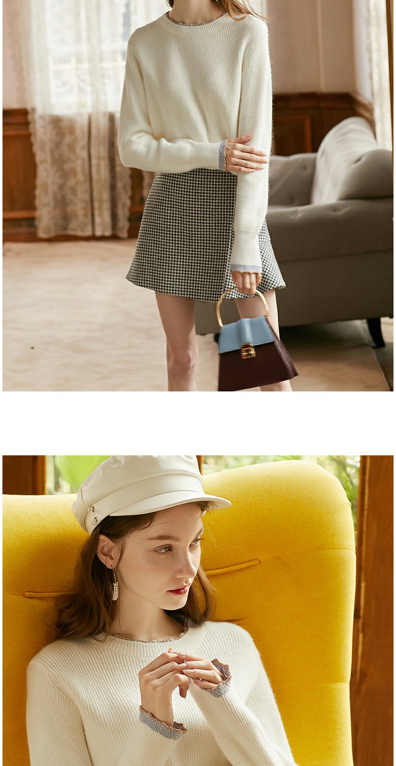 欧芮儿复古2026年新款夏季灰色圆领收腰镂空设计通勤套头毛针织衫