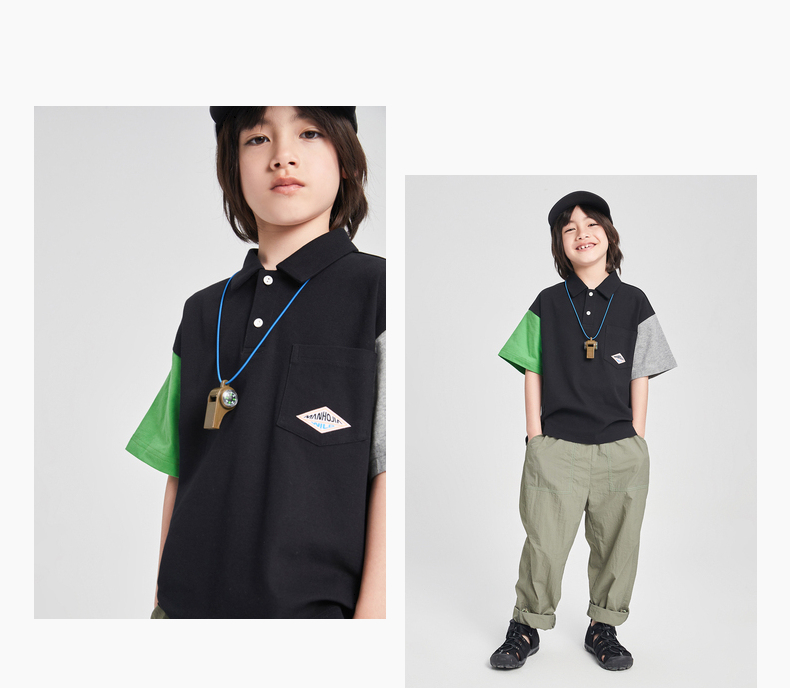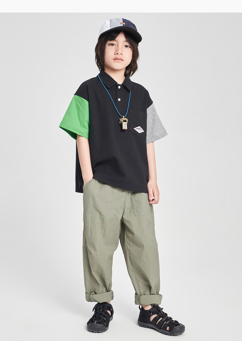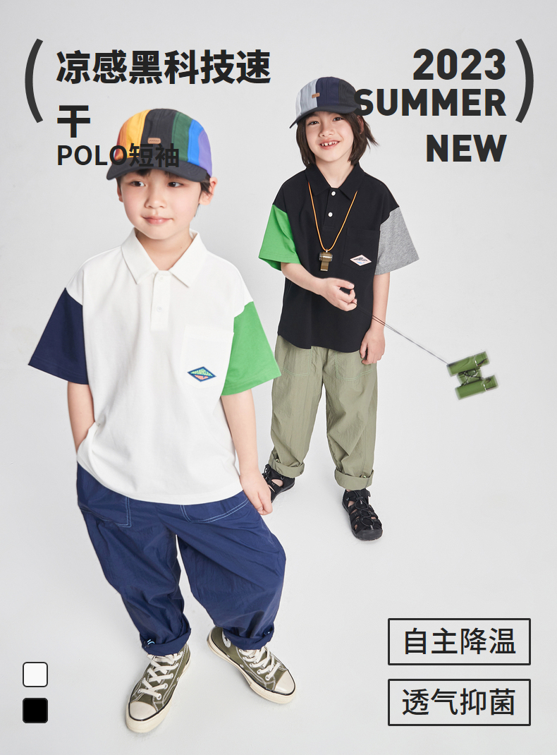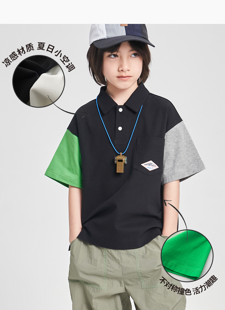 漫画家潮童装男童短袖新款夏季凉感珠地撞色POLO衫儿童T恤