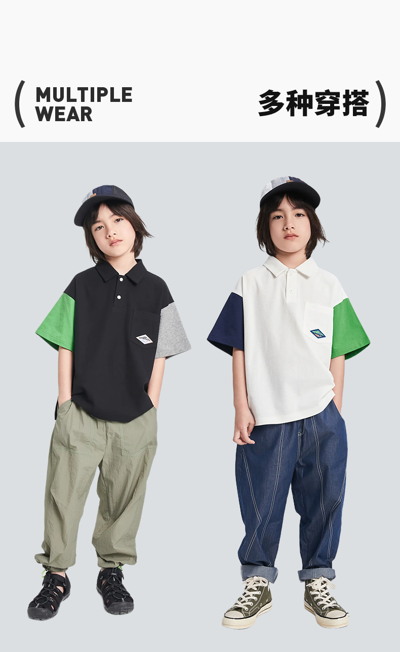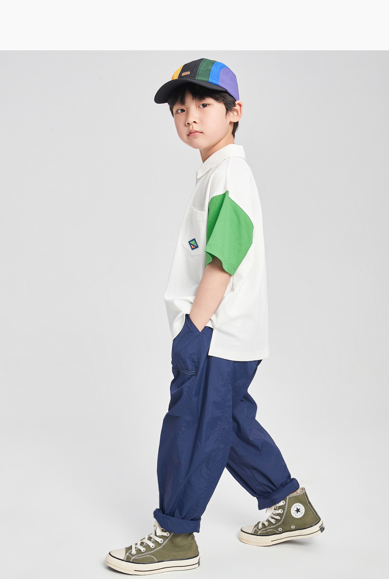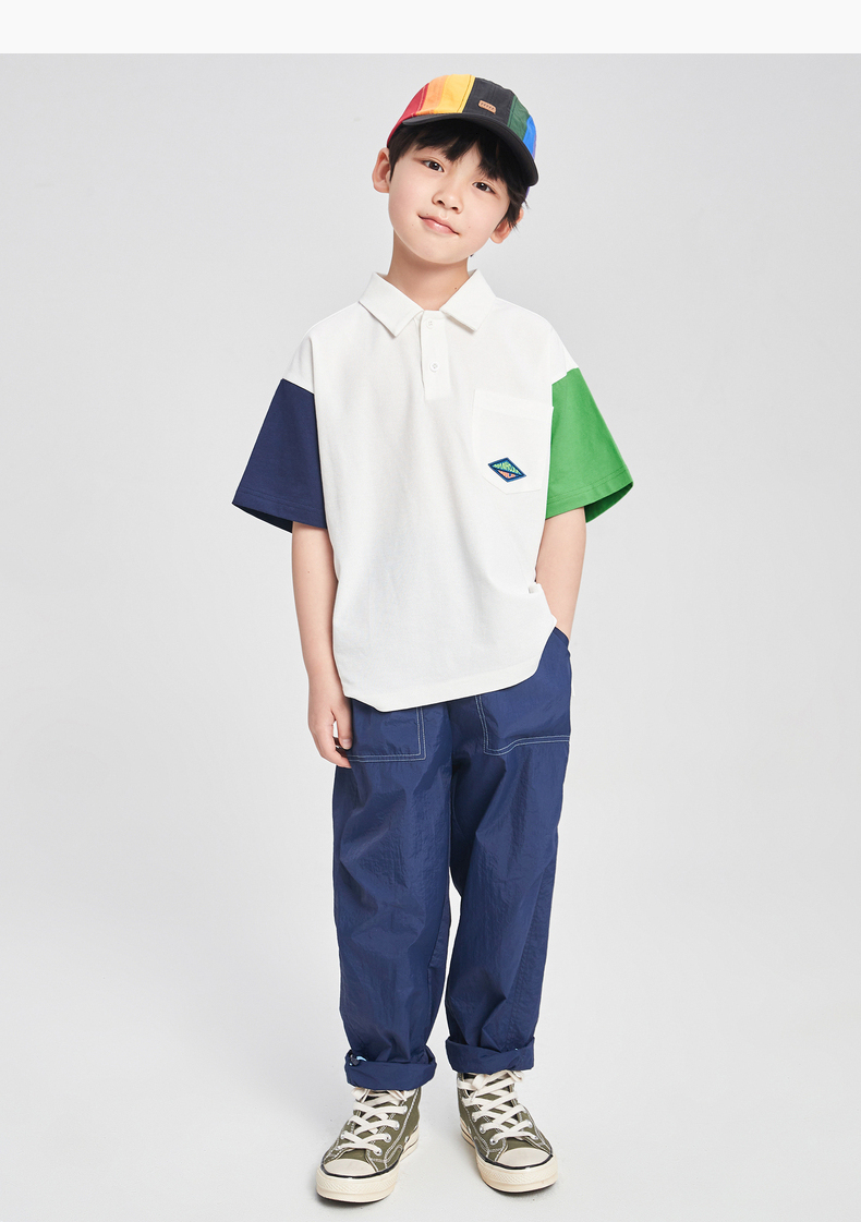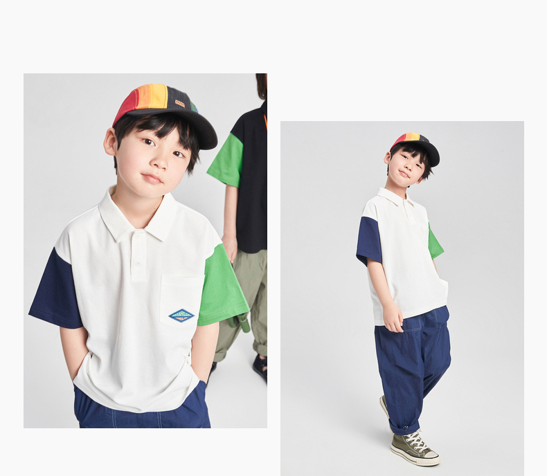 漫画家潮童装男童短袖新款夏季凉感珠地撞色POLO衫儿童T恤