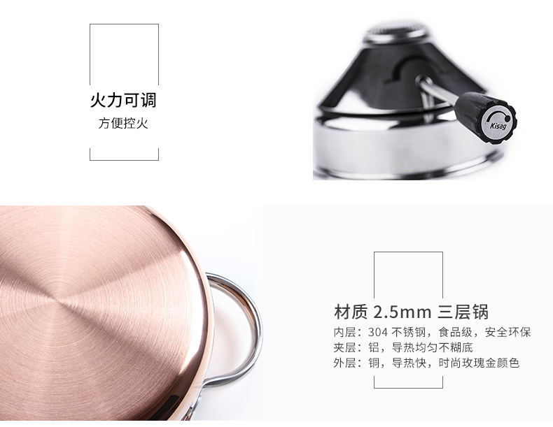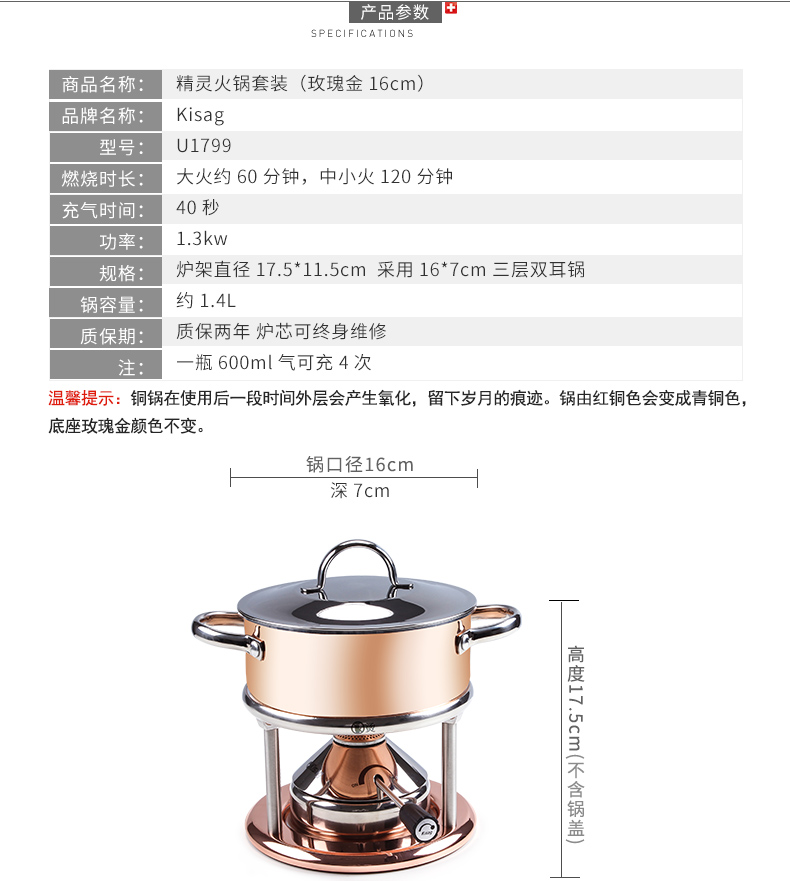 瑞士Kisag瓦氏炉 玫瑰金单人小火锅炉