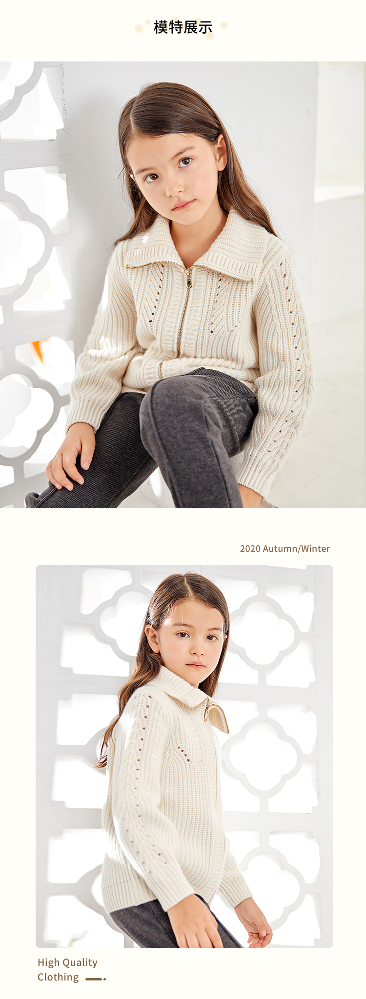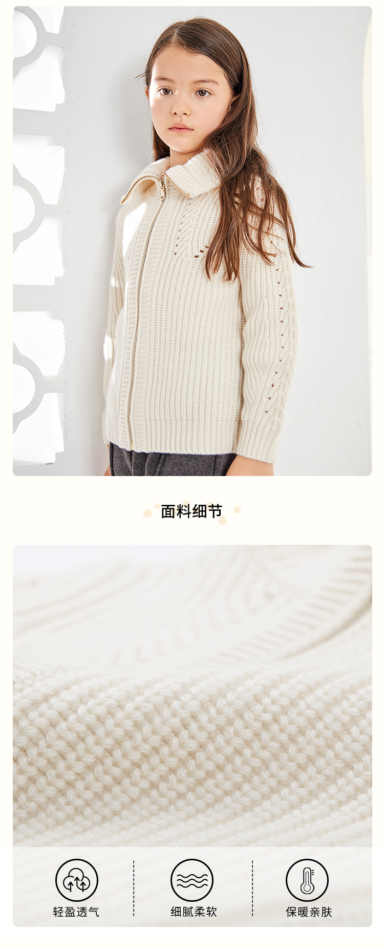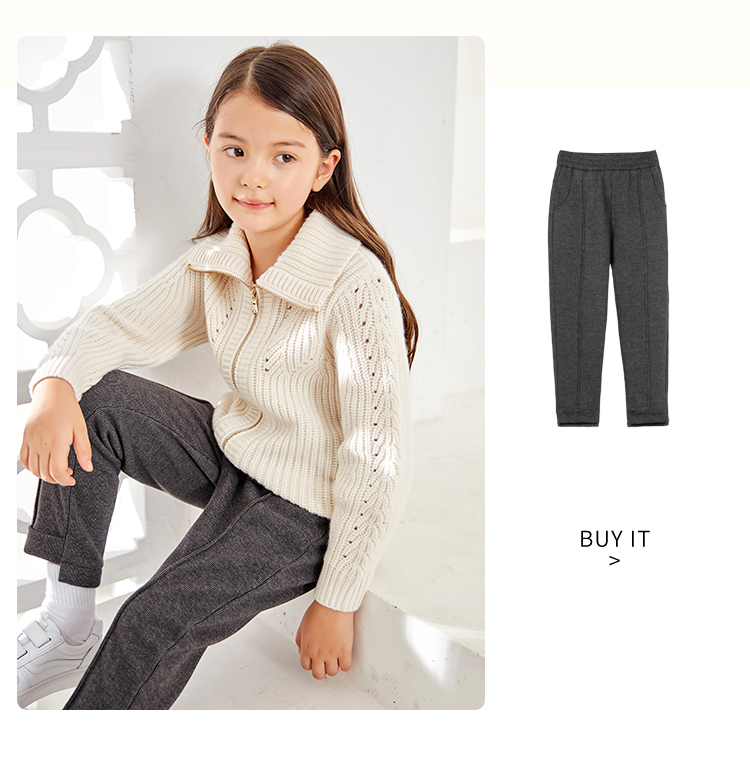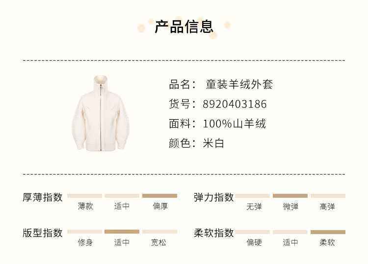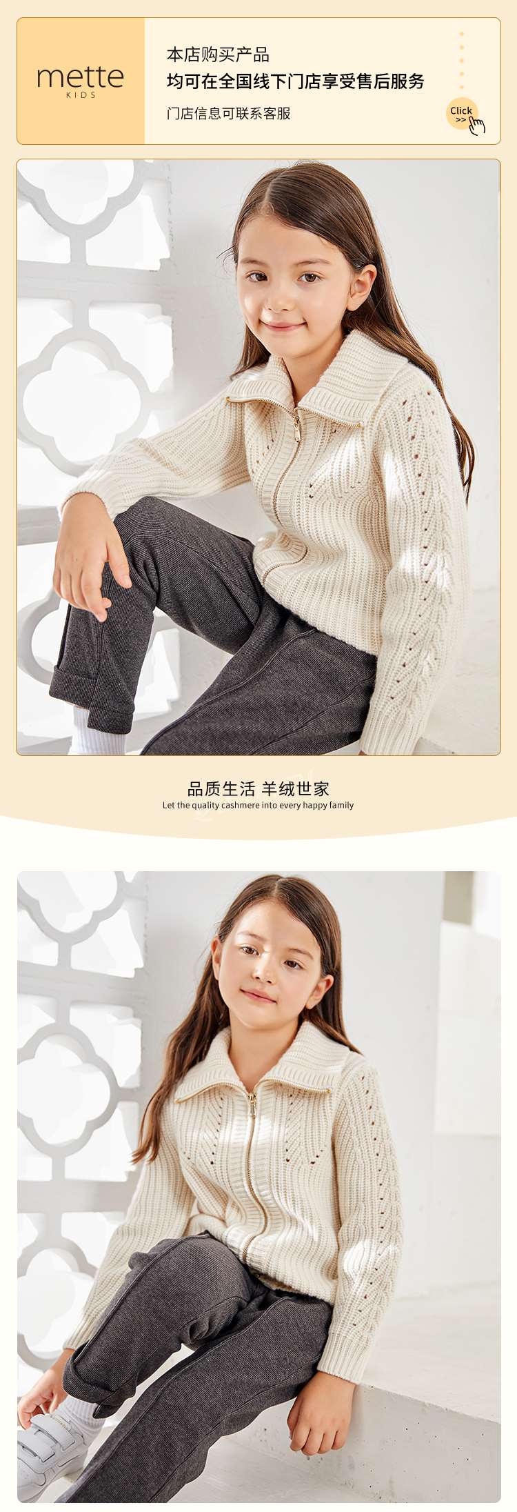 METTE羊绒世家童装100%山羊绒开衫外套20年女宝立领保暖针织外套
