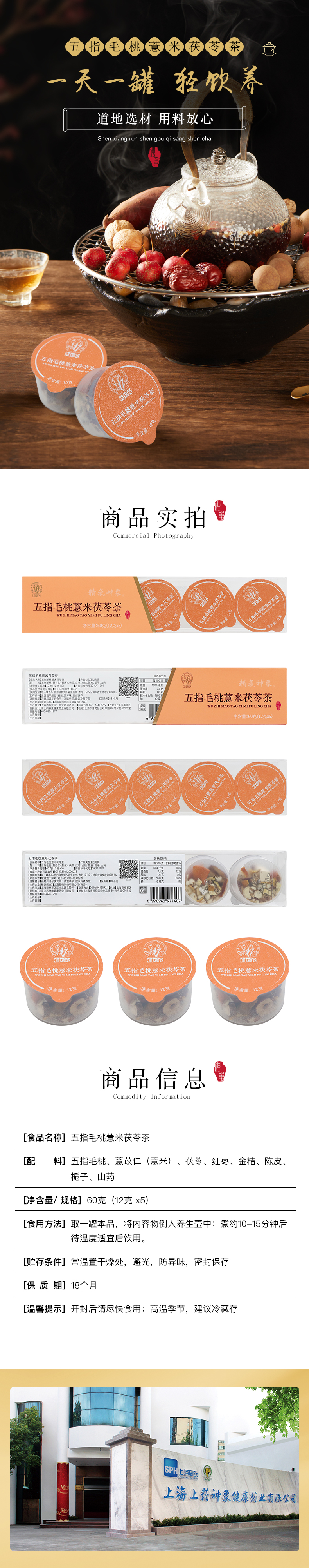 上药神象小罐茶 五指毛桃薏米茯苓茶 (12克*5罐)