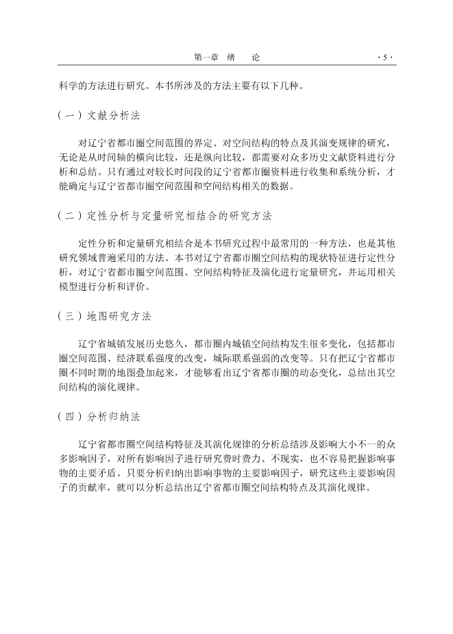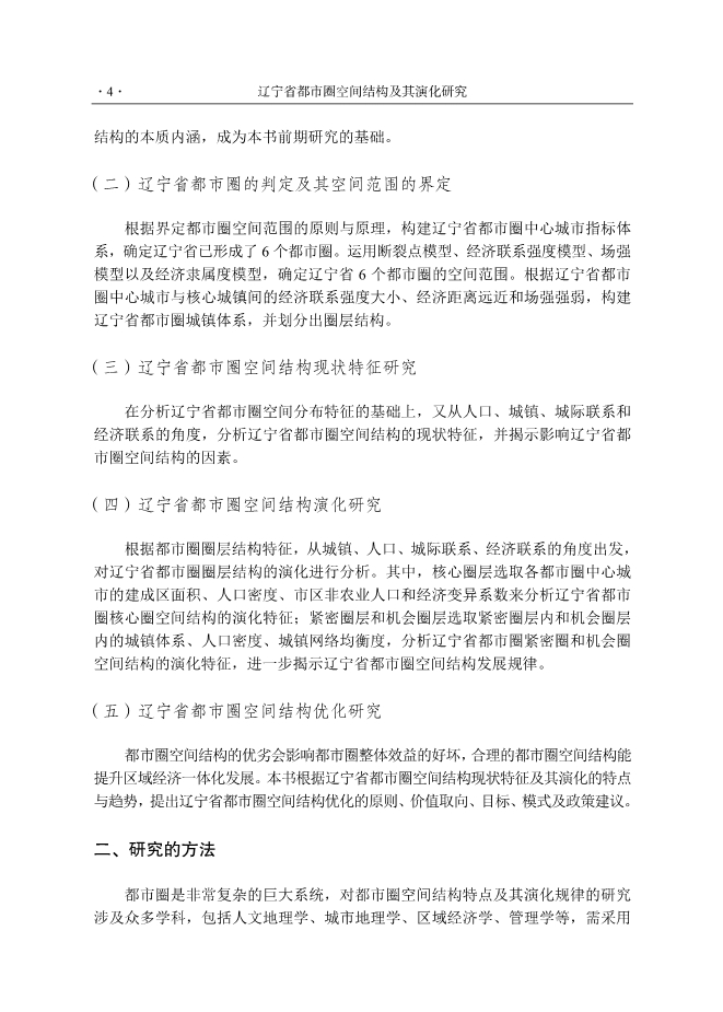 定性分析和定量研究相结合是本书研究过程中最常用的一种方法,也是其他研究领域普遍采用的方法。本书对辽宁省都市圈空间结构的现状特征进行定性分析,对辽宁省都市圈空间范围、空间结构特征及演化进行定量研究,并运用相关模型进行分析和评价。