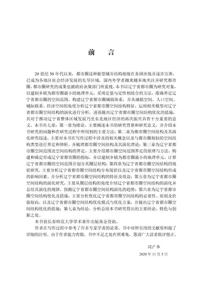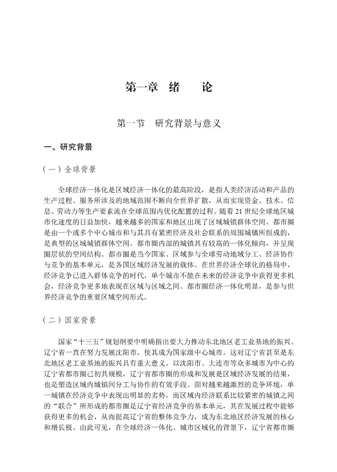 第二,对我国区域经济发展有促进作用。都市圈是国内外一种重要的区域空间形式,与传统的区域空间形式存在明显的差异。都市圈经济模式是国内外区域经济发展常见的一种模式,其整体效益已得到普遍认可。本书对辽宁省都市圈空间结构的分析与归纳,将促进辽宁省区域经济,甚至东北地区和国家经济发展。