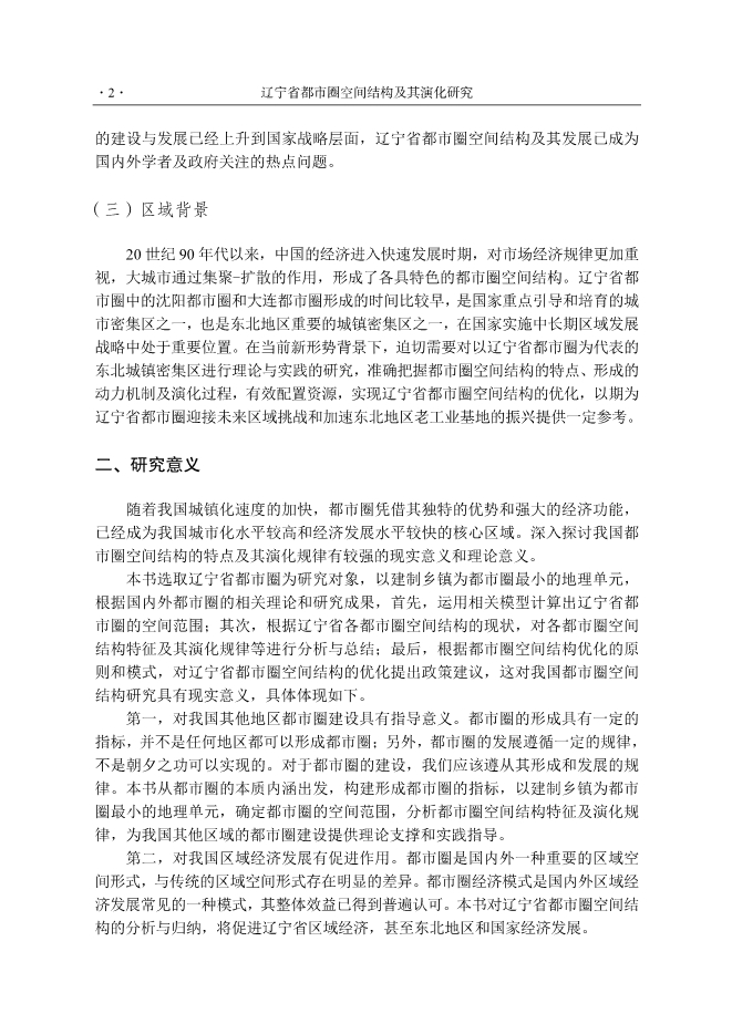 总之,从都市圈空间结构及其演化的角度入手,深入研究辽宁省都市圈空间结构形成与发展的规律,对我国其他区域的都市圈发展有着现实意义和理论意义。