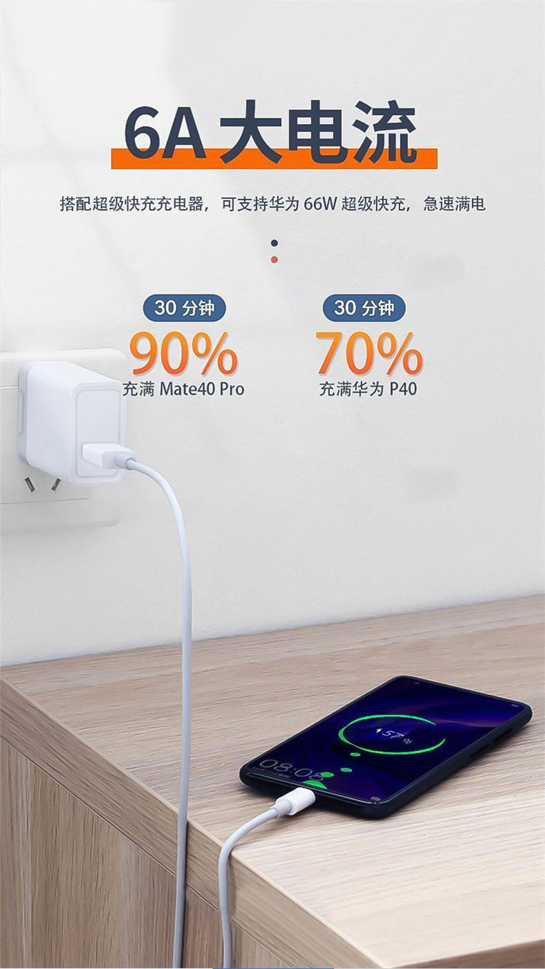 拍一发二 6A数据线适用于华为超级快充线40w/66W充电线typec超级闪充充电线
