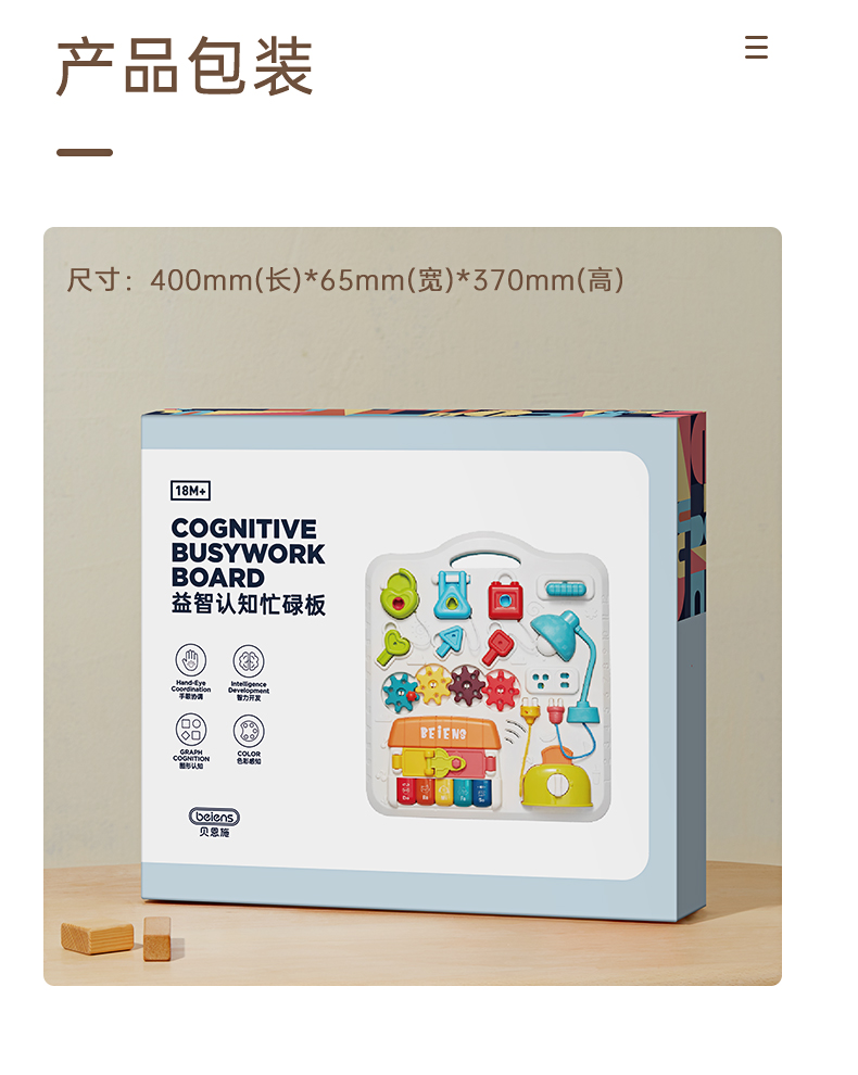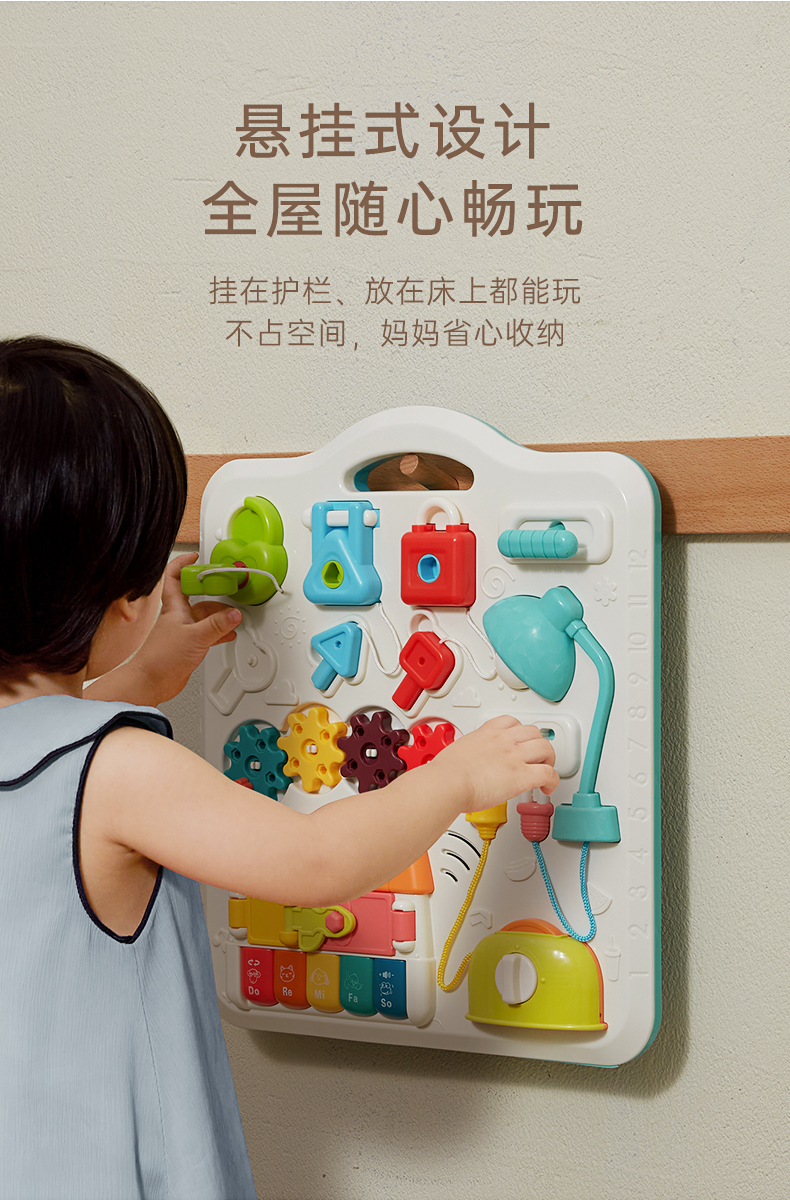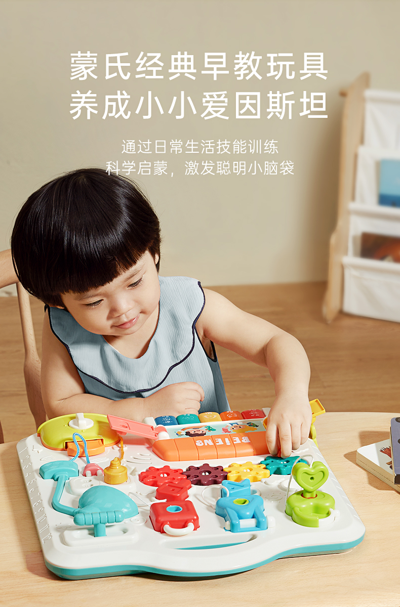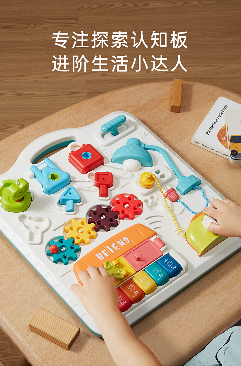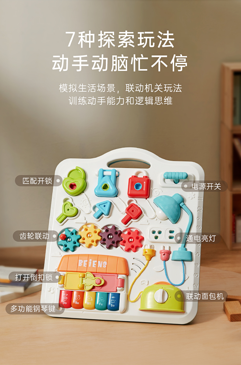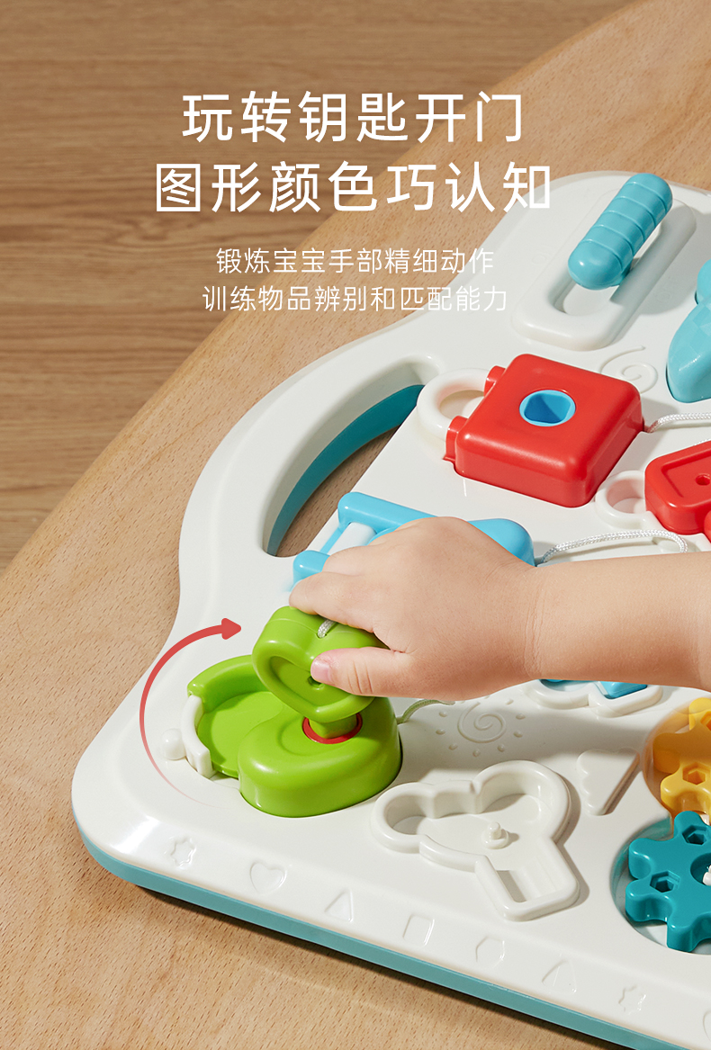 贝恩施开锁忙碌板儿童蒙氏早教益智玩具教具1一2一3岁宝宝屋箱块
