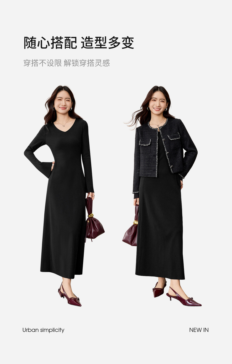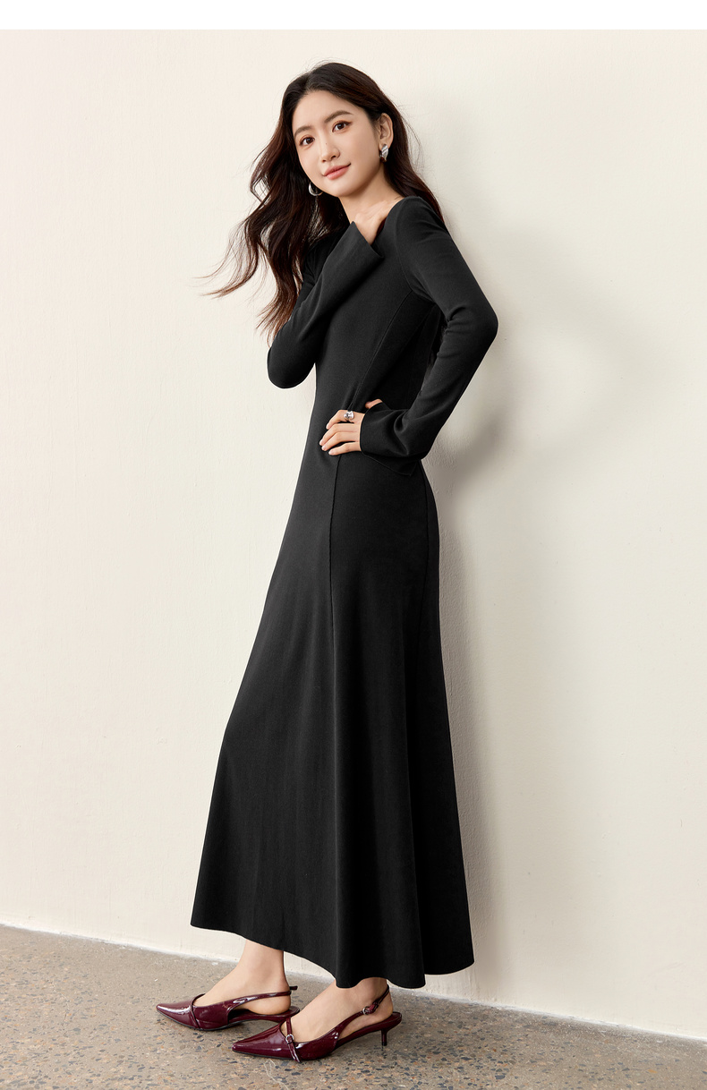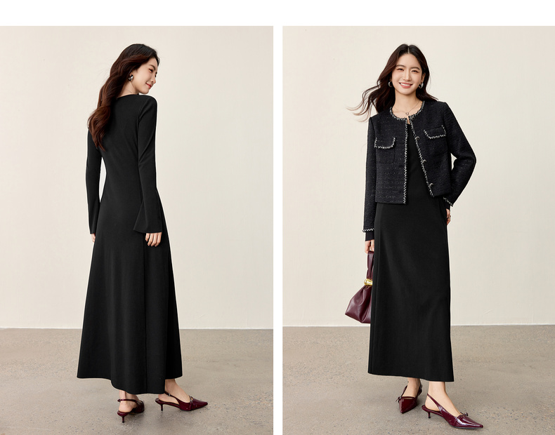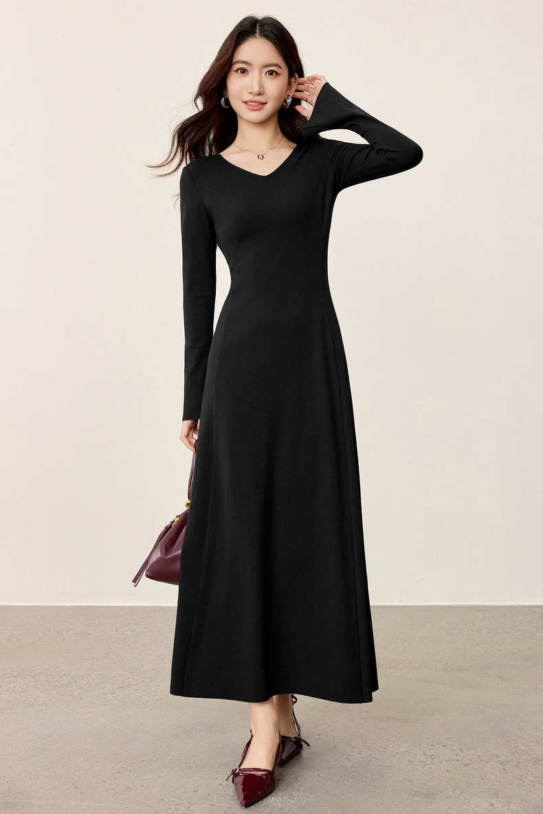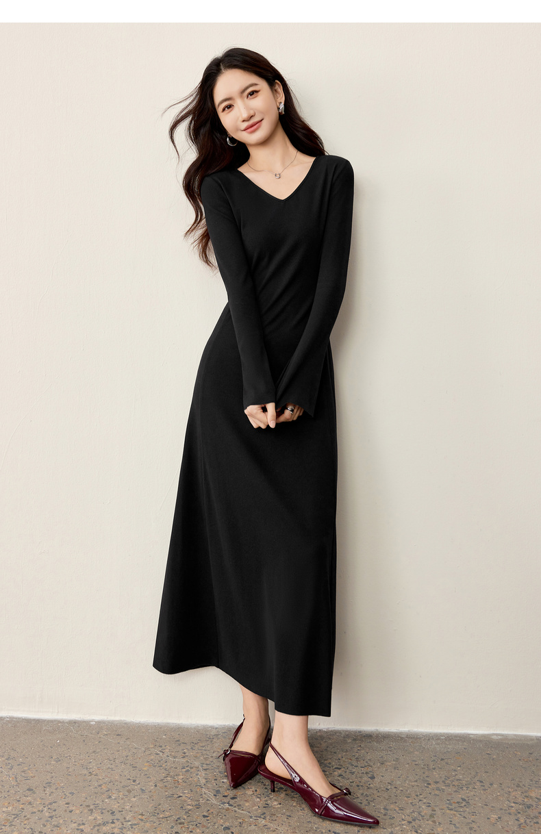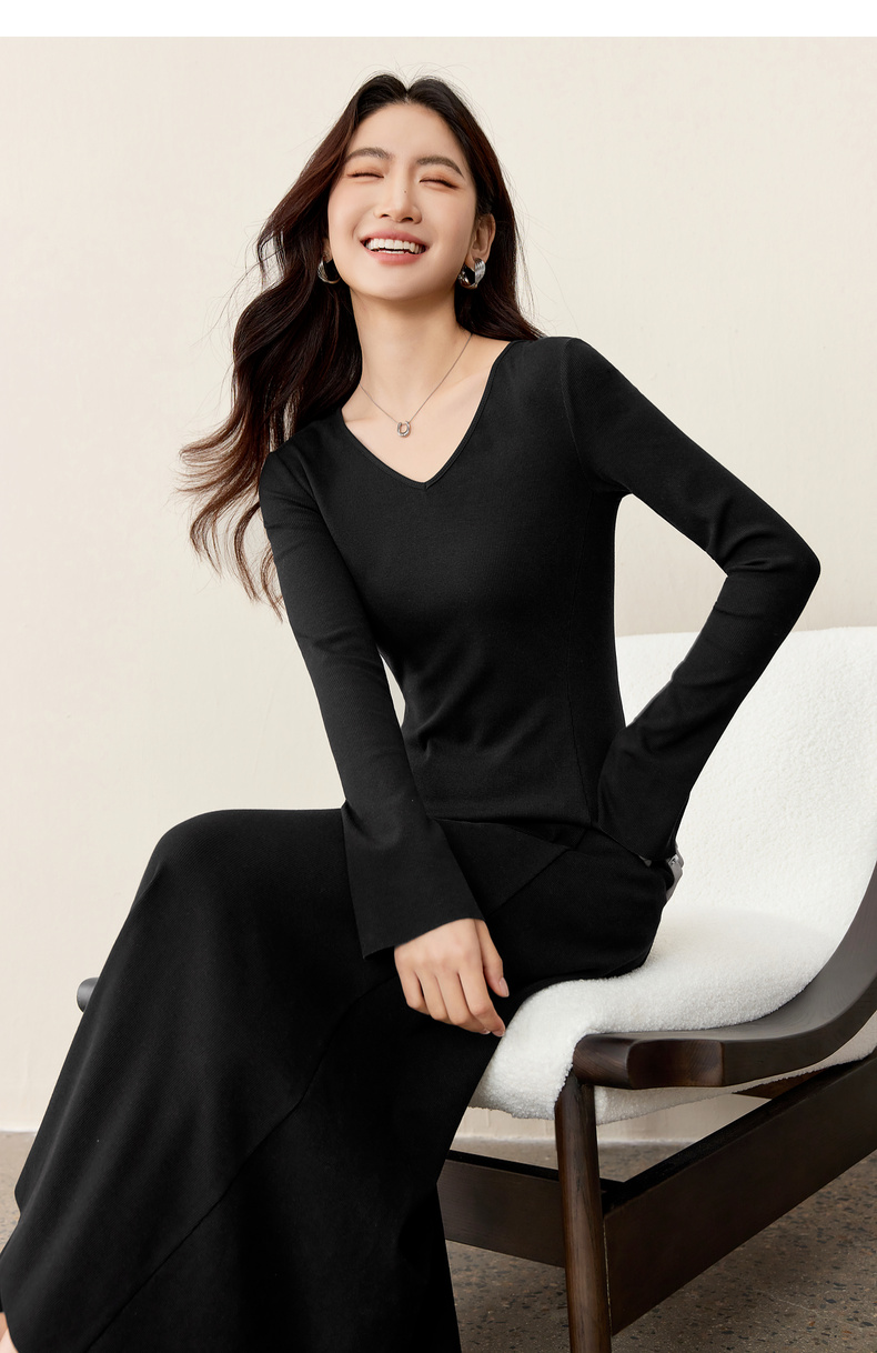 【内购】【通搭三季】简约通勤V领喇叭袖修身显瘦弹力针织连衣裙-153LN2858