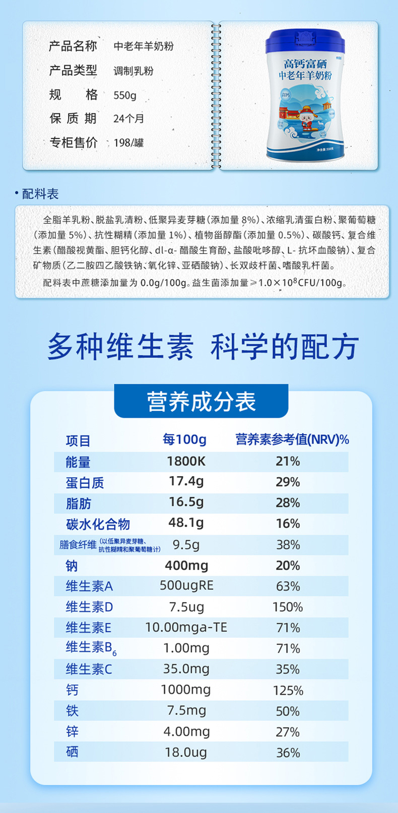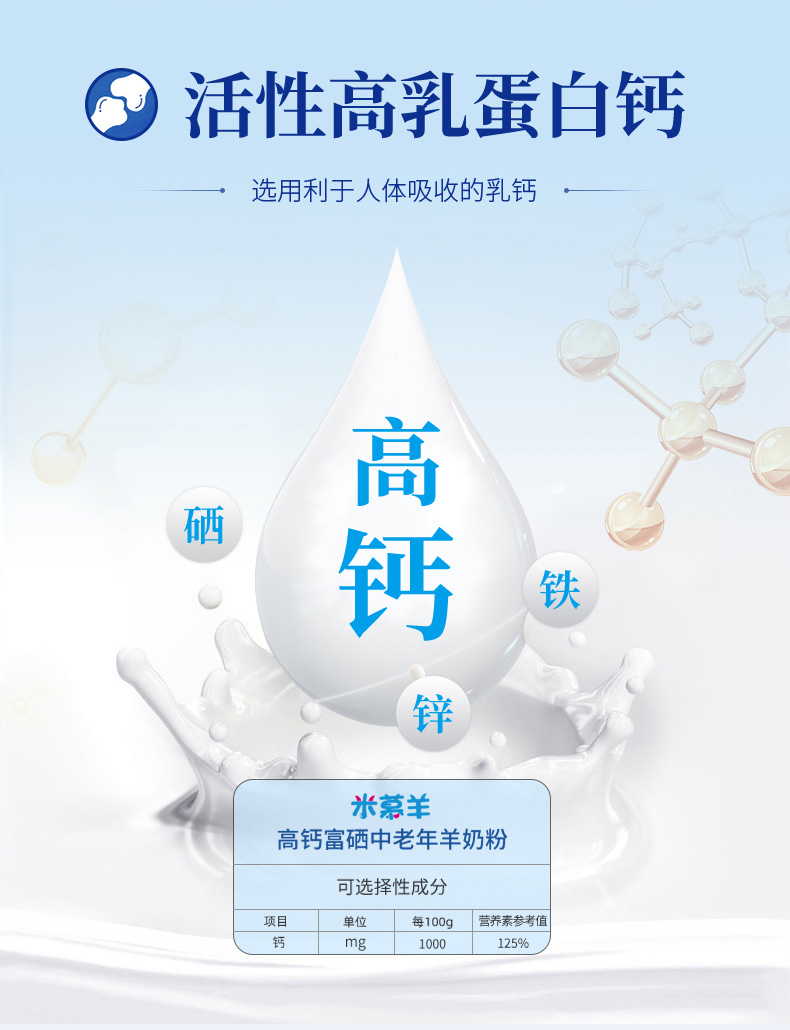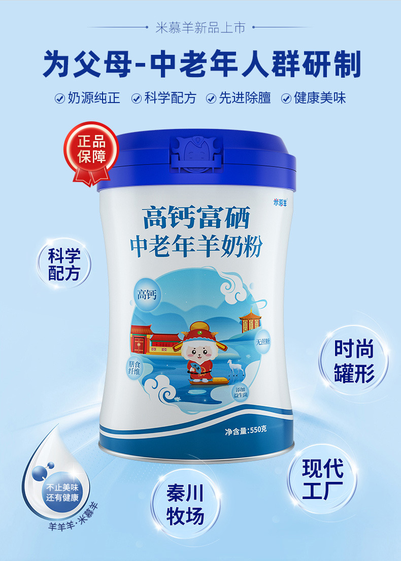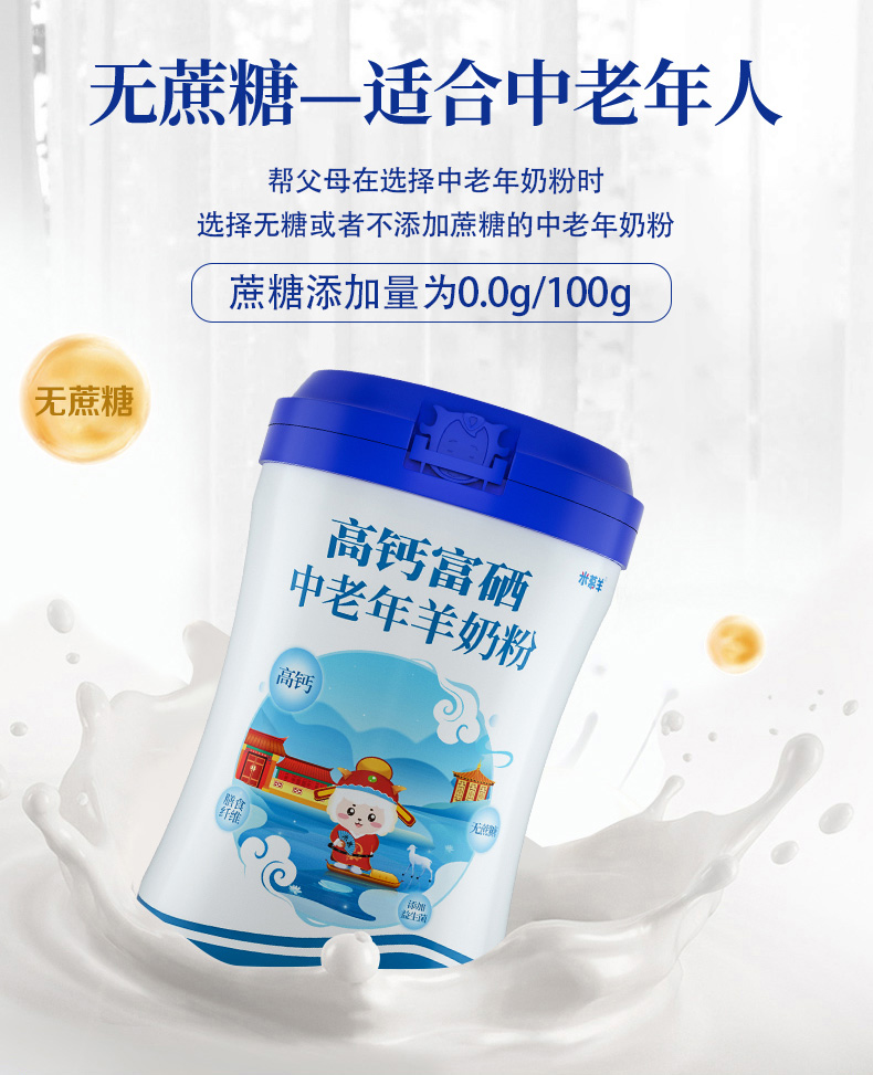 【羊羊羊】米慕羊高钙富硒中老年羊奶粉无蔗糖益生菌中老年成人羊奶粉罐装550克 单罐550g