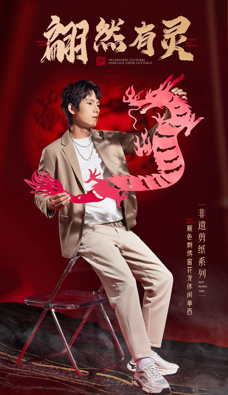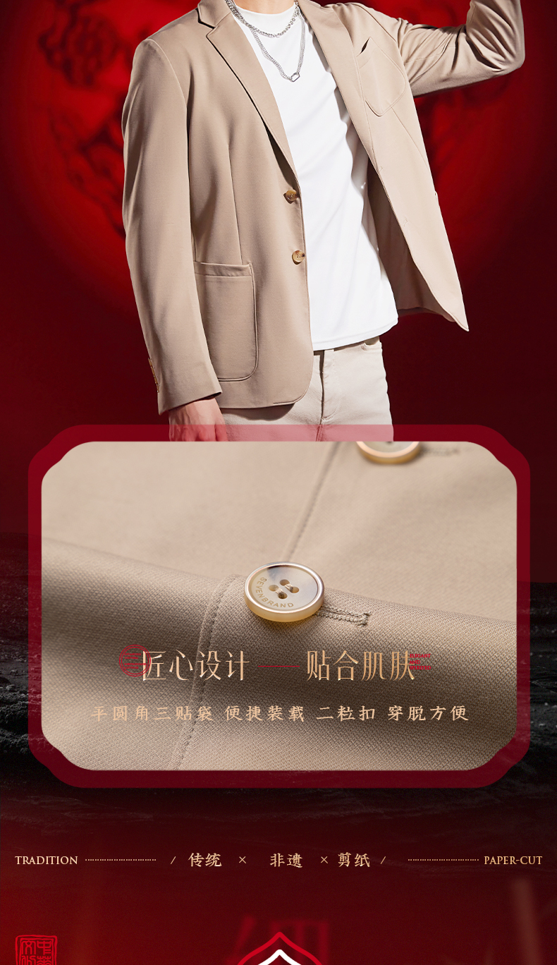 【非遗剪纸】柒牌男装西服男春季新款刺绣中青年时尚休闲西装外套 126C70300