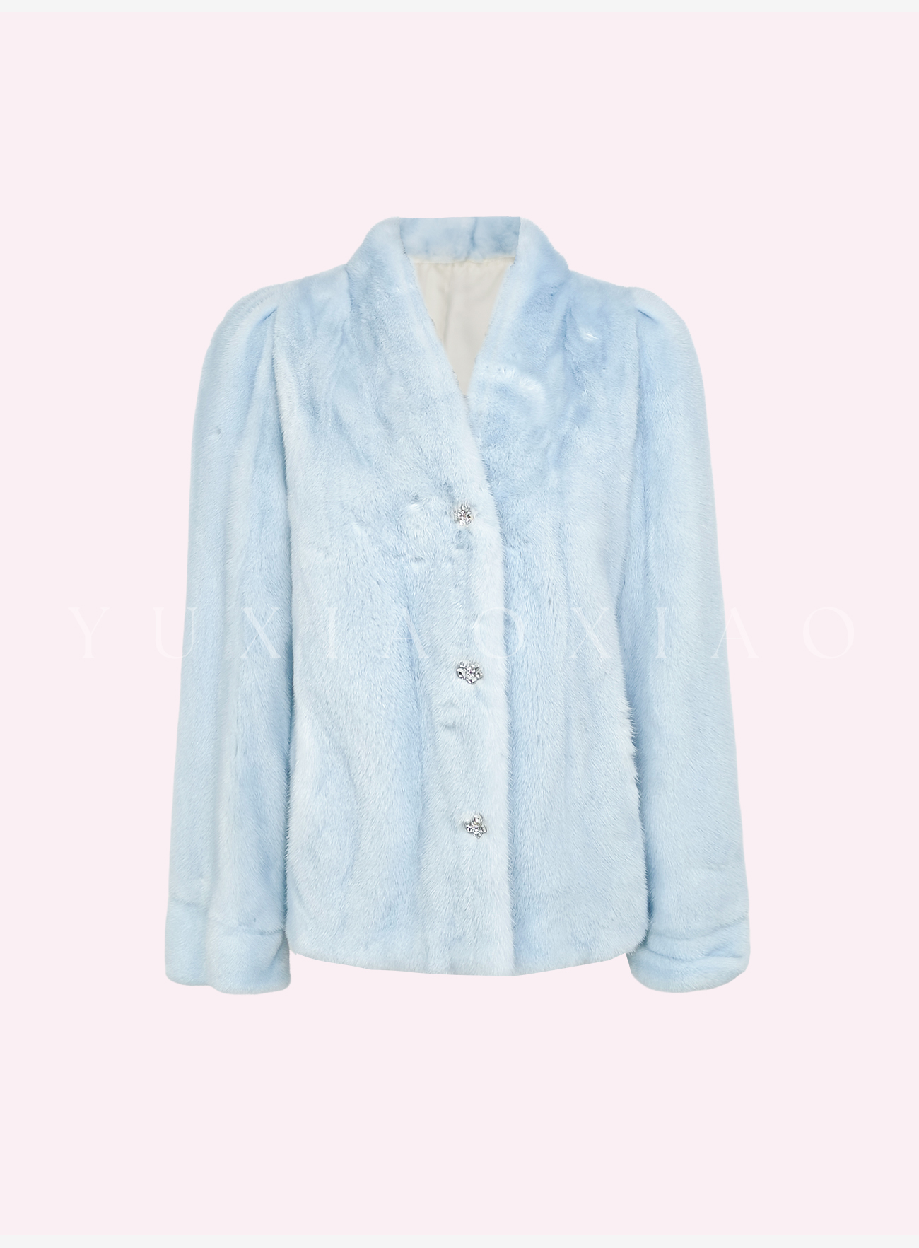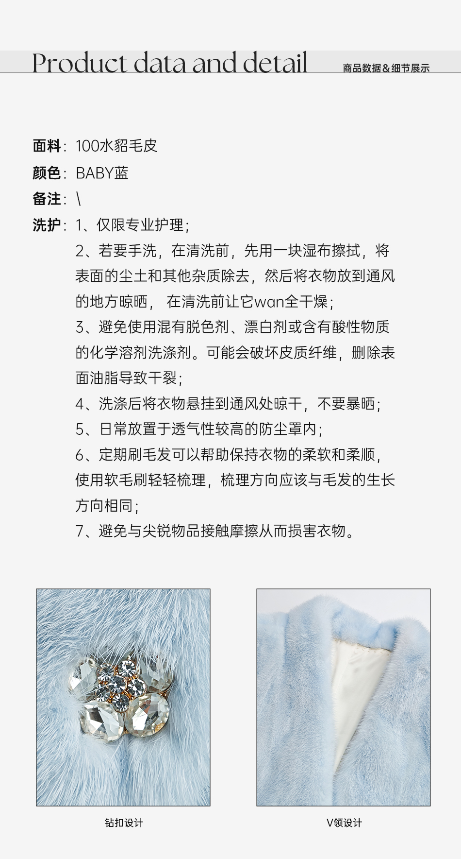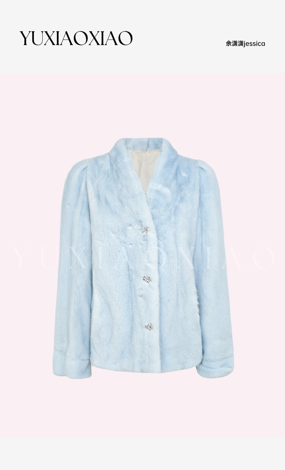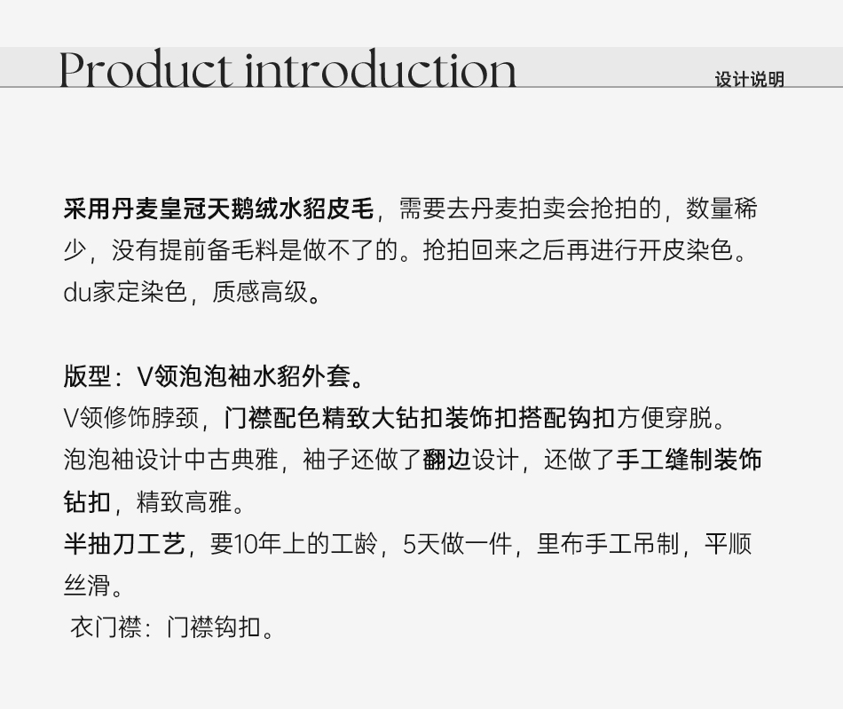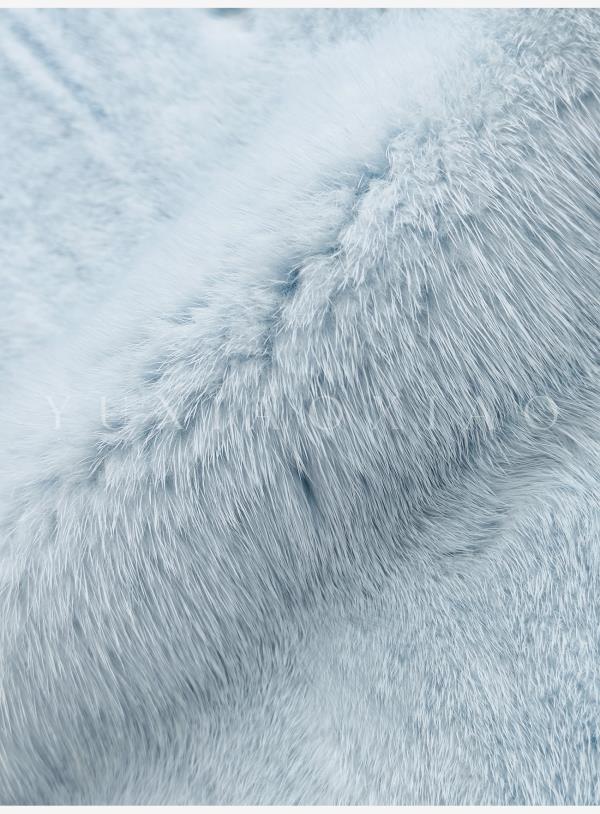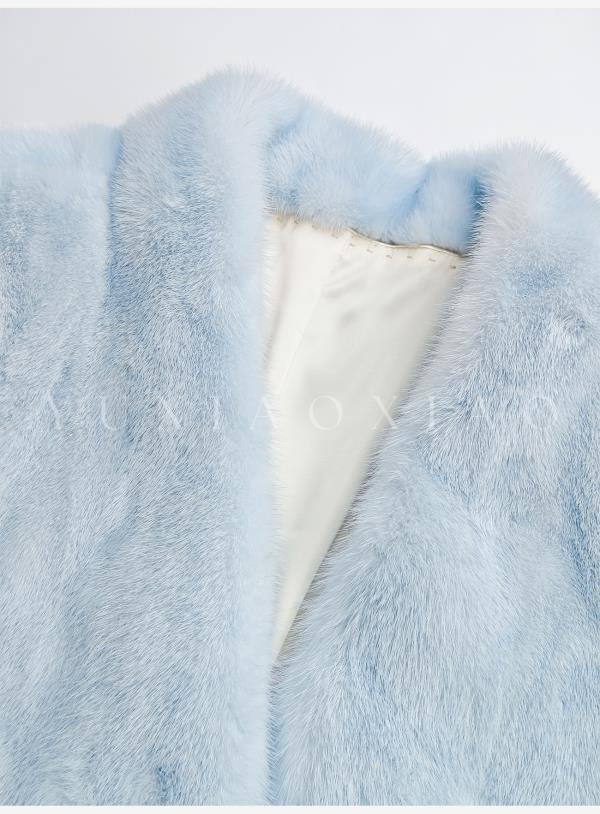余潇潇【静蓝物语】中古典雅天鹅绒水貂皮毛桑蚕丝内里V领皮草外套