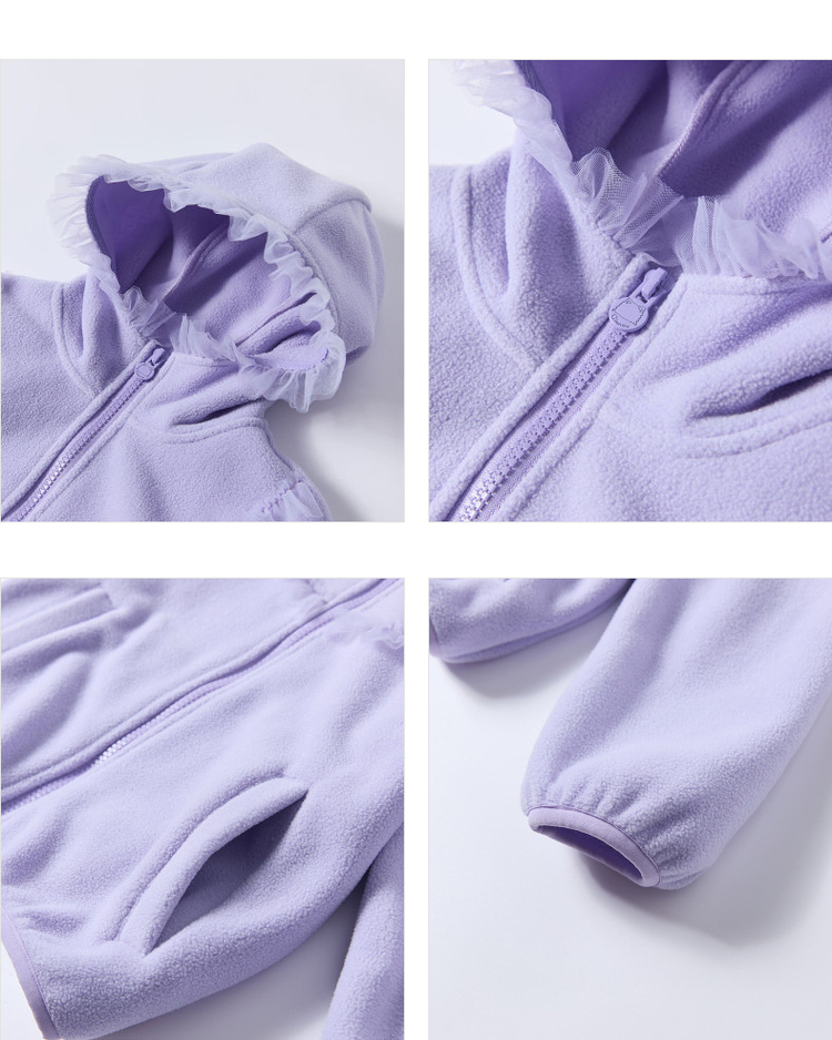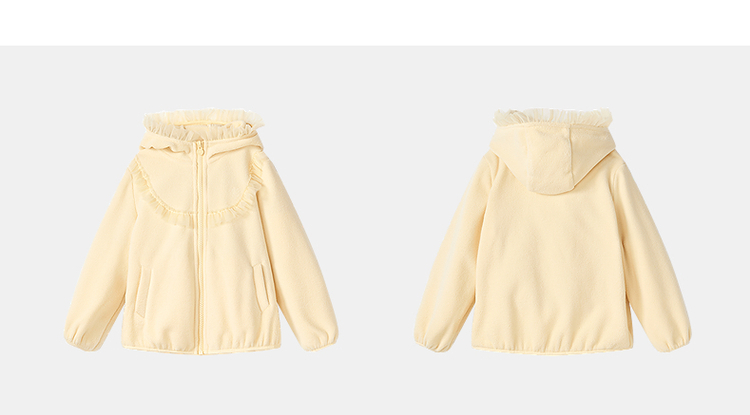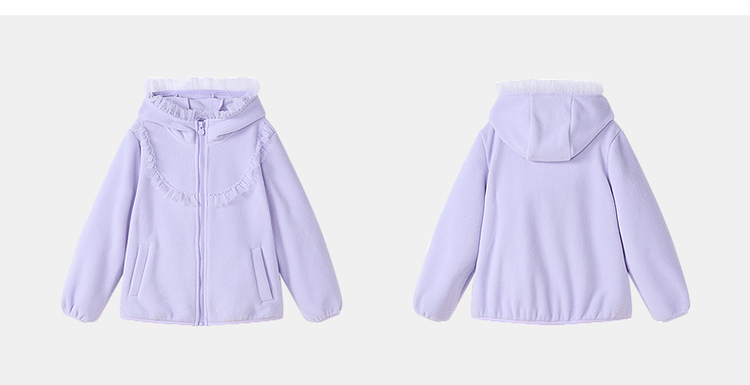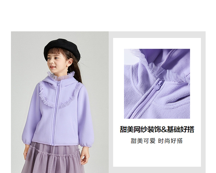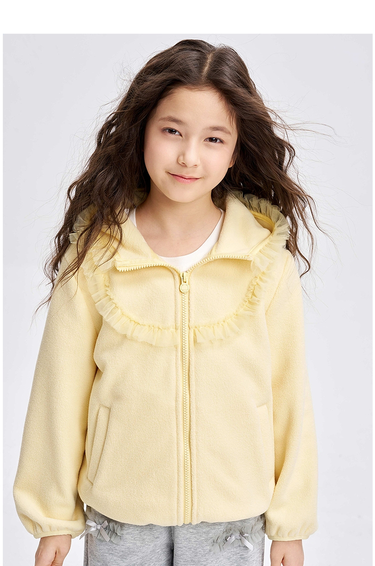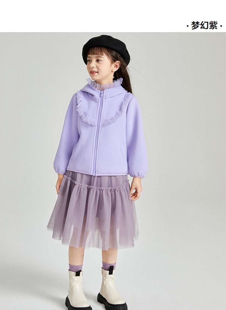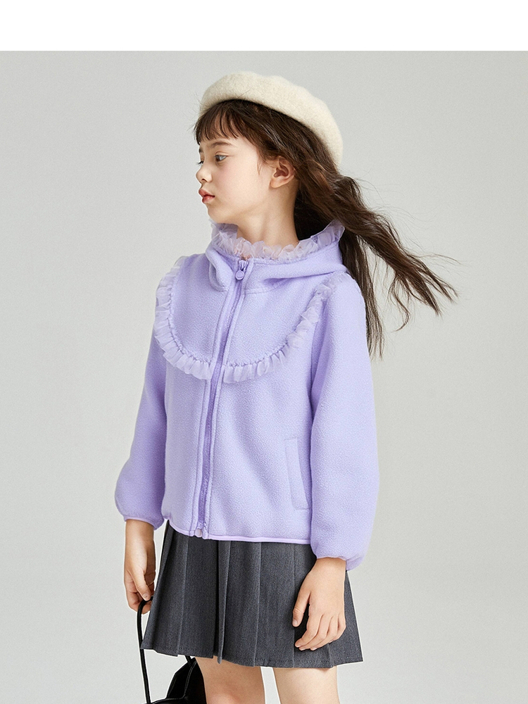 笛莎Deesha 2025冬季新款女童甜美网纱木耳边连帽摇粒绒外套
