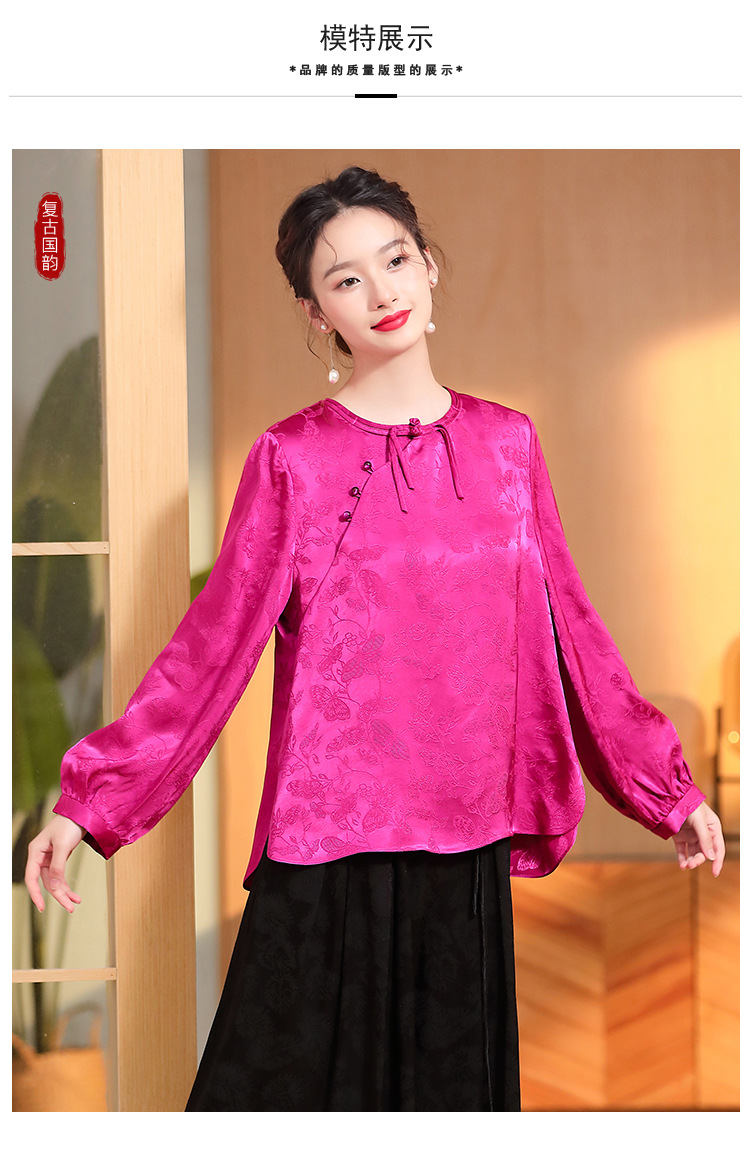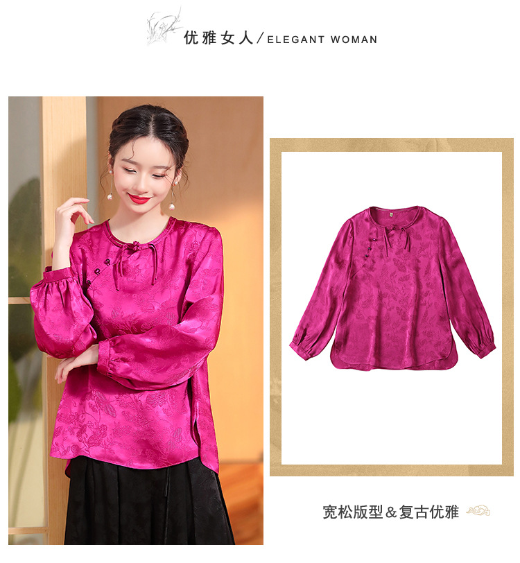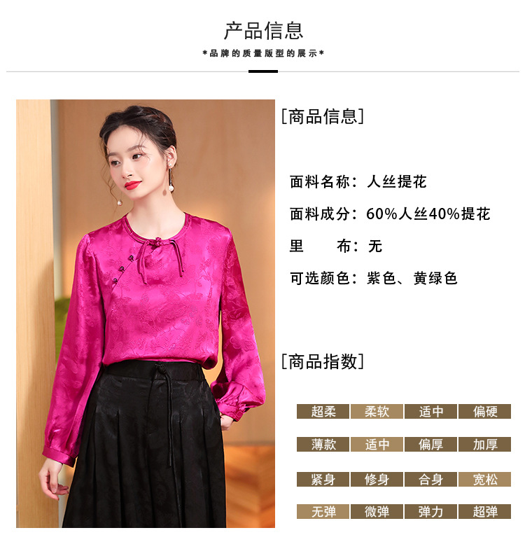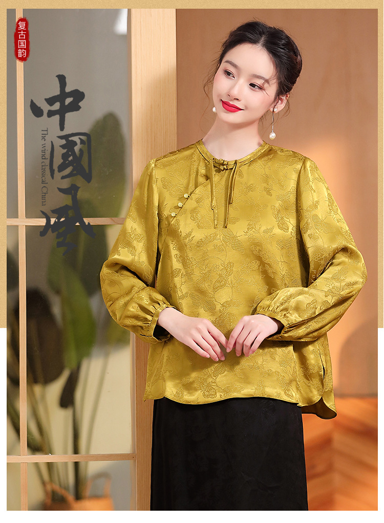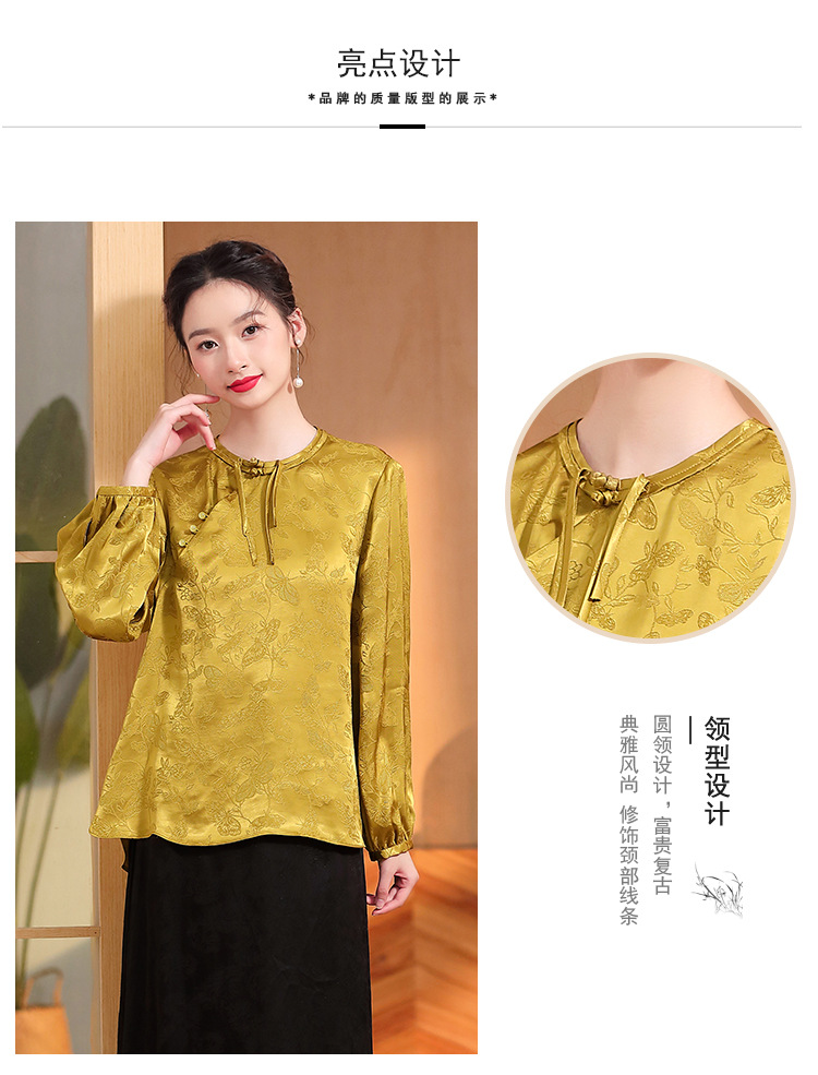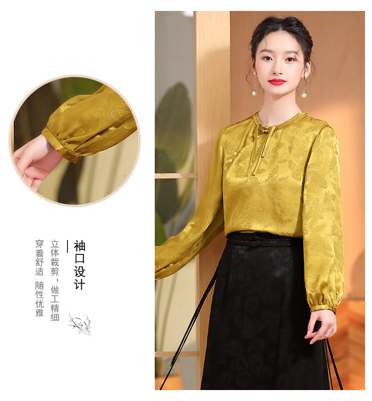宽松复古,长袖圆领改良新唐装女春夏女装人丝提花圆领上衣AYK-QF-230211