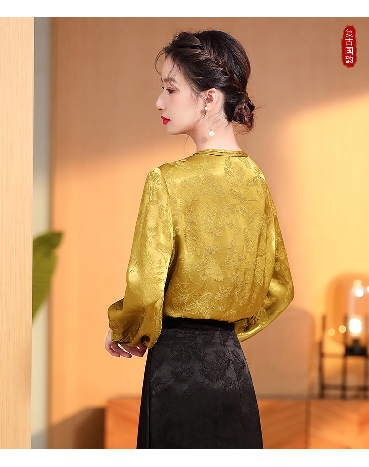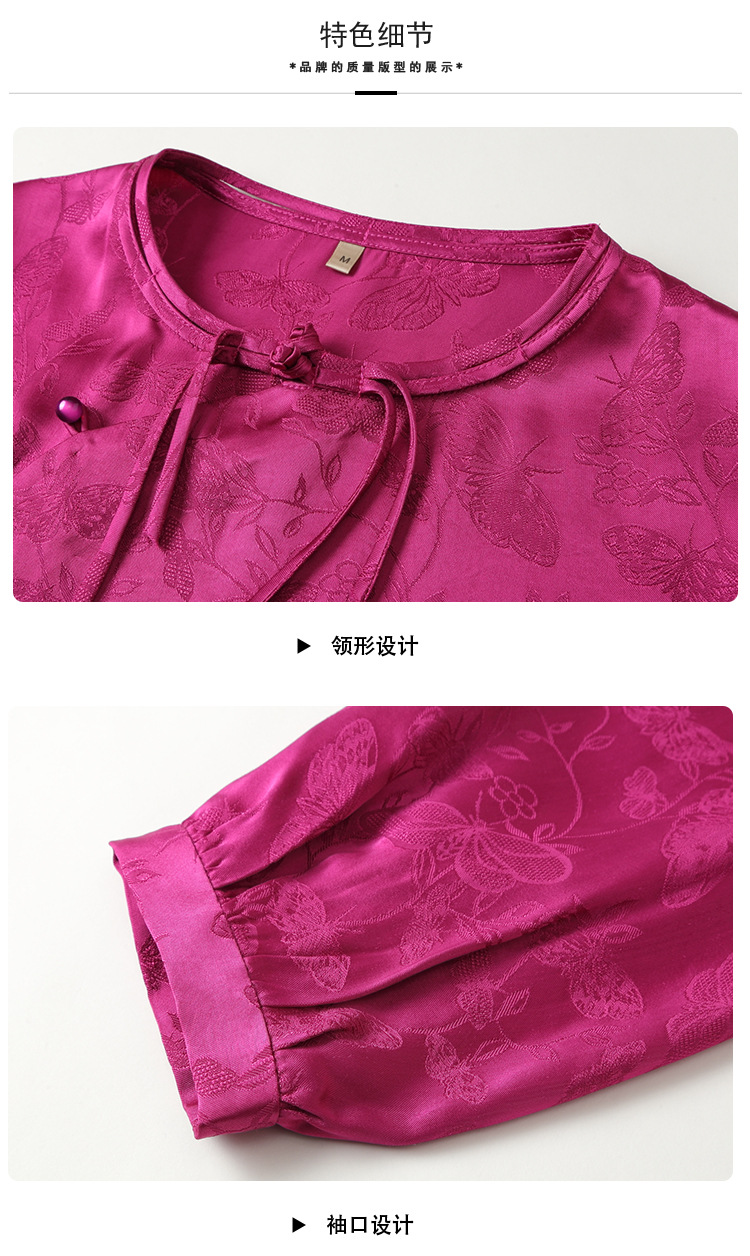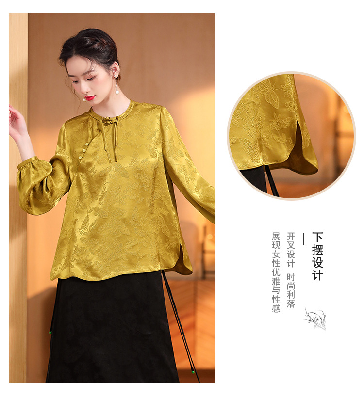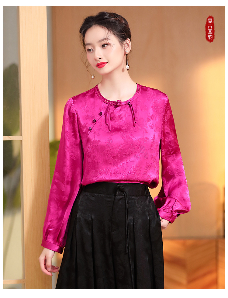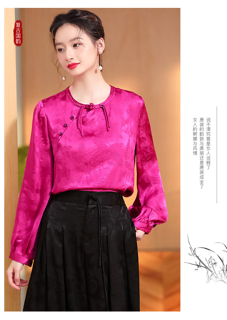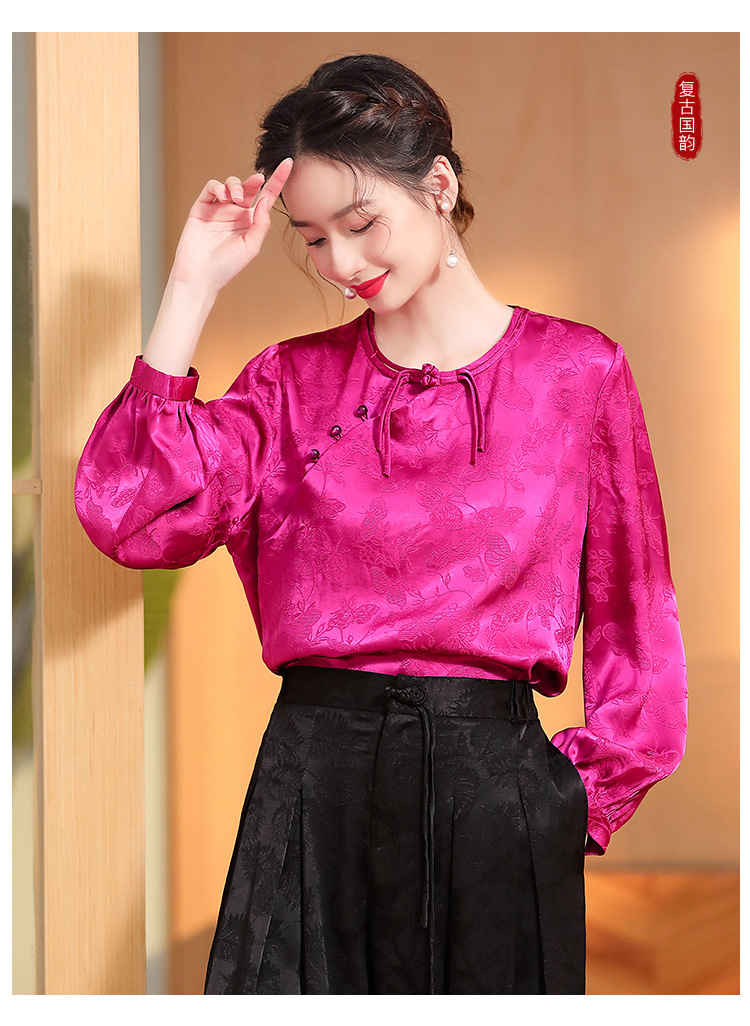 宽松复古,长袖圆领改良新唐装女春夏女装人丝提花圆领上衣AYK-QF-230211