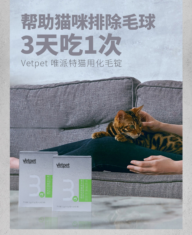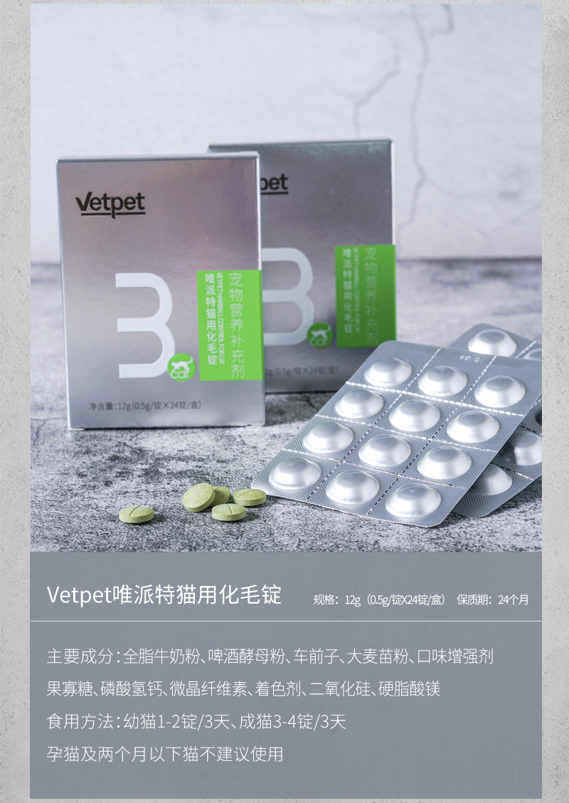 【一般贸易】Vetpet唯派特猫用化毛锭24锭/盒 宠物猫咪保健品