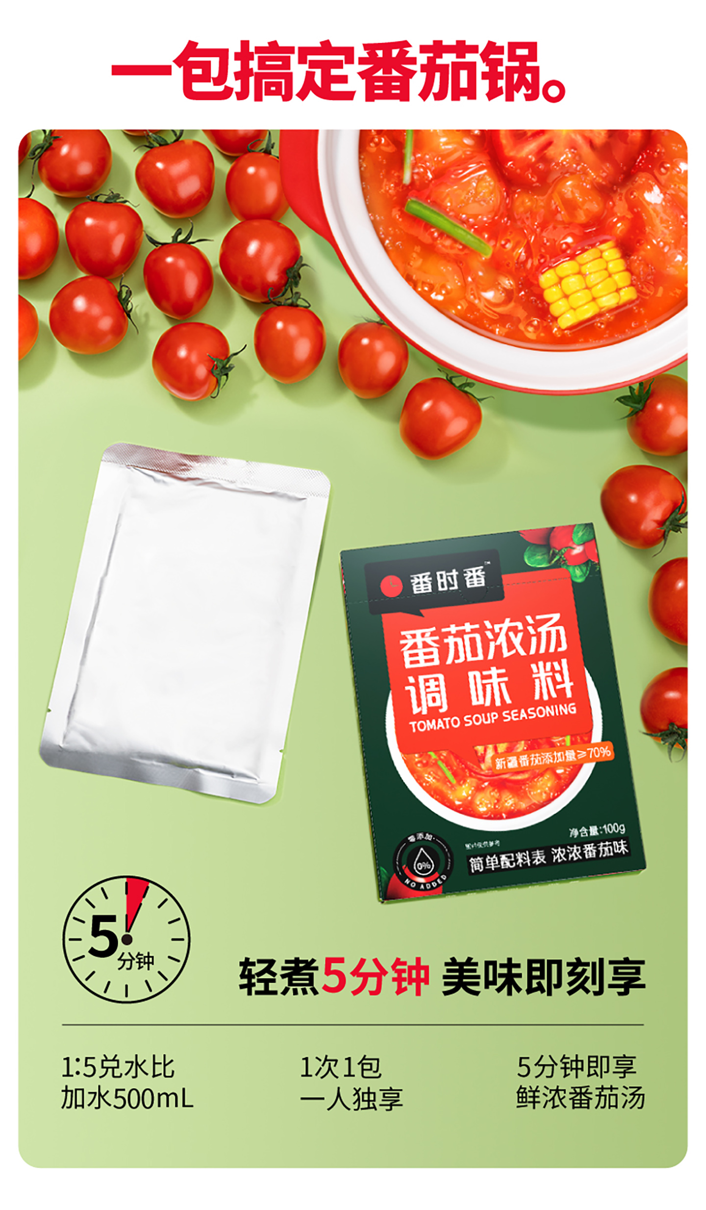 【番时番】番茄浓汤调味料 配料表超干净 精选自然完熟的新疆番茄 露天种植的番茄滋味