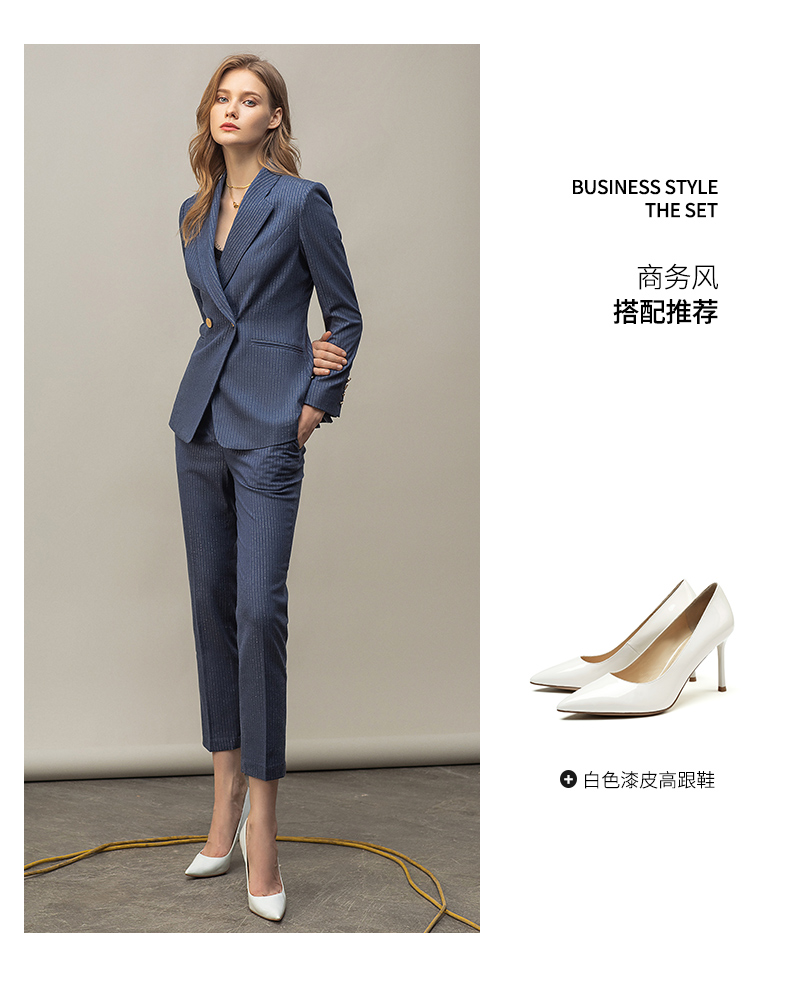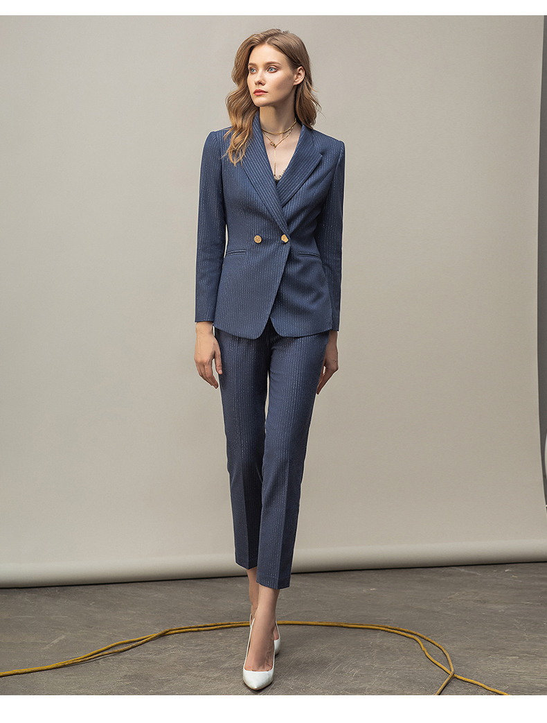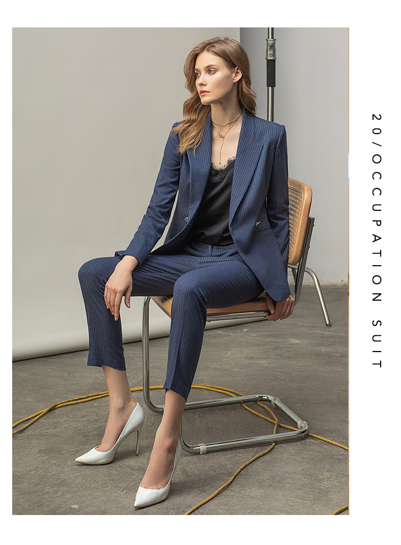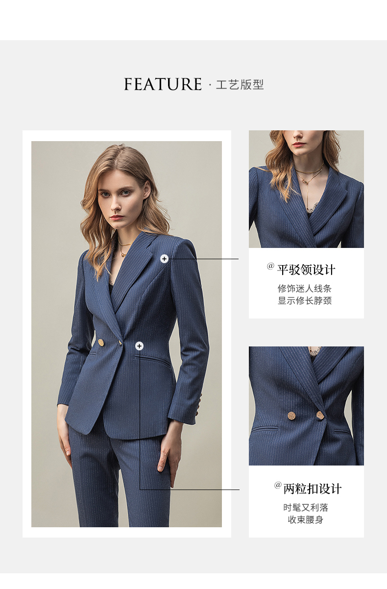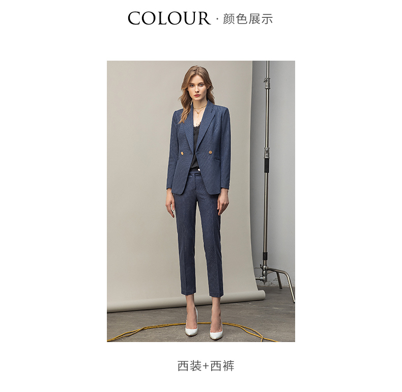 IWY/优雅蓝灰色职业西装西服女气质美容院套装长袖面试两件套干练工装C11348+P11348