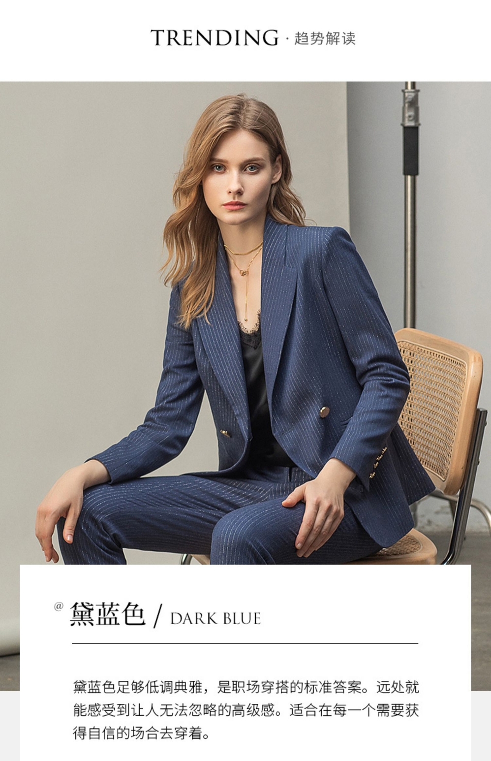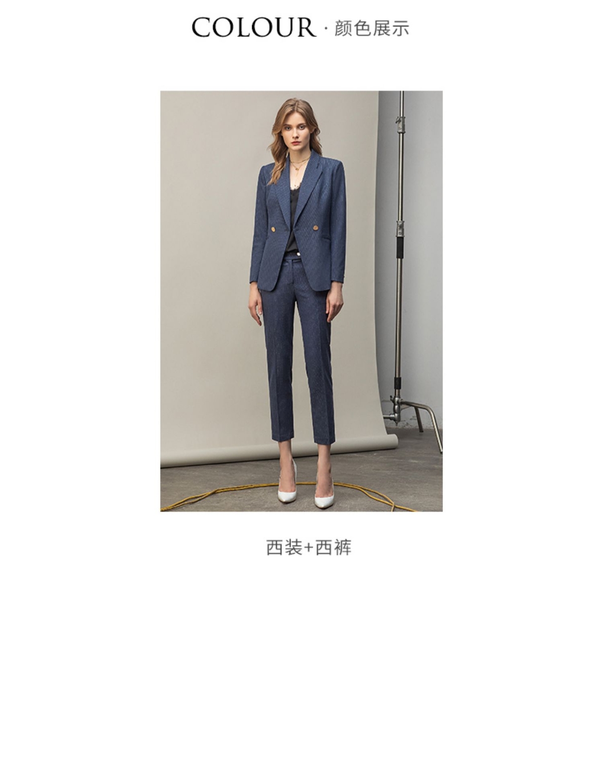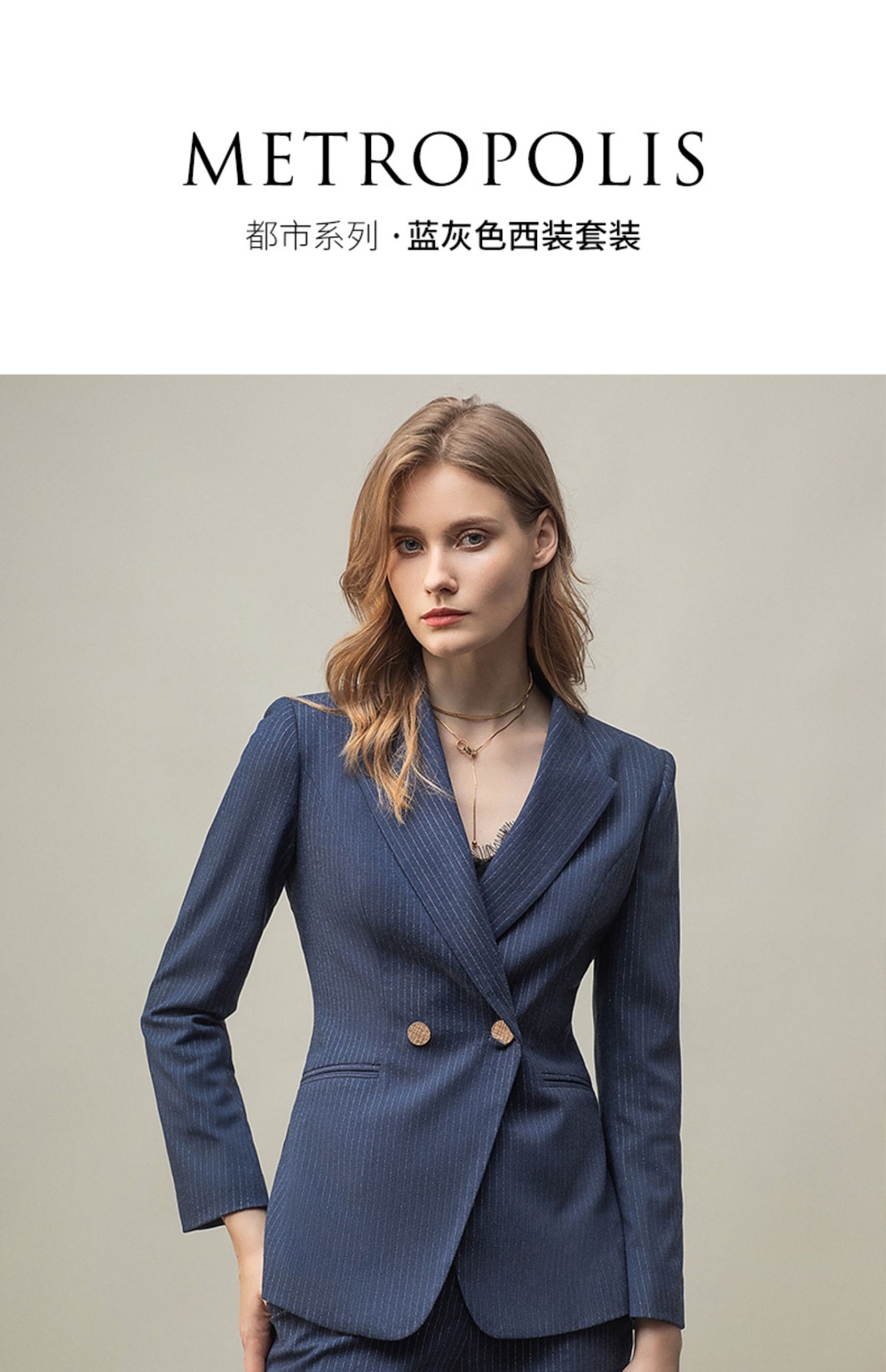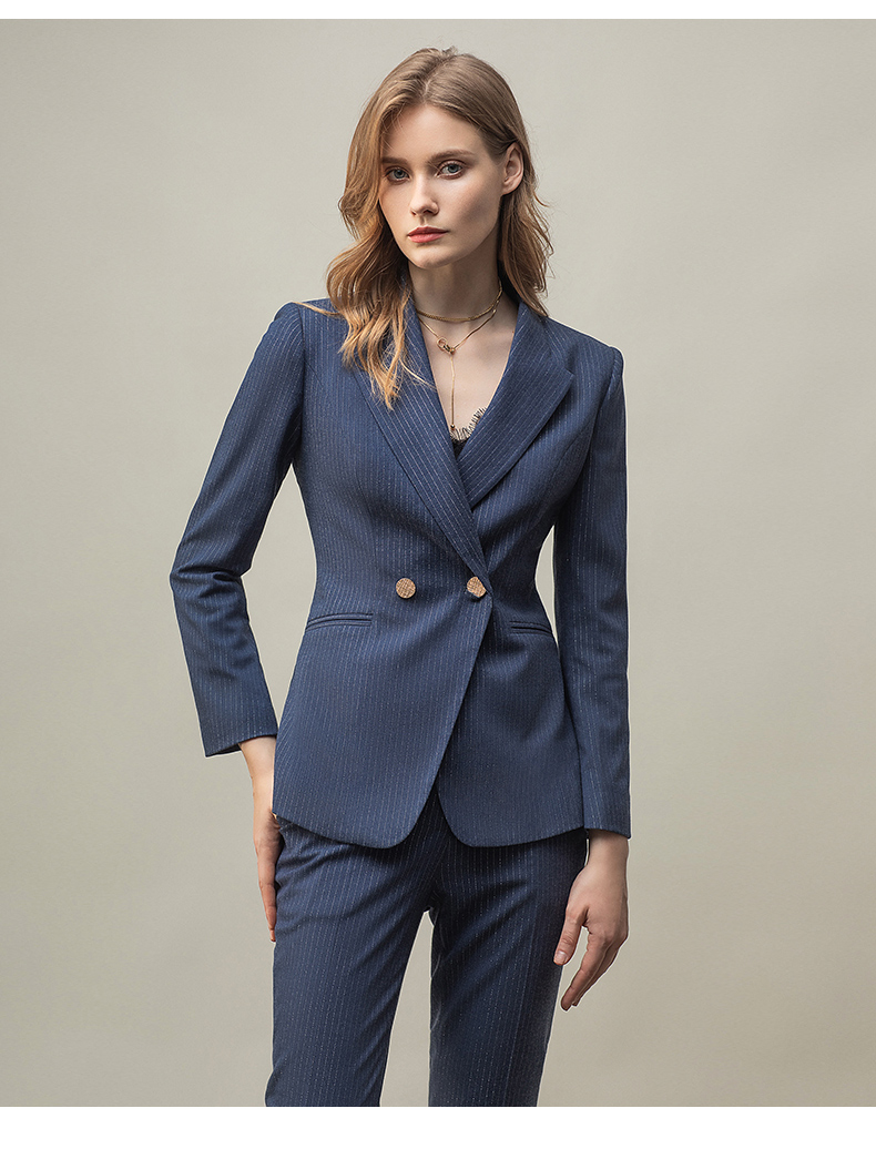 IWY/优雅蓝灰色职业西装西服女气质美容院套装长袖面试两件套干练工装C11348+P11348