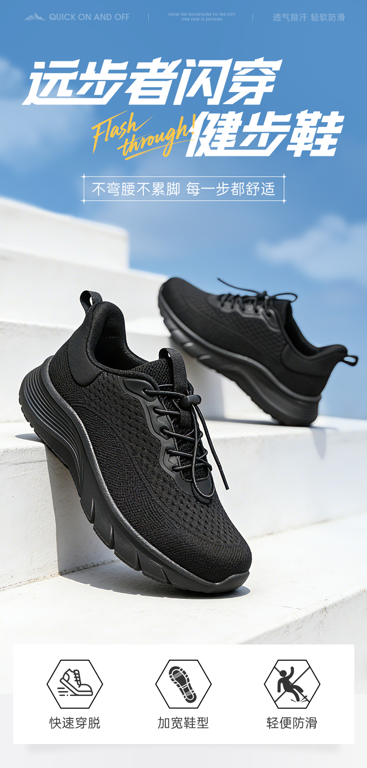 【远步者闪穿健步鞋】轻量缓震休闲鞋一脚蹬通勤网布鞋透气免系低帮鞋XJ615