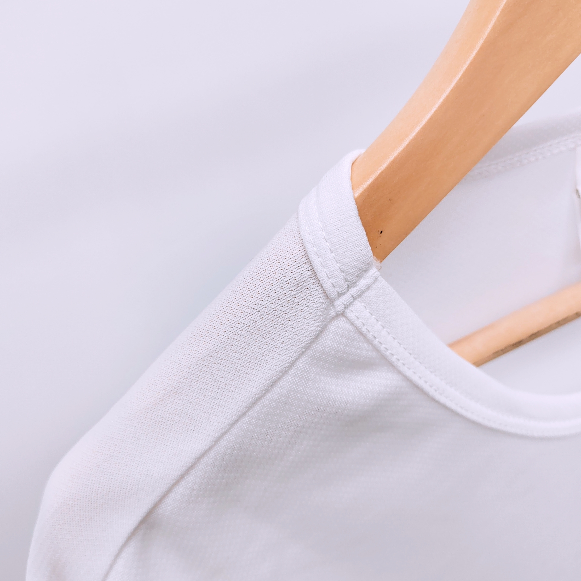 双车线工整流畅,穿着服帖 柔软弹力的小圆领设计,