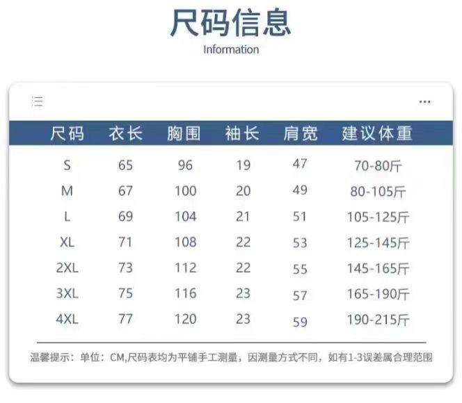 男女同款,尺码从S-4XL,70-215斤都能穿
