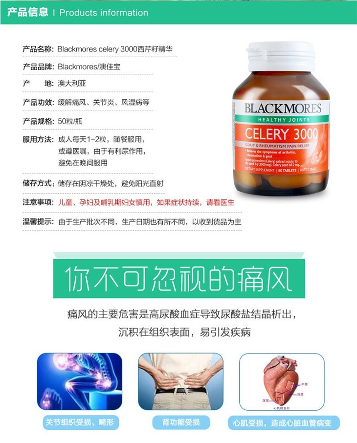 【保税仓】澳大利亚Blackmores澳佳宝Celery3000西芹籽芹菜籽精华 50粒