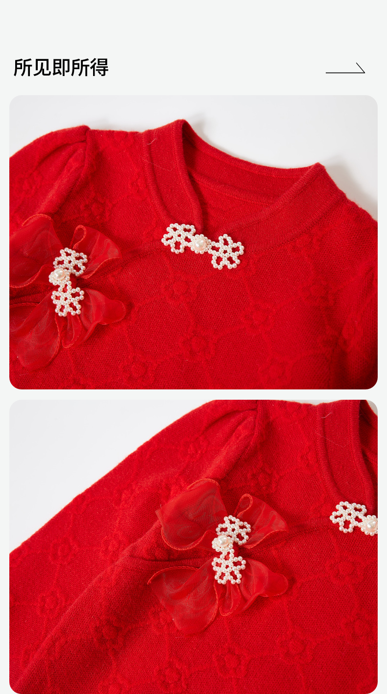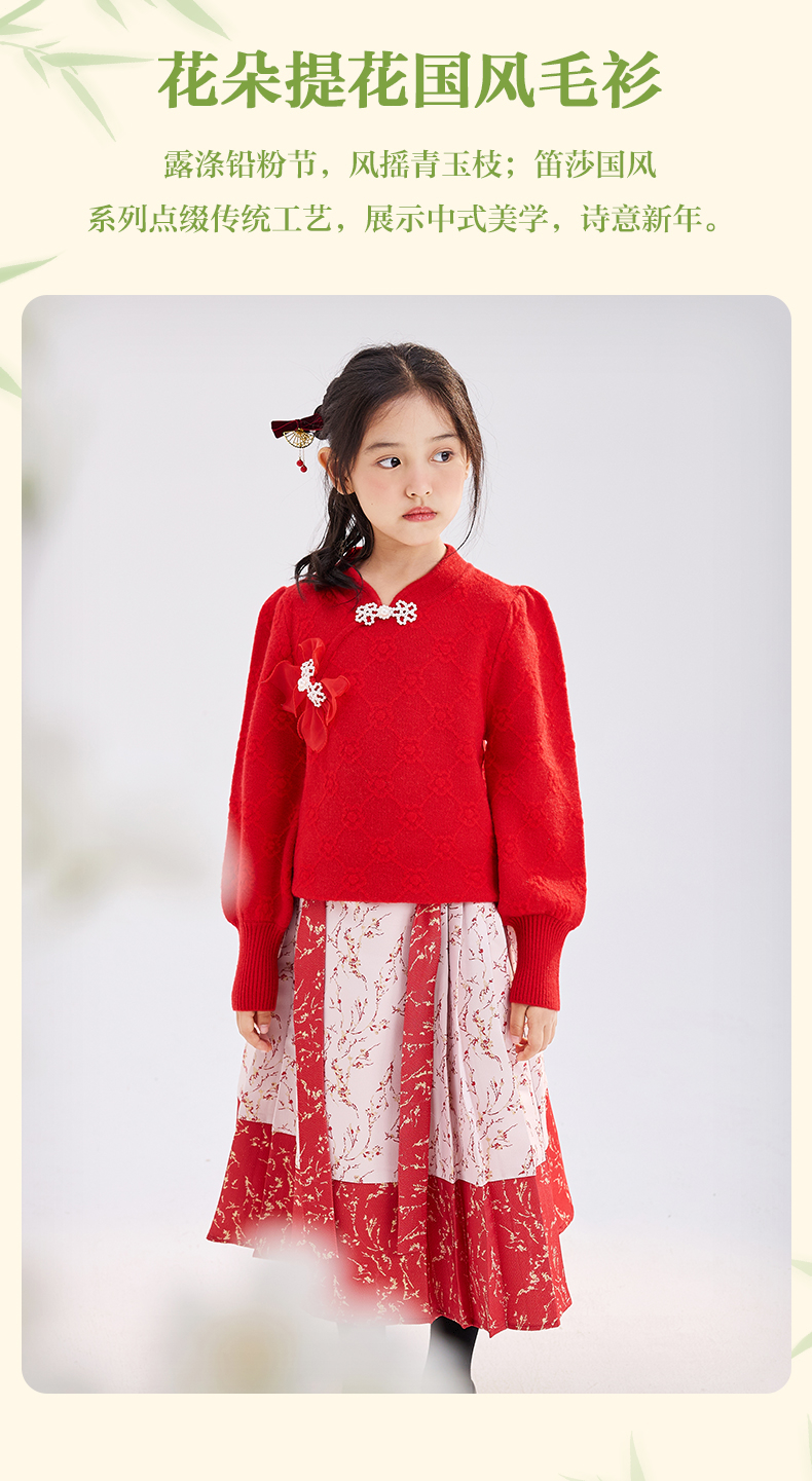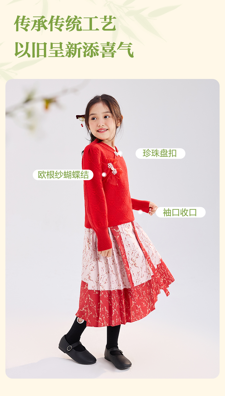 笛莎/Deesha 松饼熊2026年夏季新款童装女童甜美学院风翻领针织短袖连衣裙