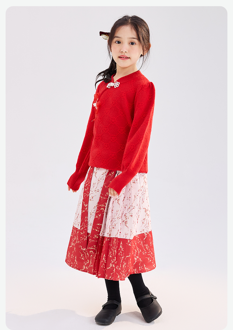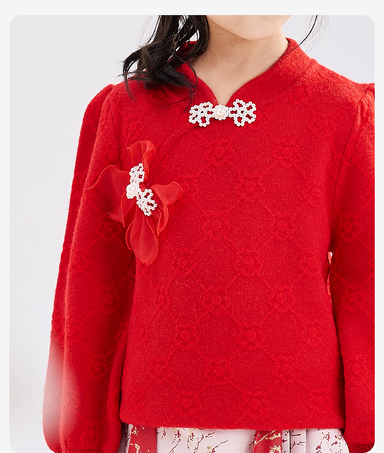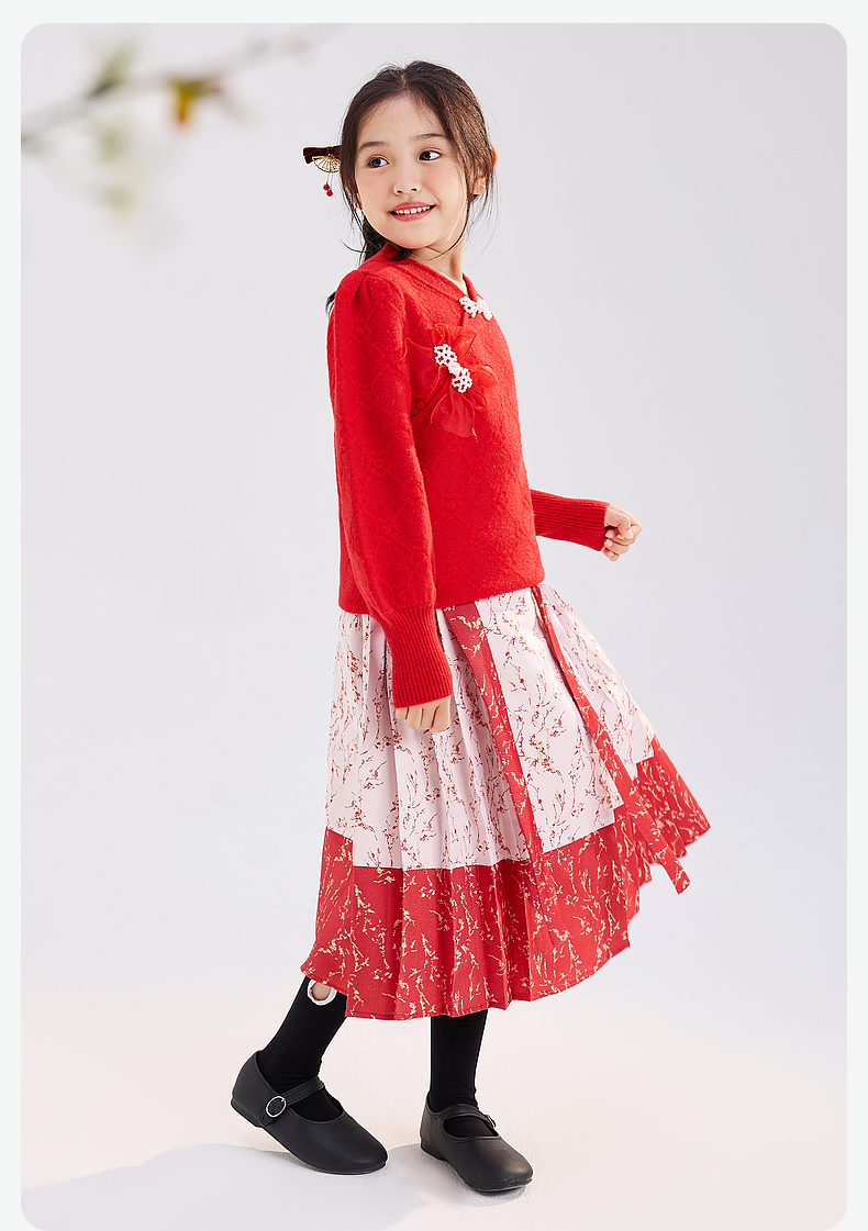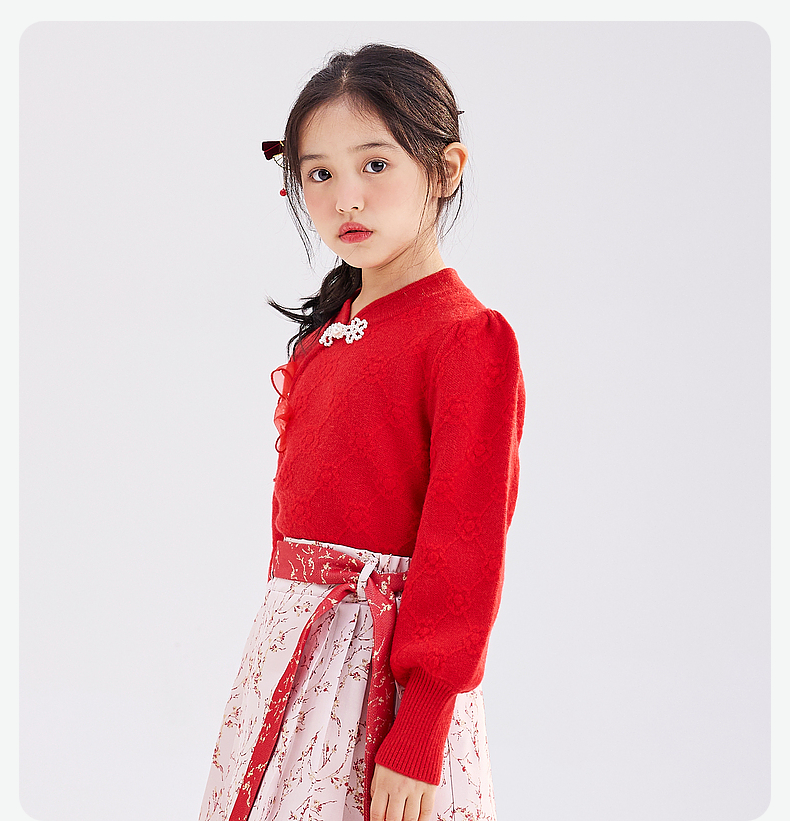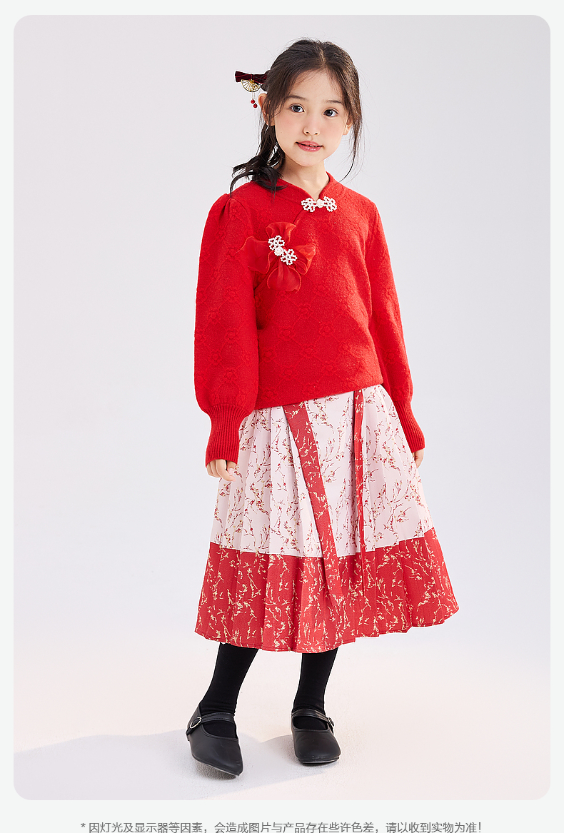 笛莎/Deesha 松饼熊2026年夏季新款童装女童甜美学院风翻领针织短袖连衣裙